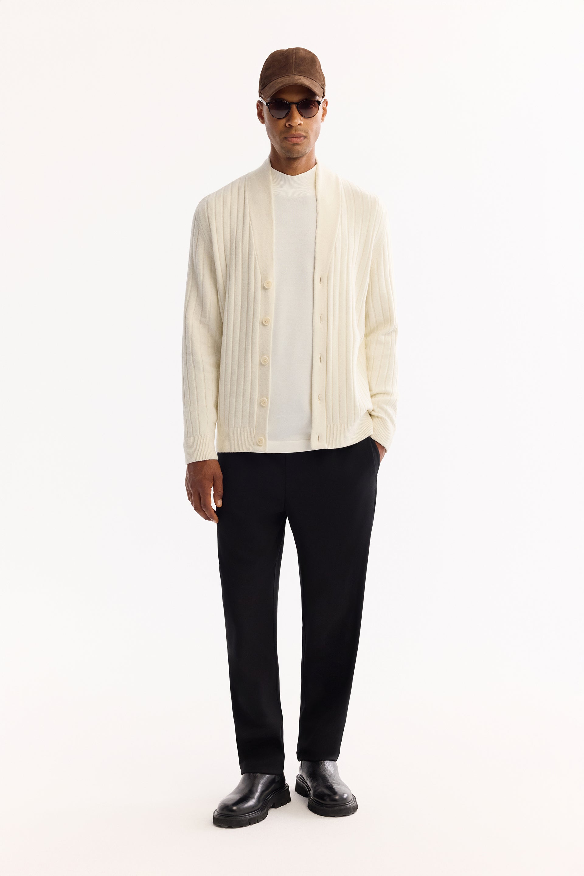 Ekru Şal Yaka Desenli Olimpus Iplik Hırka