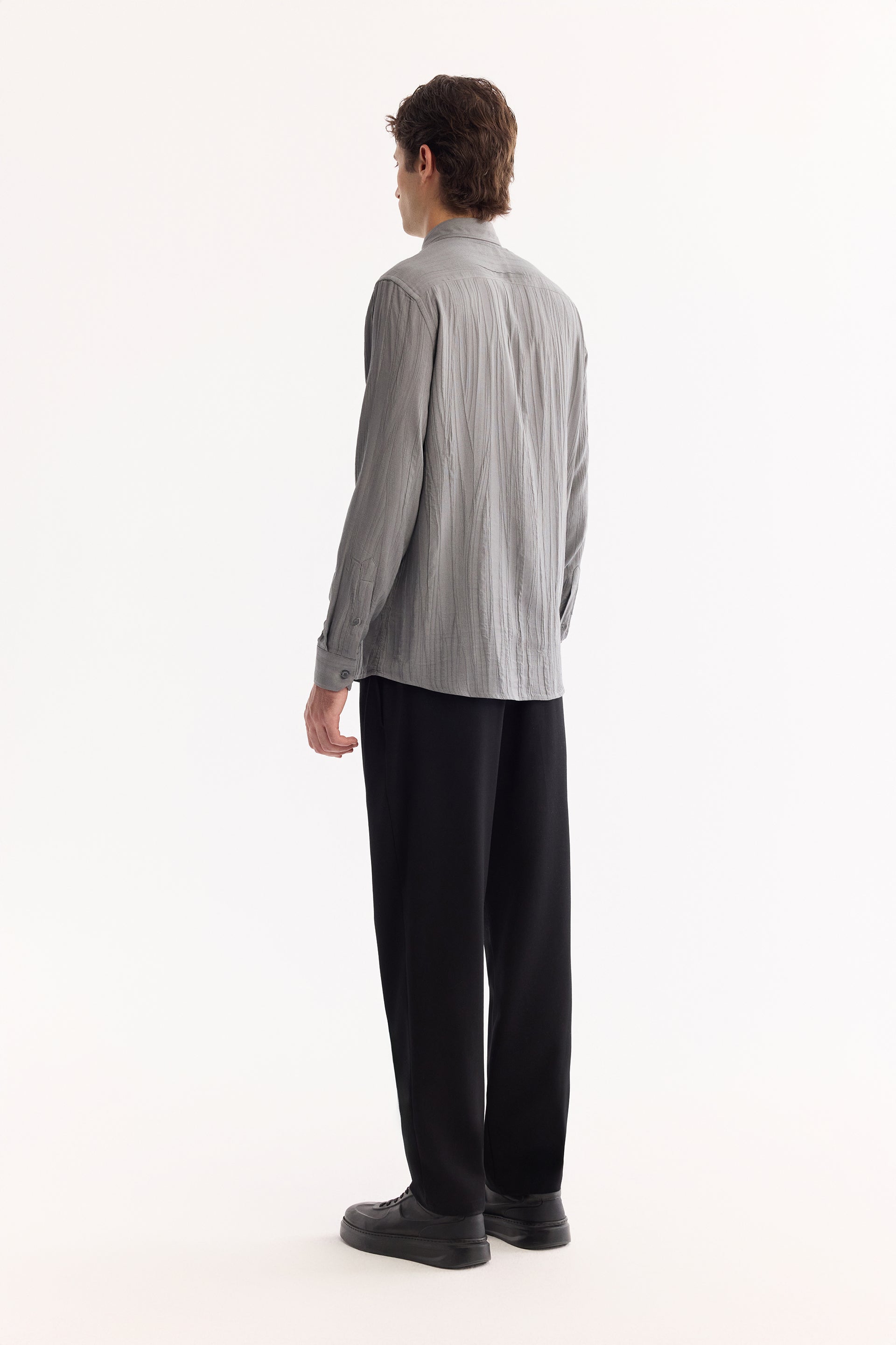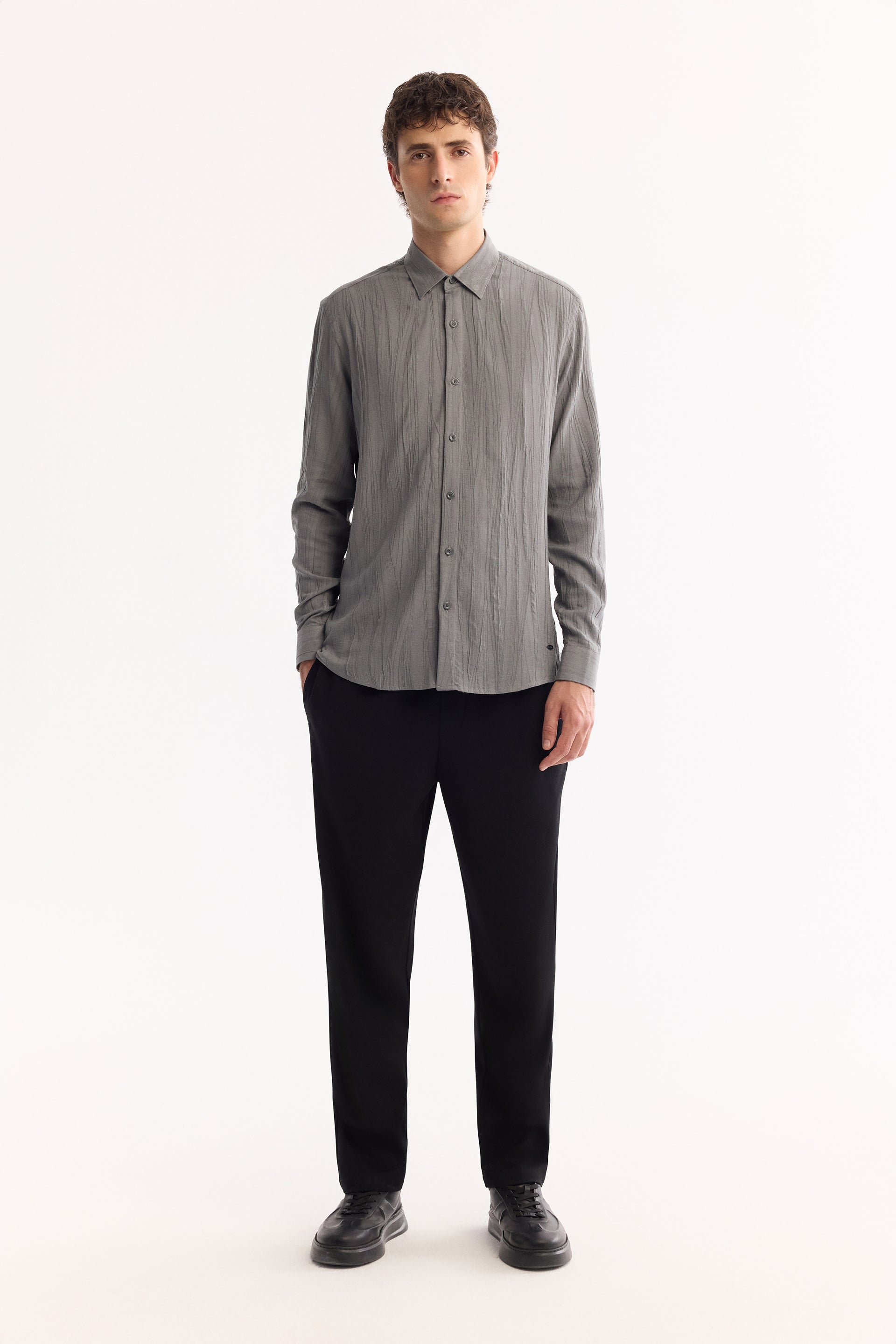 Gri Alttan Britli Gofreli Viskoz/pamuk Kumaş Gömlek