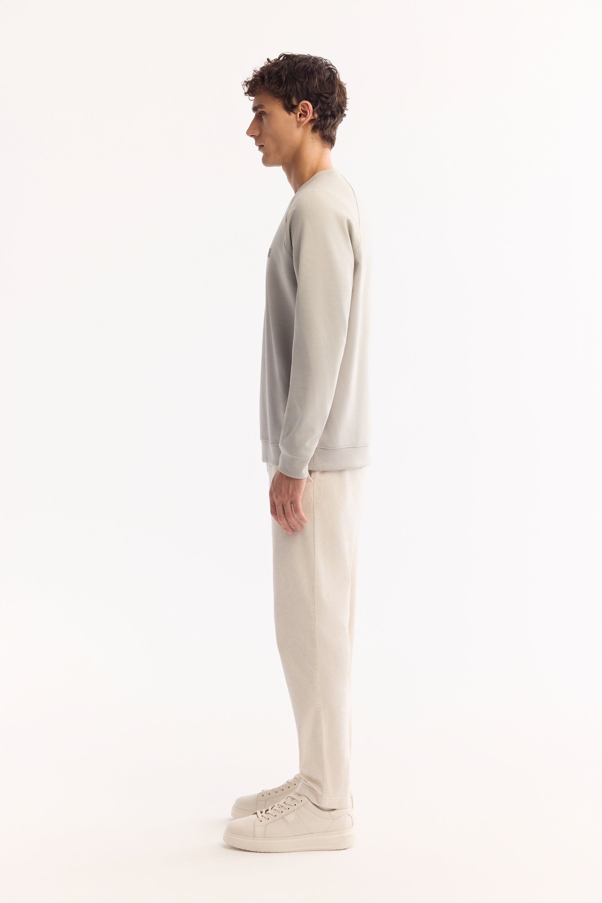 Gri Bisiklet Yaka Baskili Uzun Kol Interlok Kumaş Sweatshirt