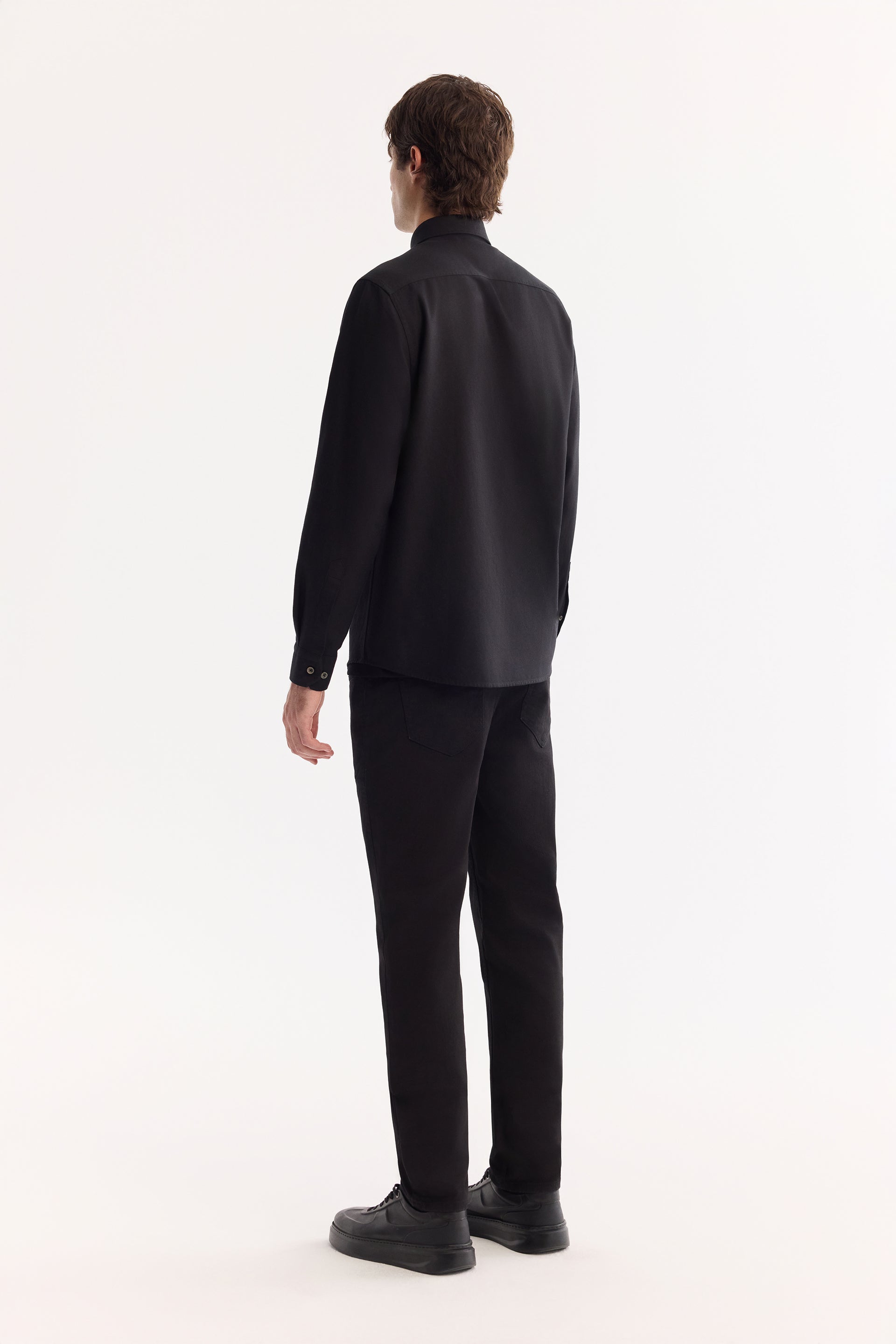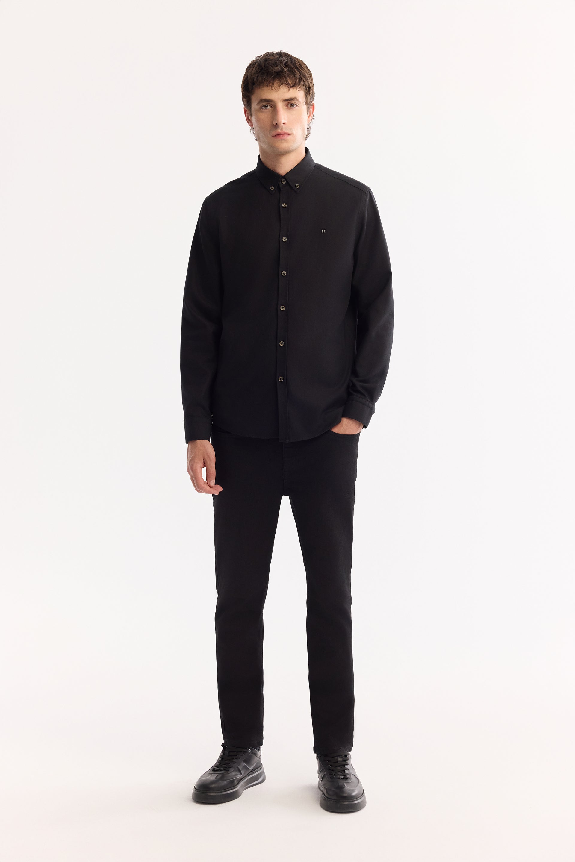 Siyah Düğmeli Yaka Düz Pamuk/ Viskon Kumaş Gömlek