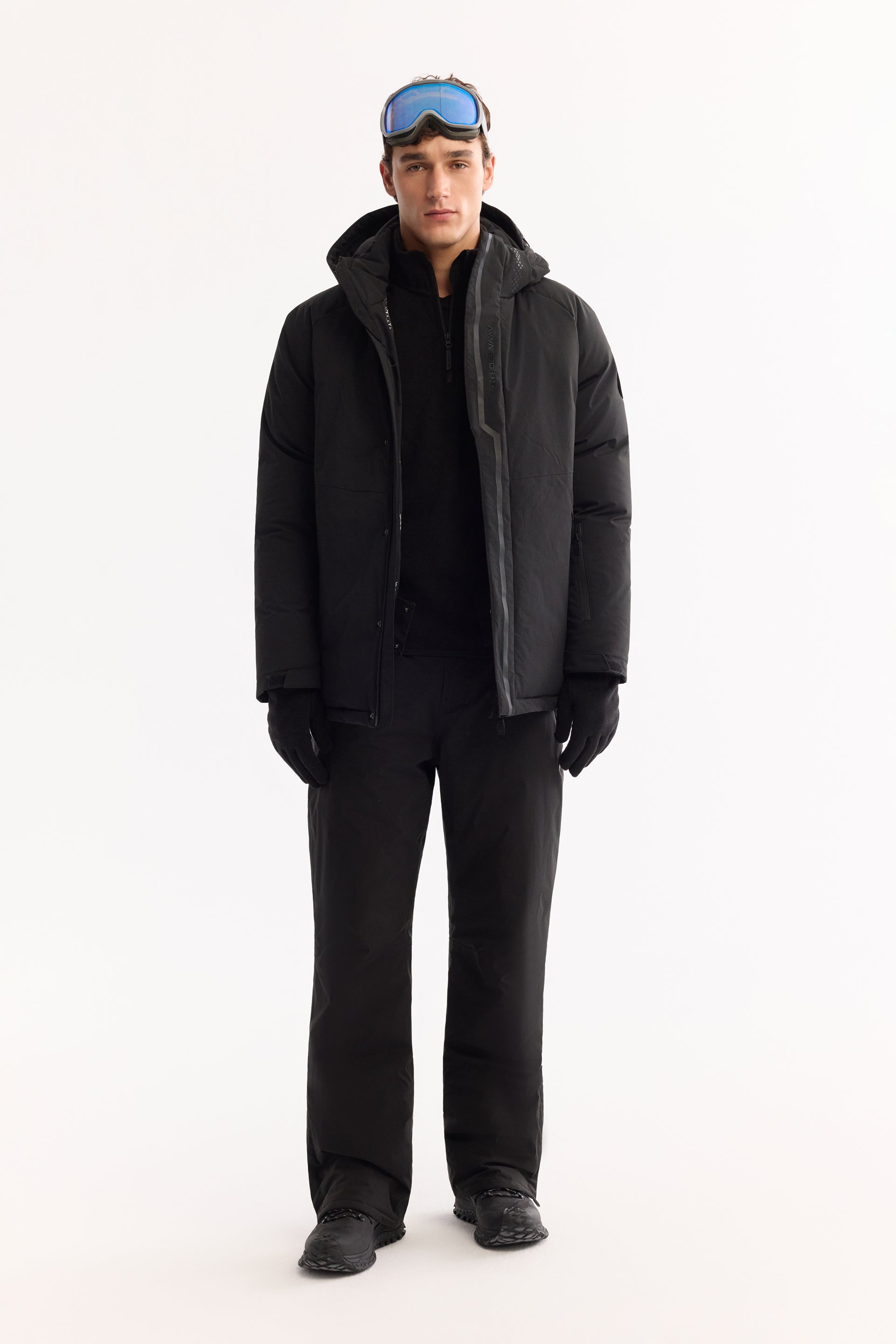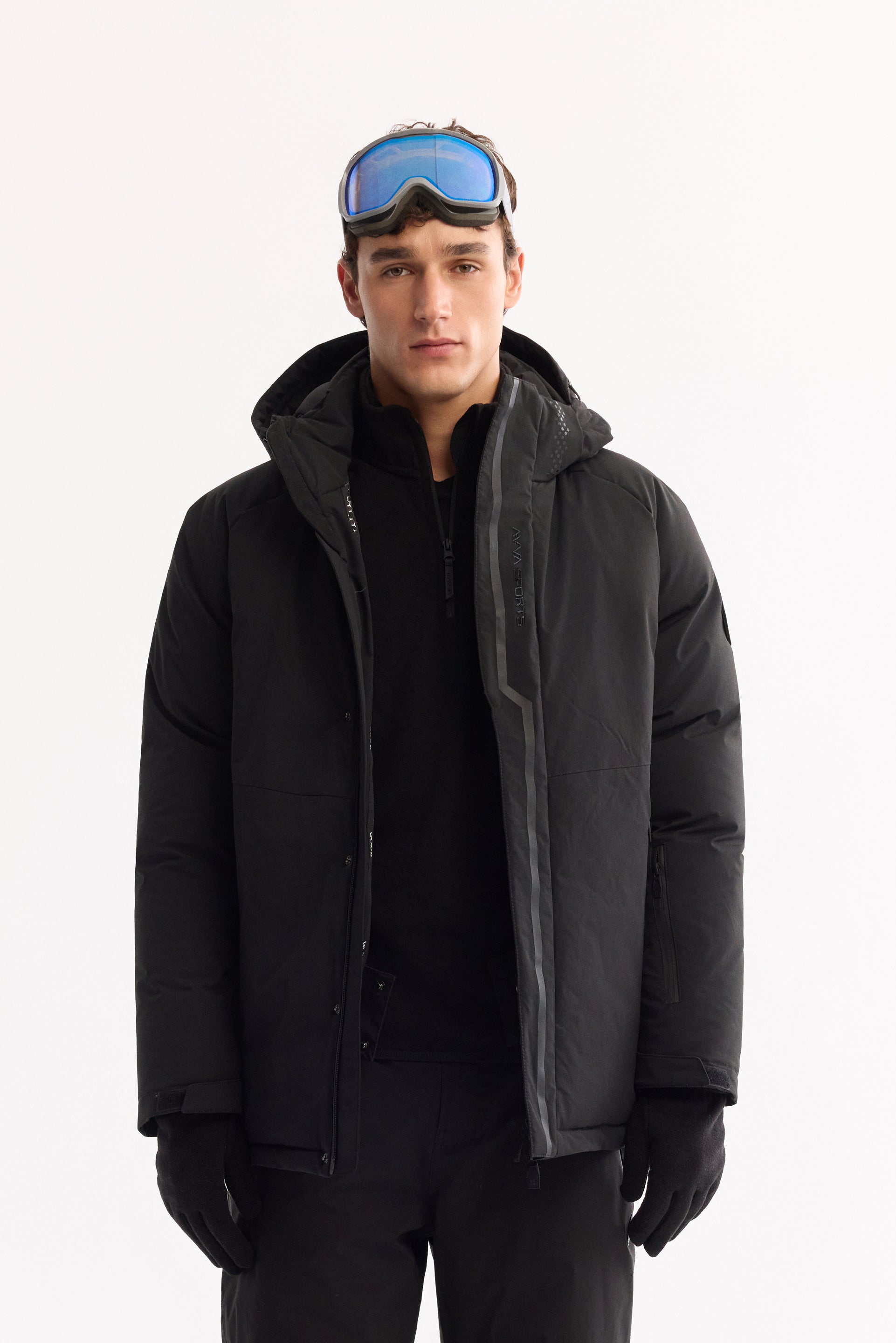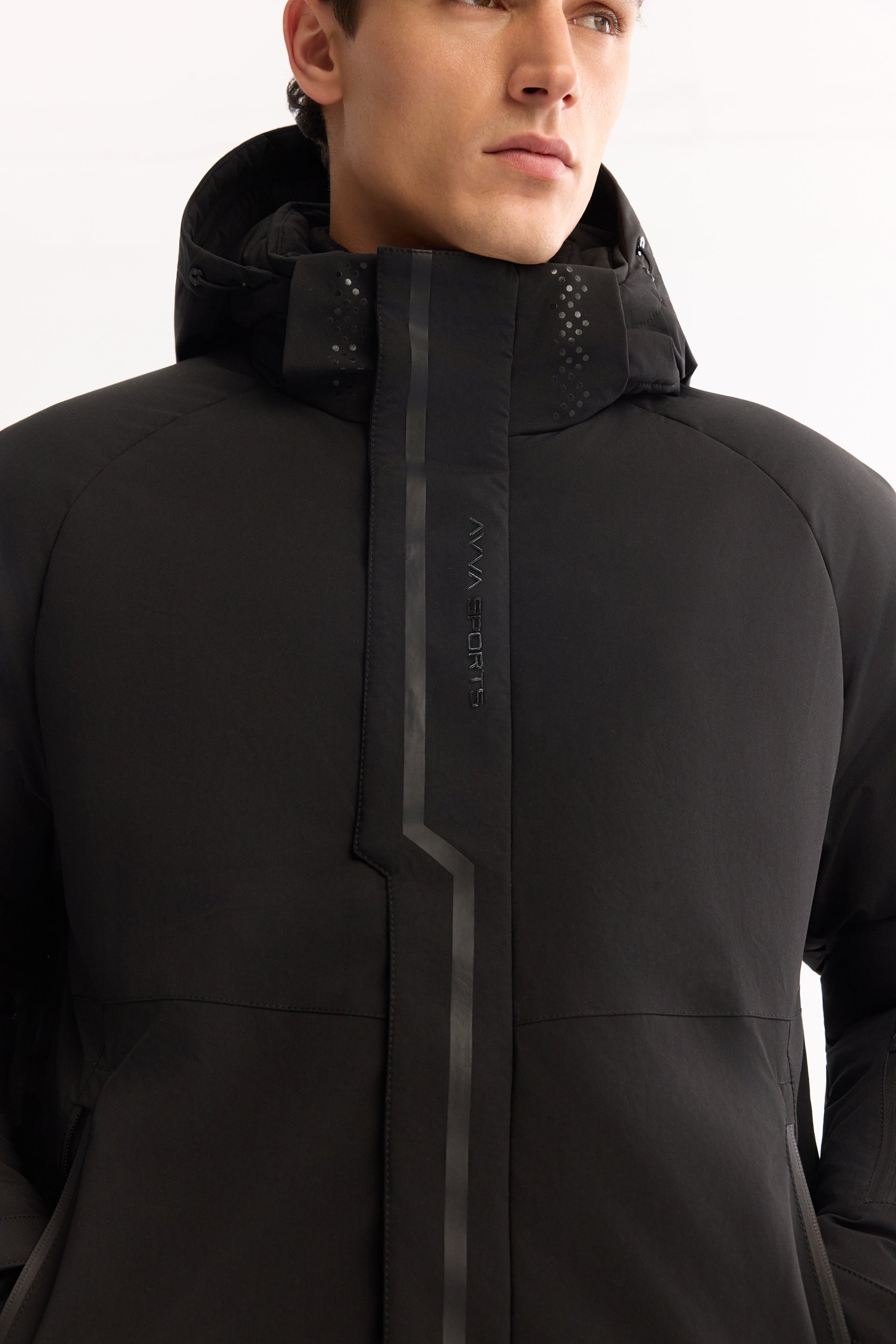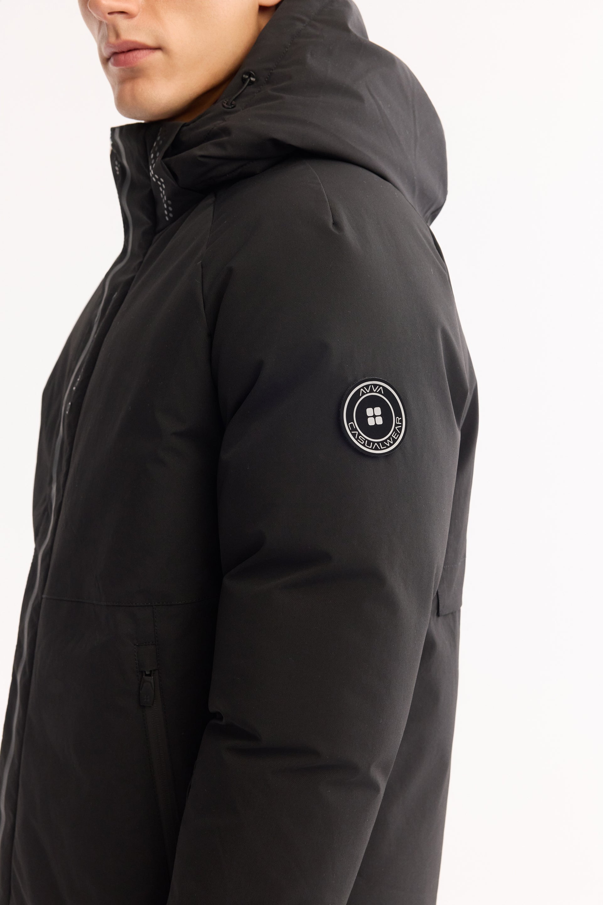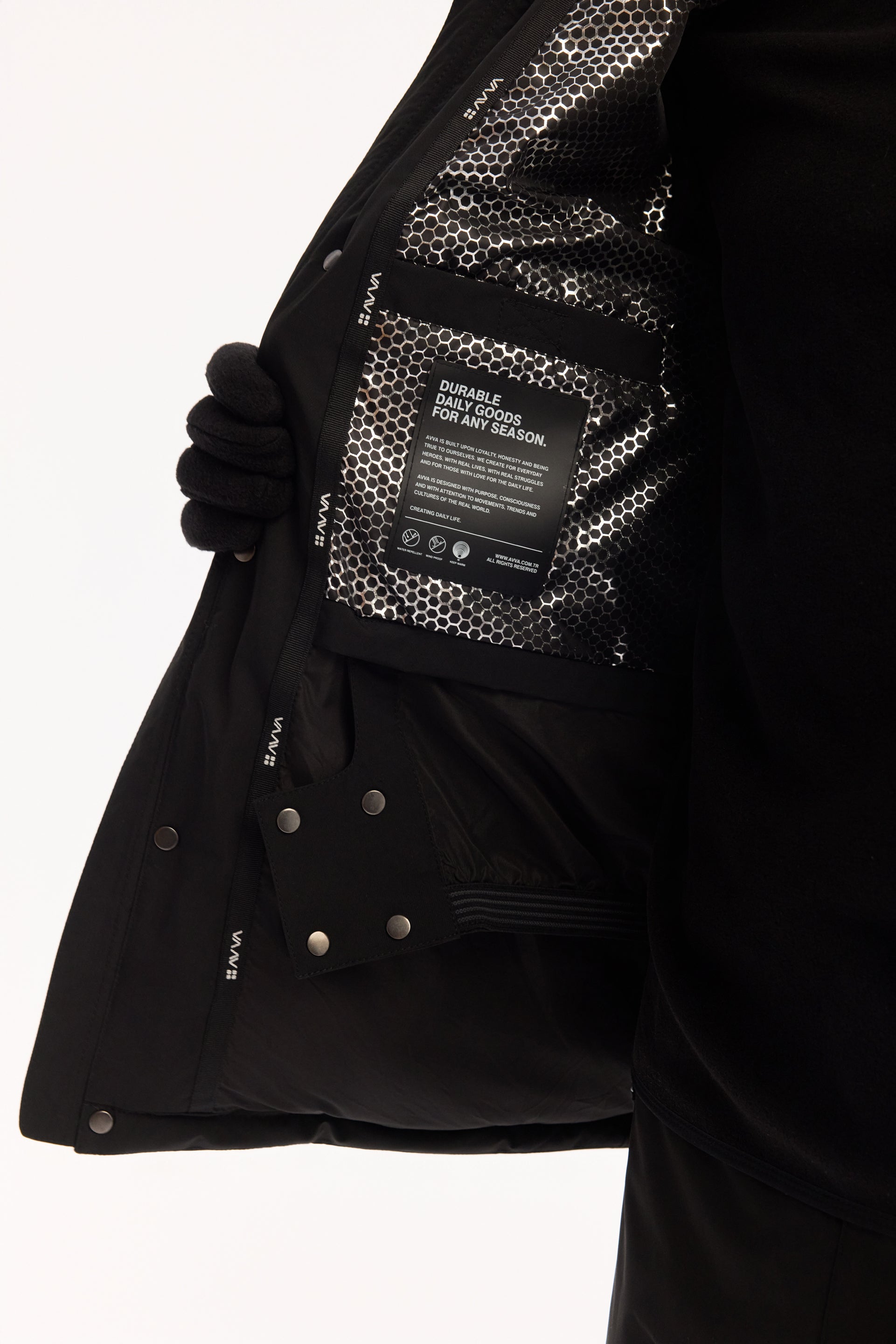 Siyah Takma Çıkma Kapüşonlu Düz Polyester Kumaş Mont