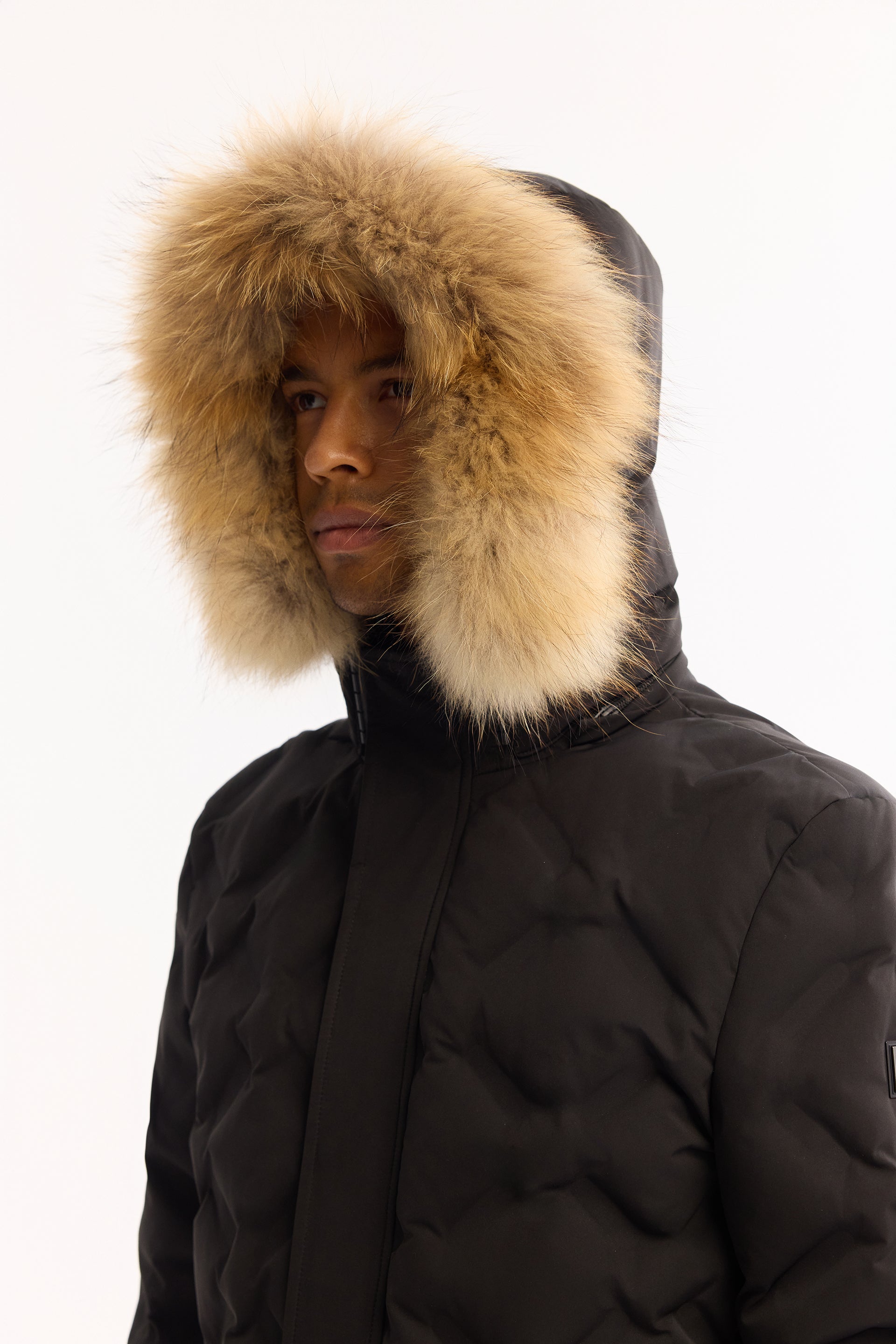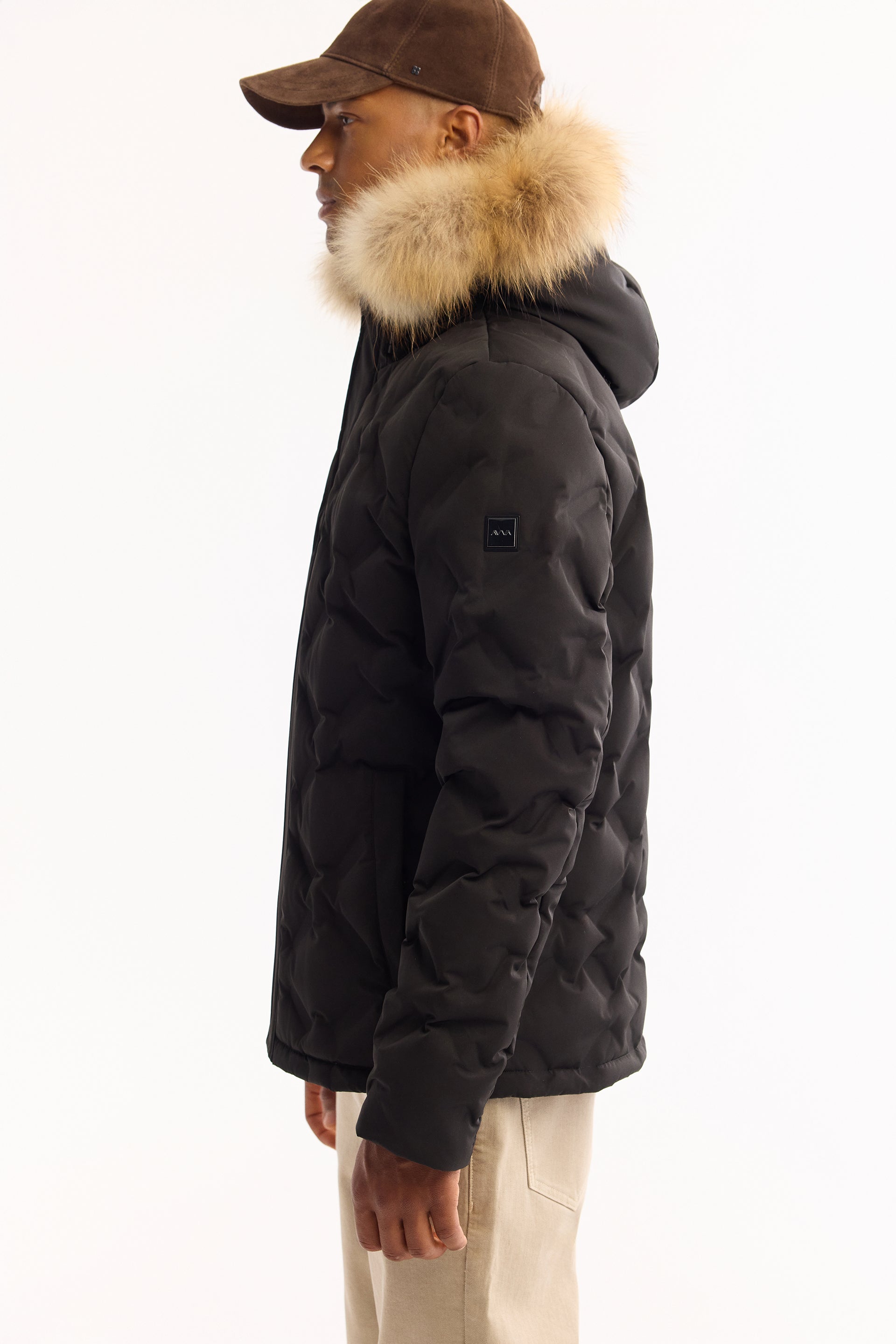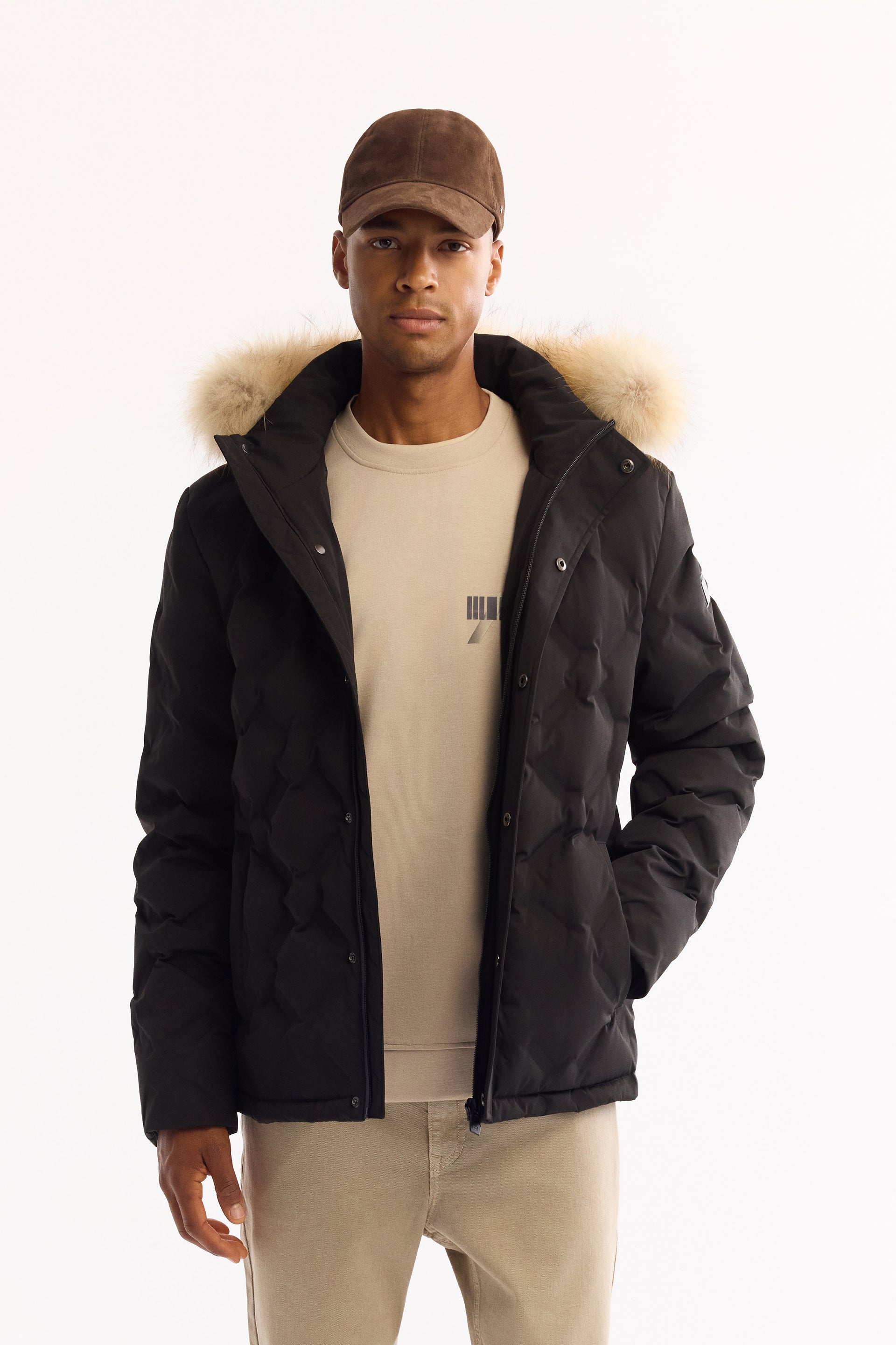 Siyah Takma Çıkma Kapüşonlu Düz Polyester Kumaş Mont