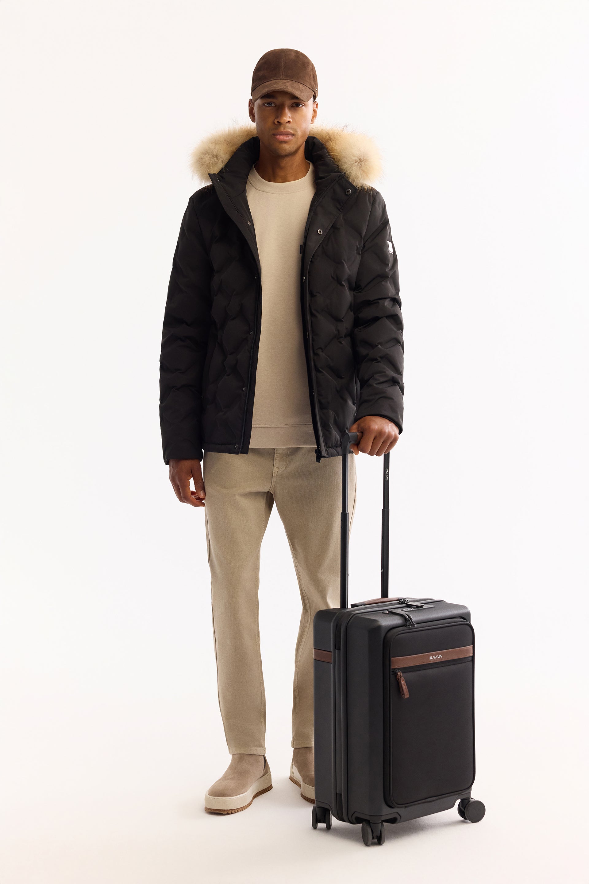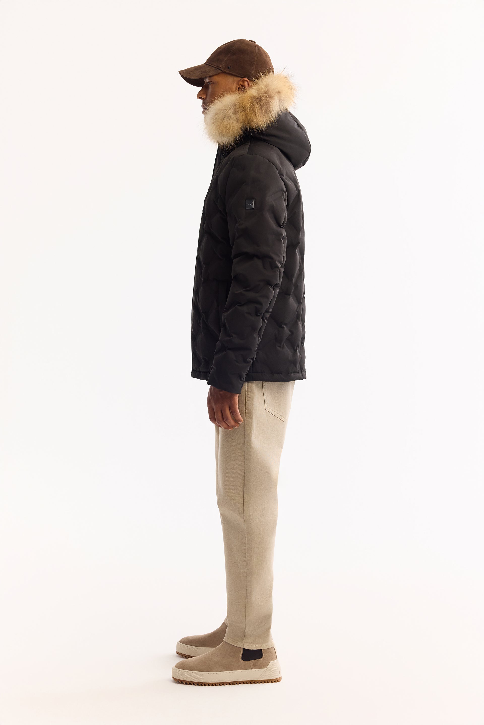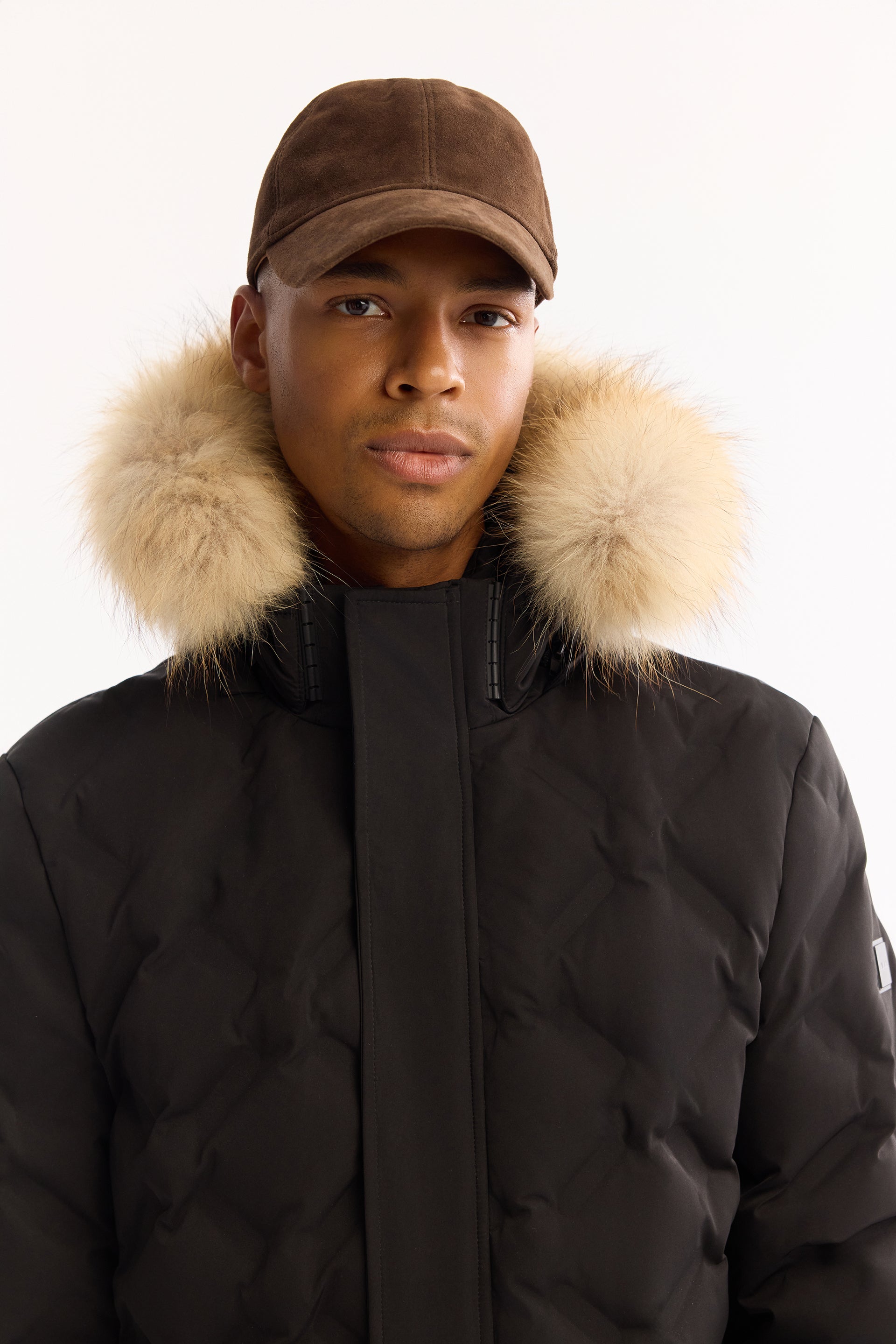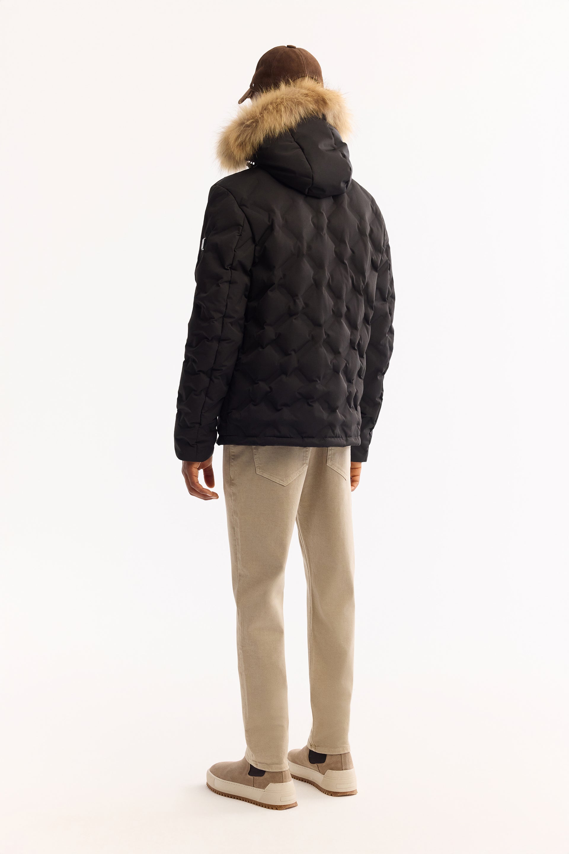 Siyah Takma Çıkma Kapüşonlu Düz Polyester Kumaş Mont