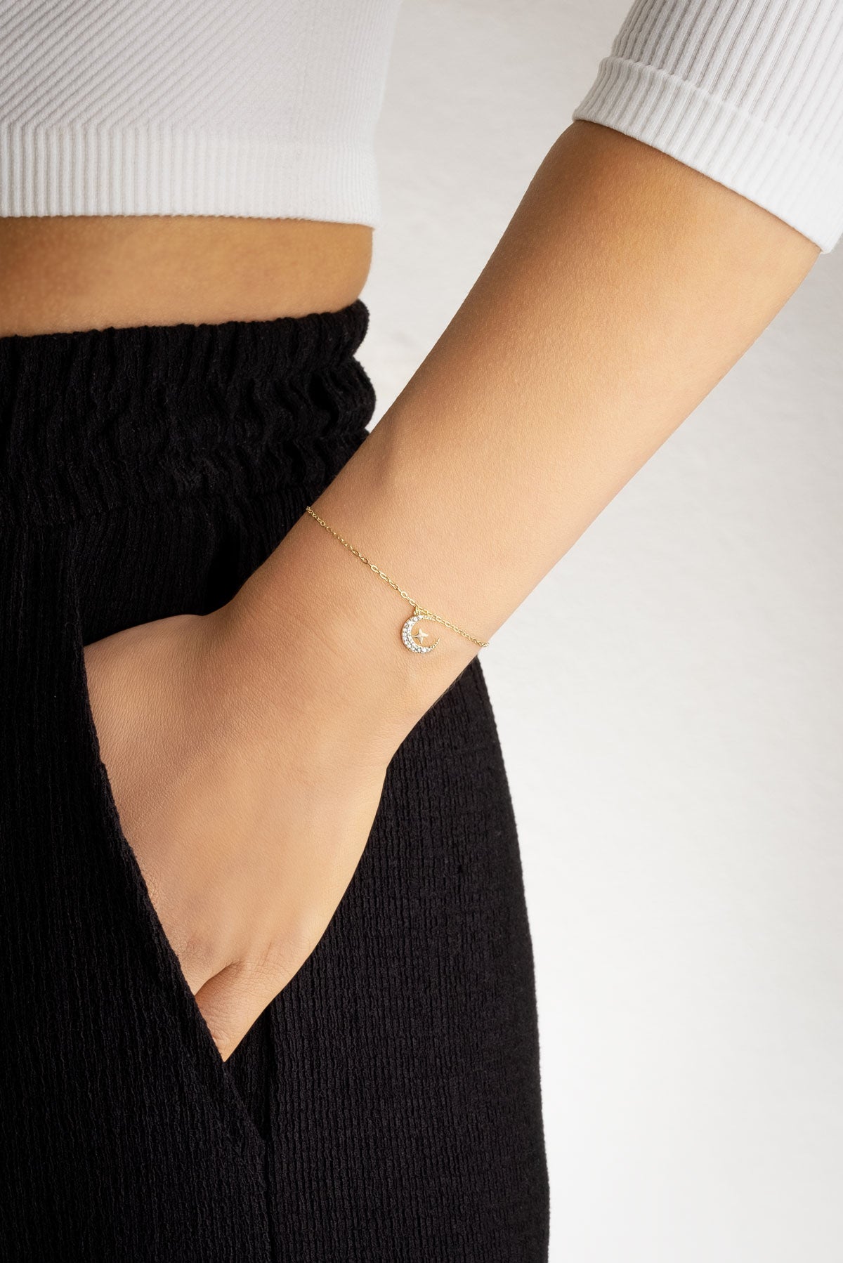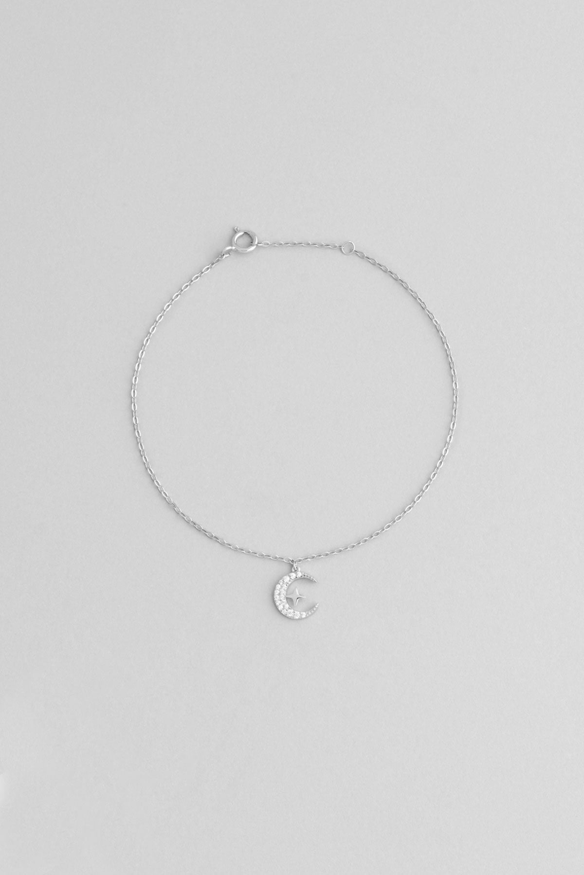 Ay Yıldız Figürlü 18 Ayar Beyaz Altın Kaplama Gümüş Bileklik 5153040199