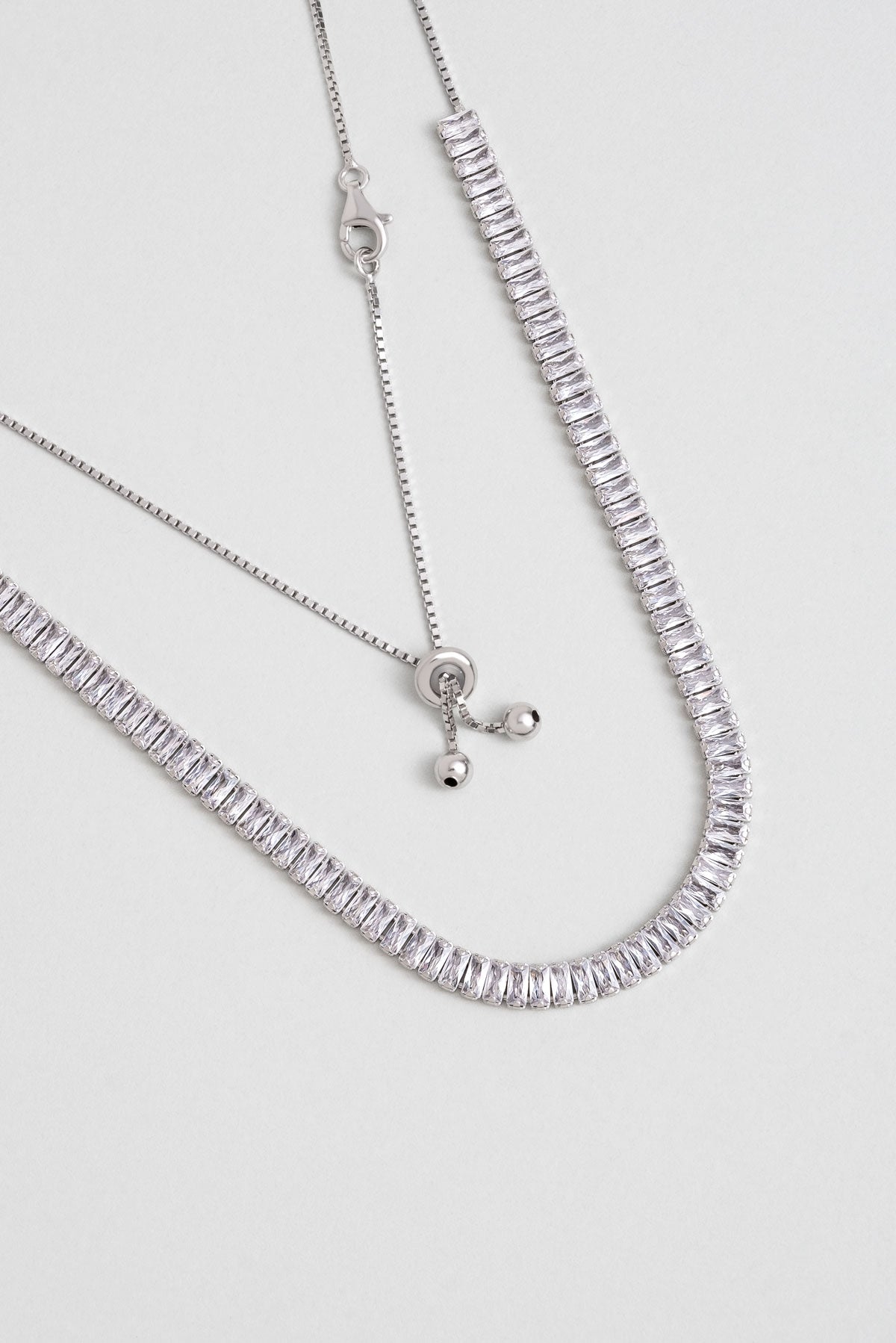 Baget Işıltısı 18 Ayar Beyaz Altın Kaplama Ayarlanabilir Gümüş Choker Kolye 5160870199