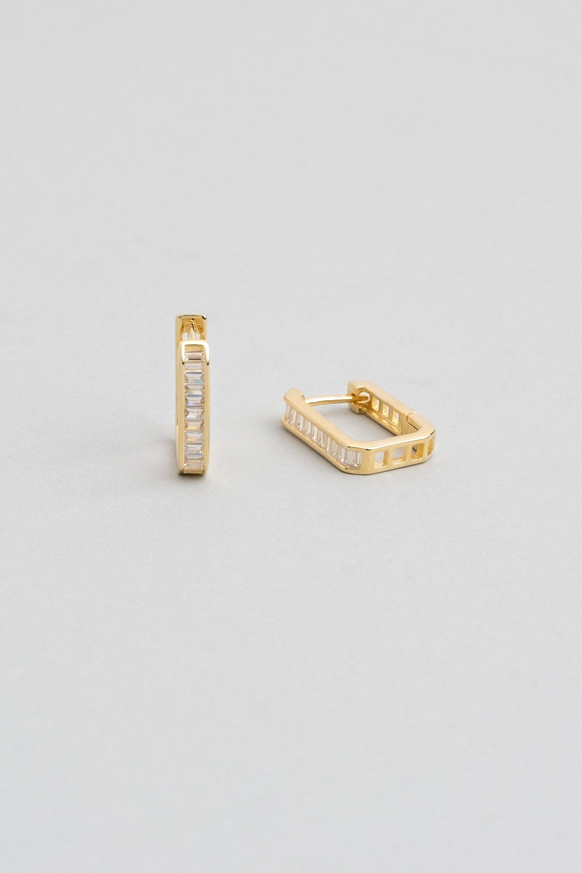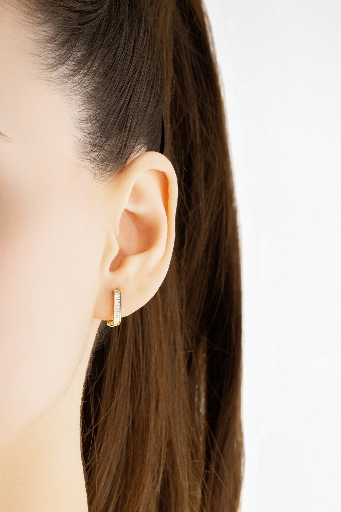 Baget Taşlı 18 Ayar Sarı Altın Kaplama Gümüş Kare Küpe 5135060144