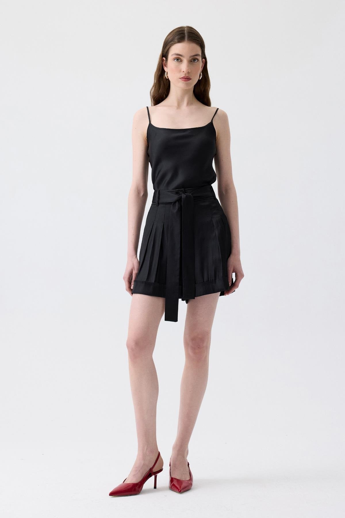 Bağlama Kemerli Rahat Form Mini Siyah Şort