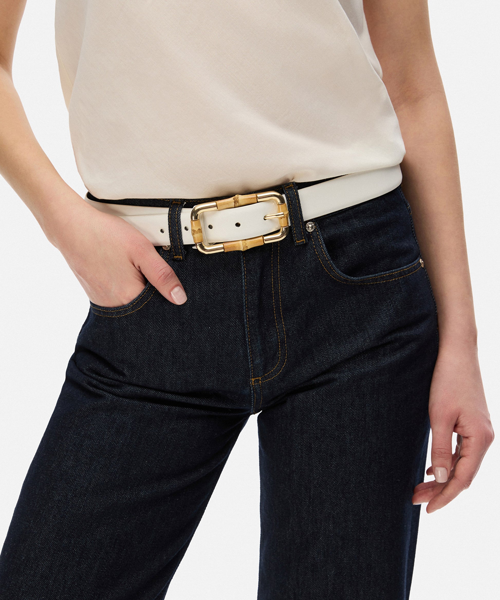 Bambu Detaylı Dikdörtgen Tokalı Kemer