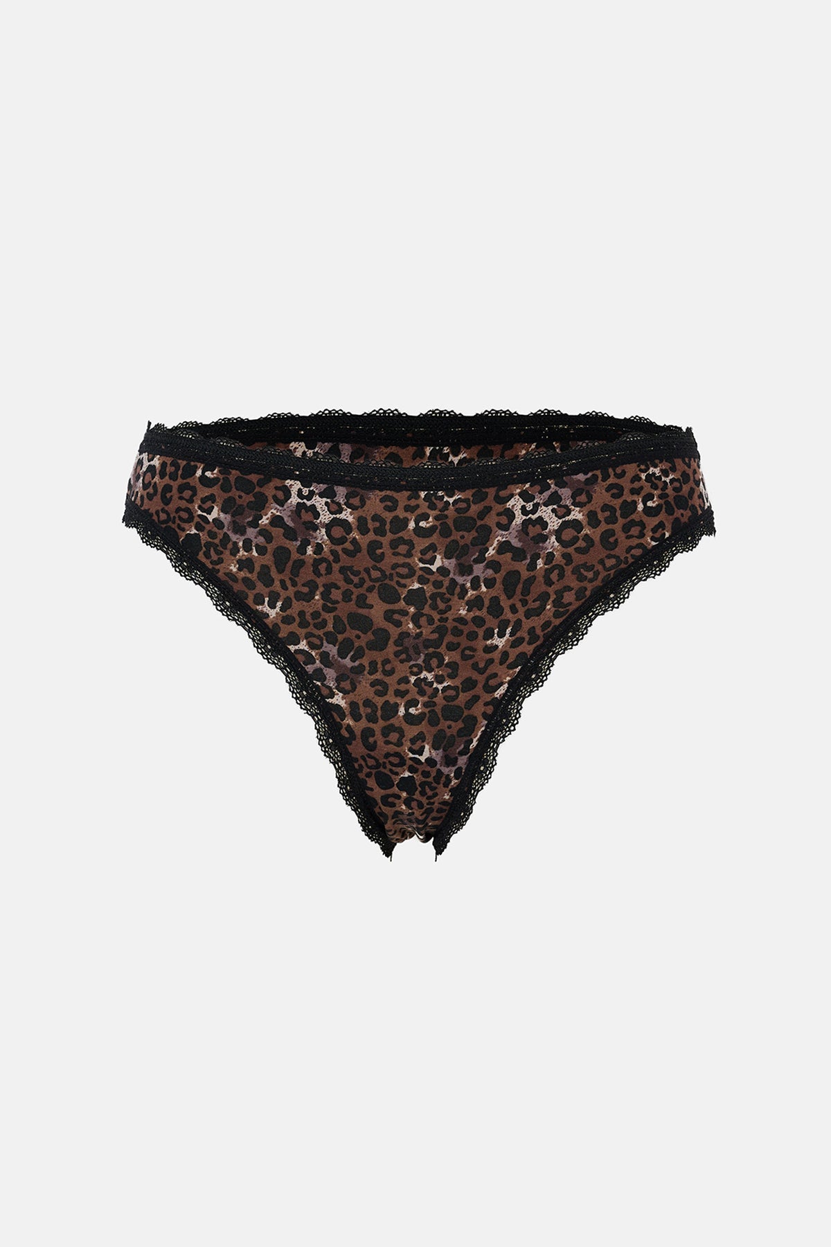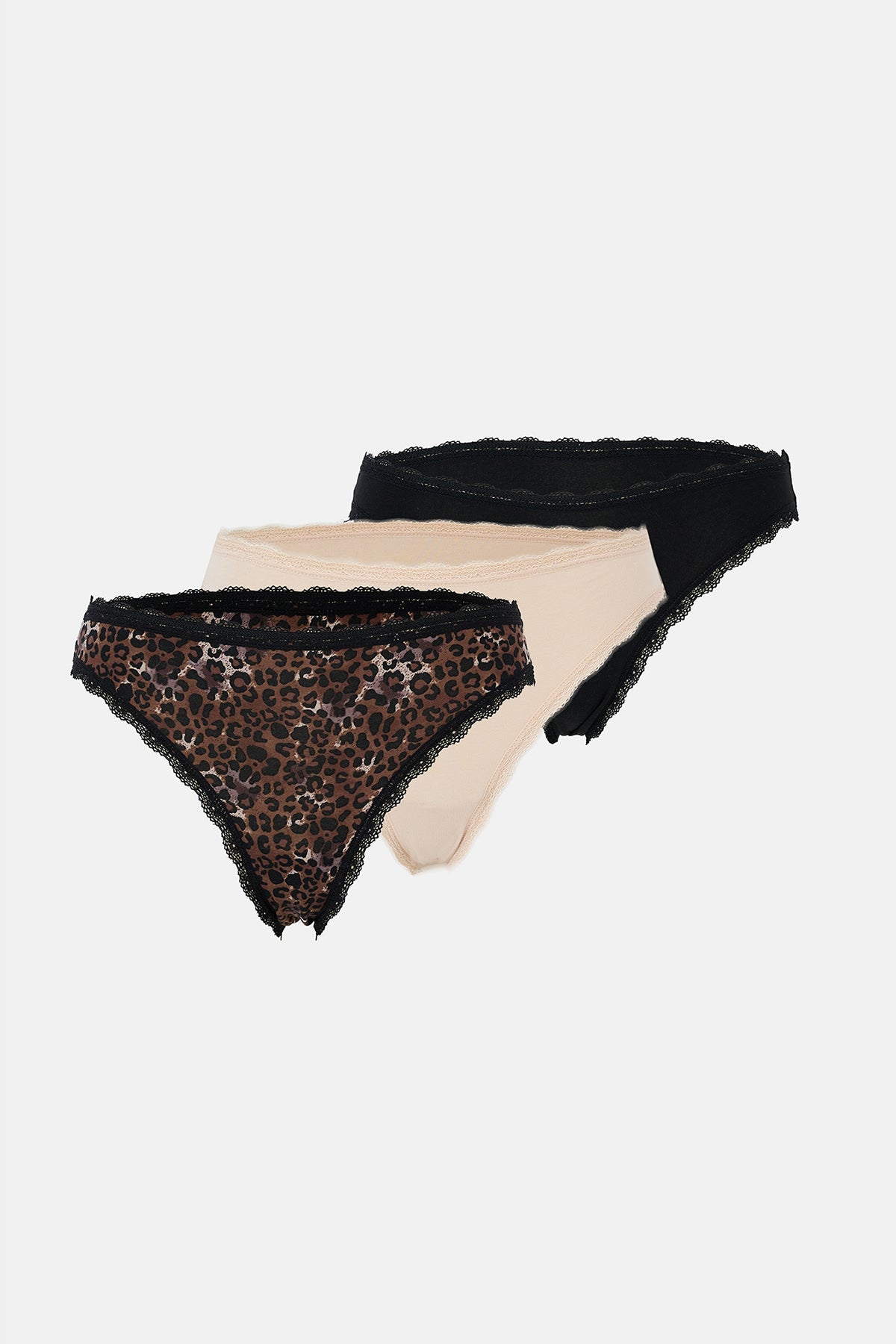Bej-kahverengi-siyah Kadın 3'lü Desenli Brazilian Külot