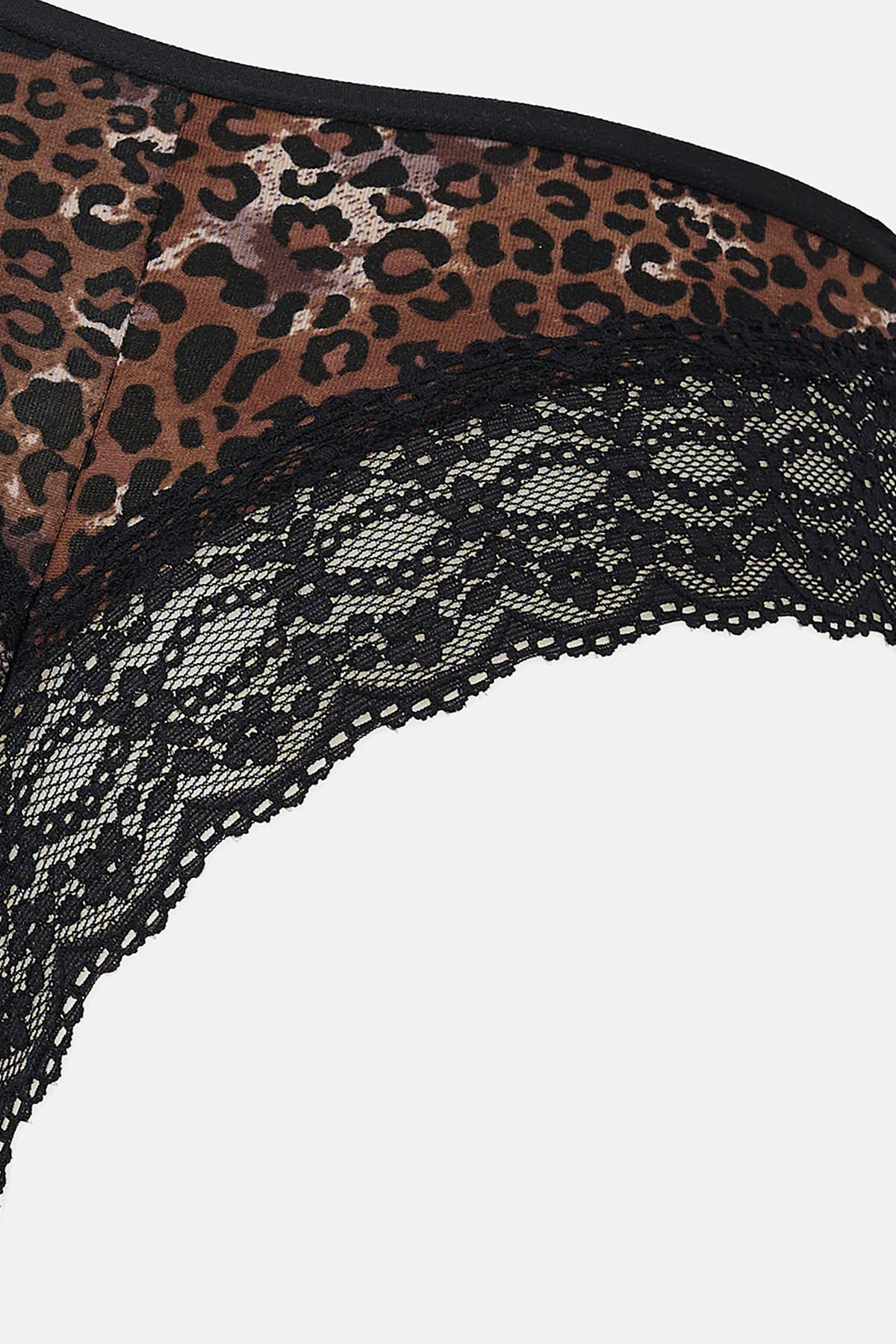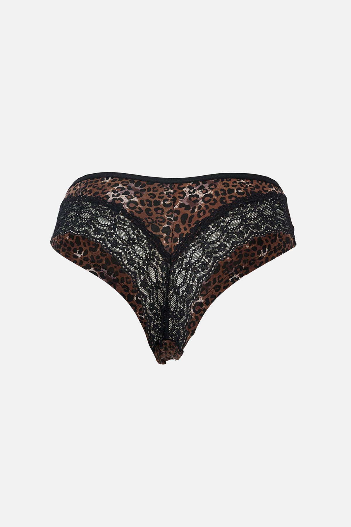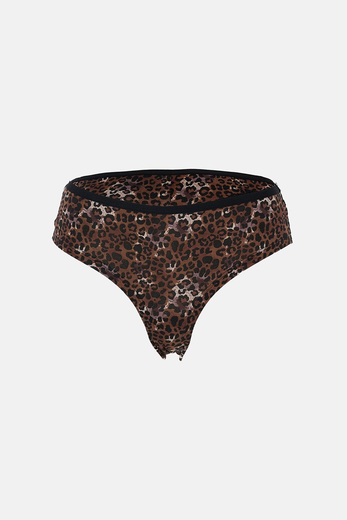 Bej-siyah Kadın 3'lü Arkası Dantel Detaylı Desenli Brazilian Külot