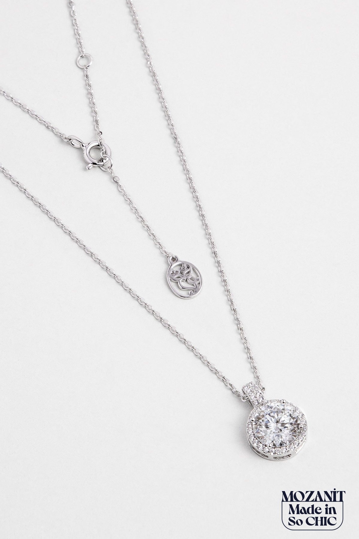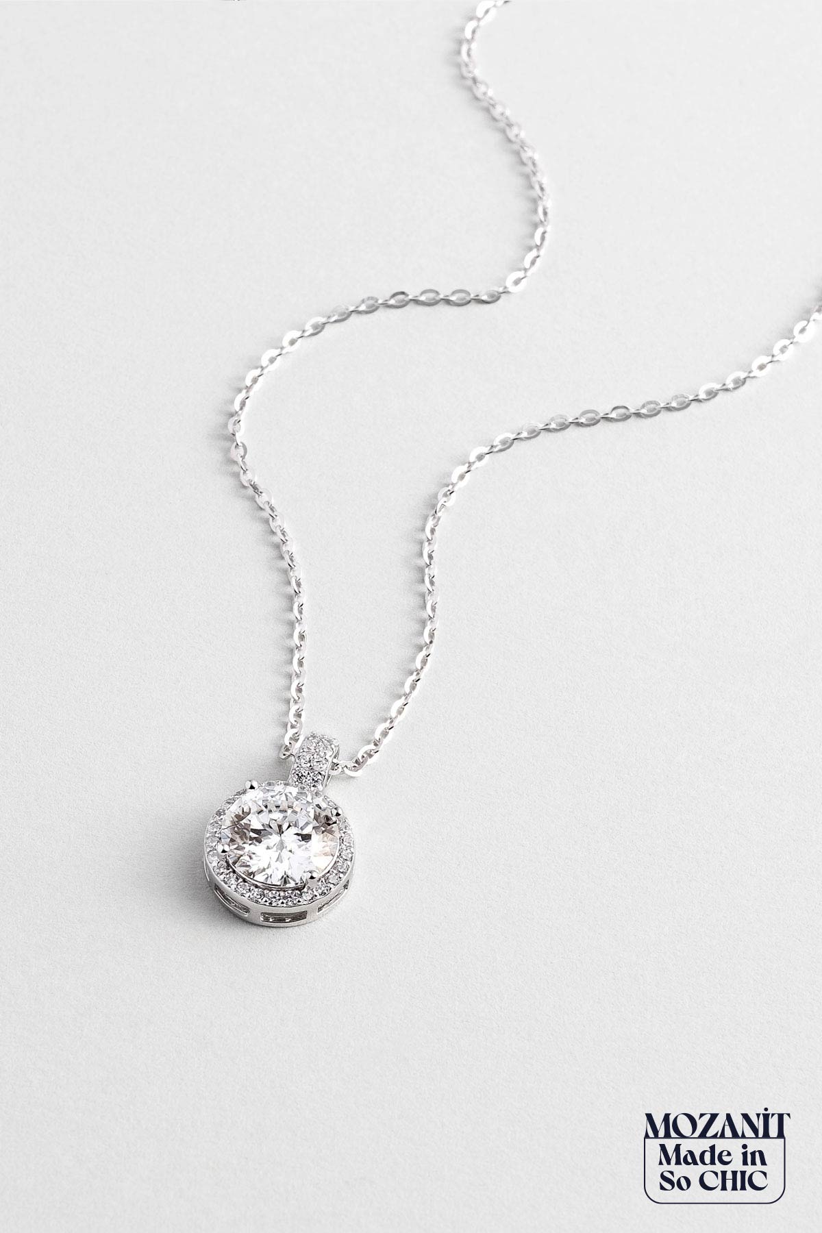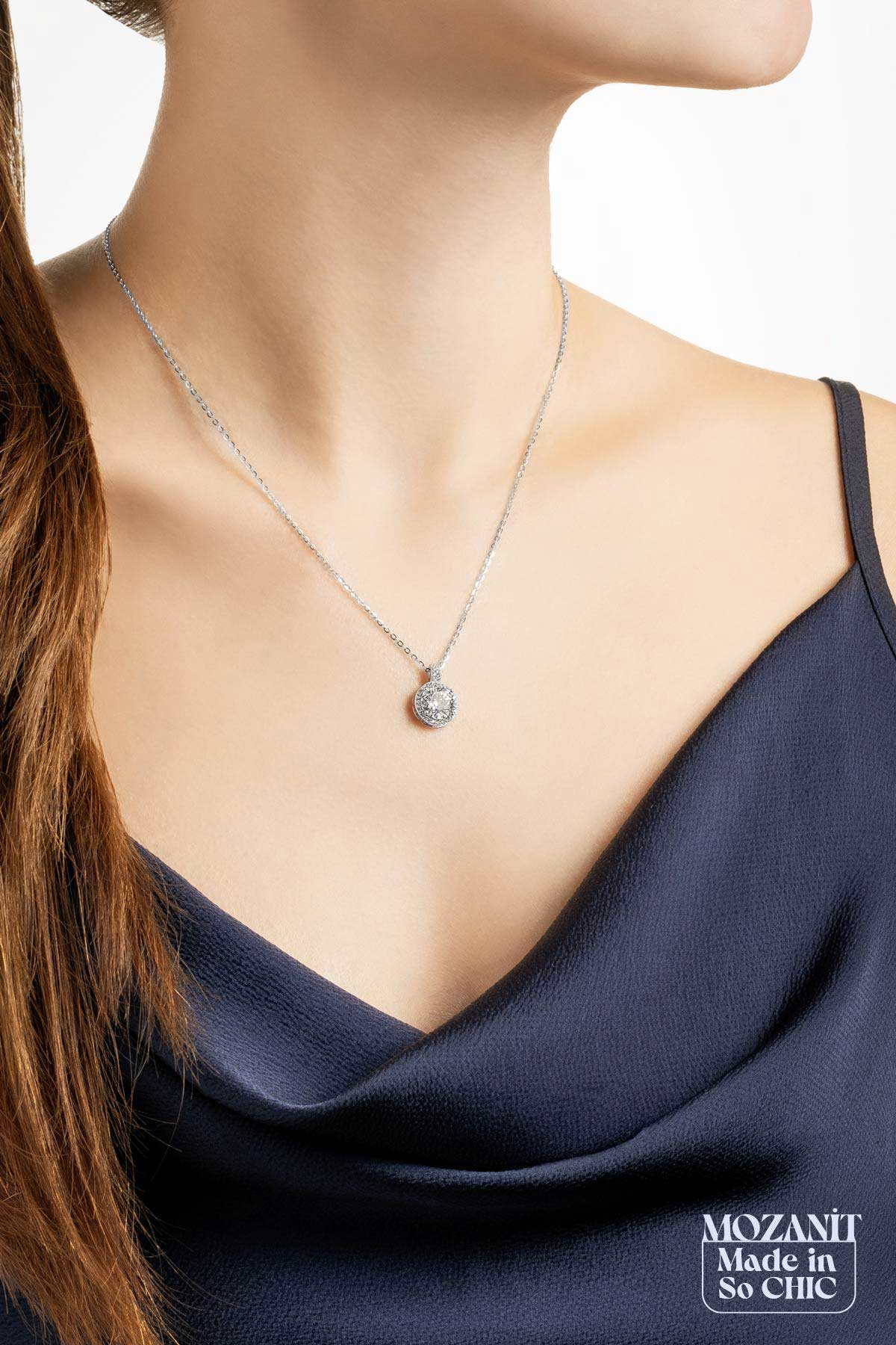 Berrak Mozanit 18 Ayar Beyaz Altın Kaplama 43 Cm Gümüş Kolye 5096960199