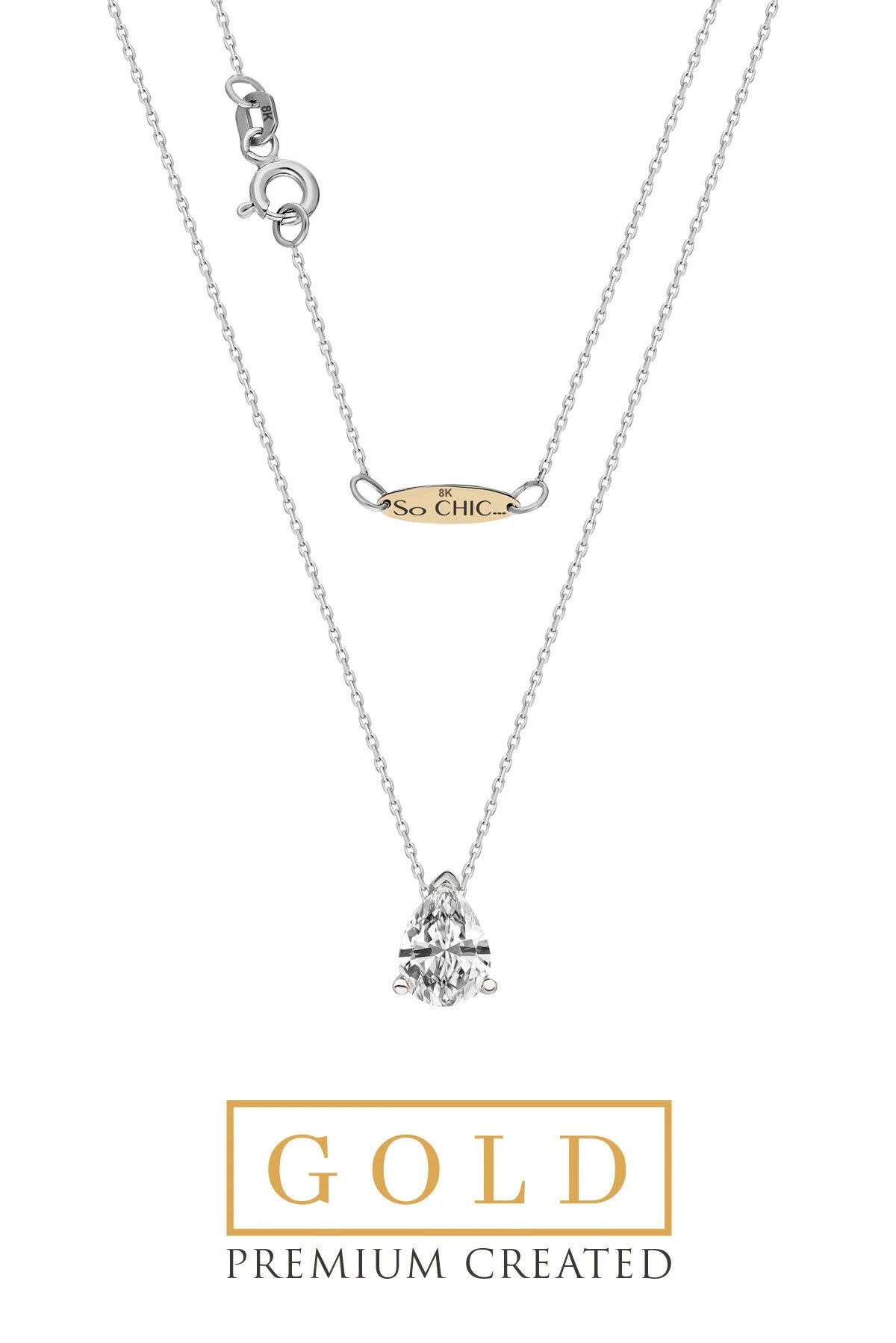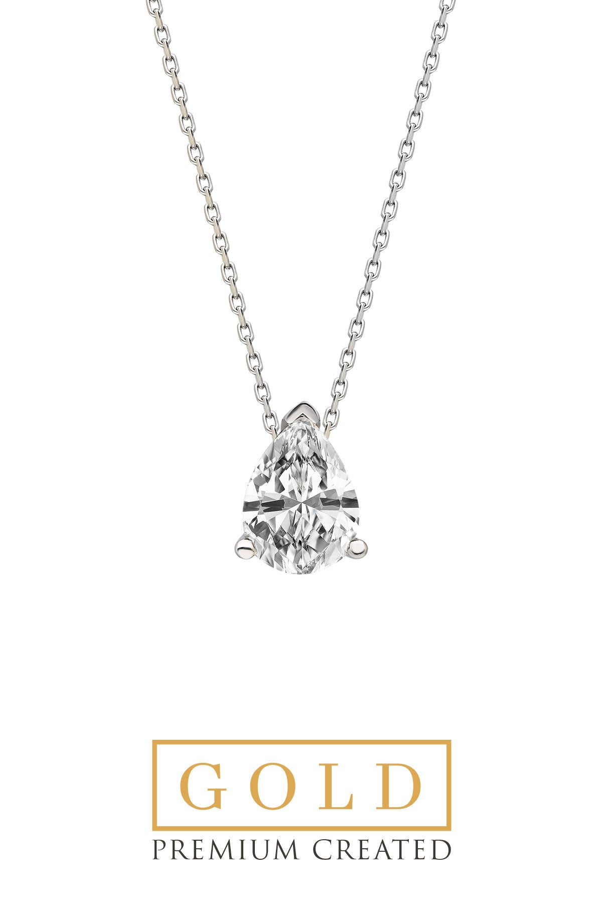 Beyaz Altın Sertifikalı Premium Created Altın Damla Taşlı Tektaş Kolye Ww02670160142