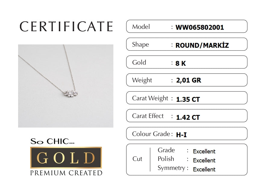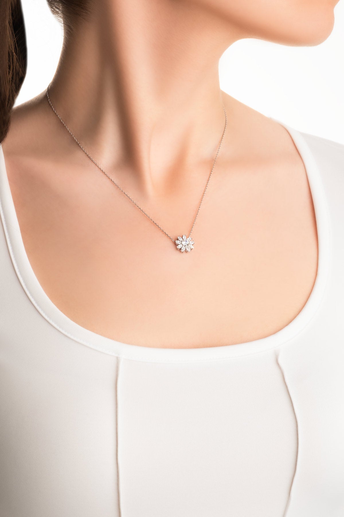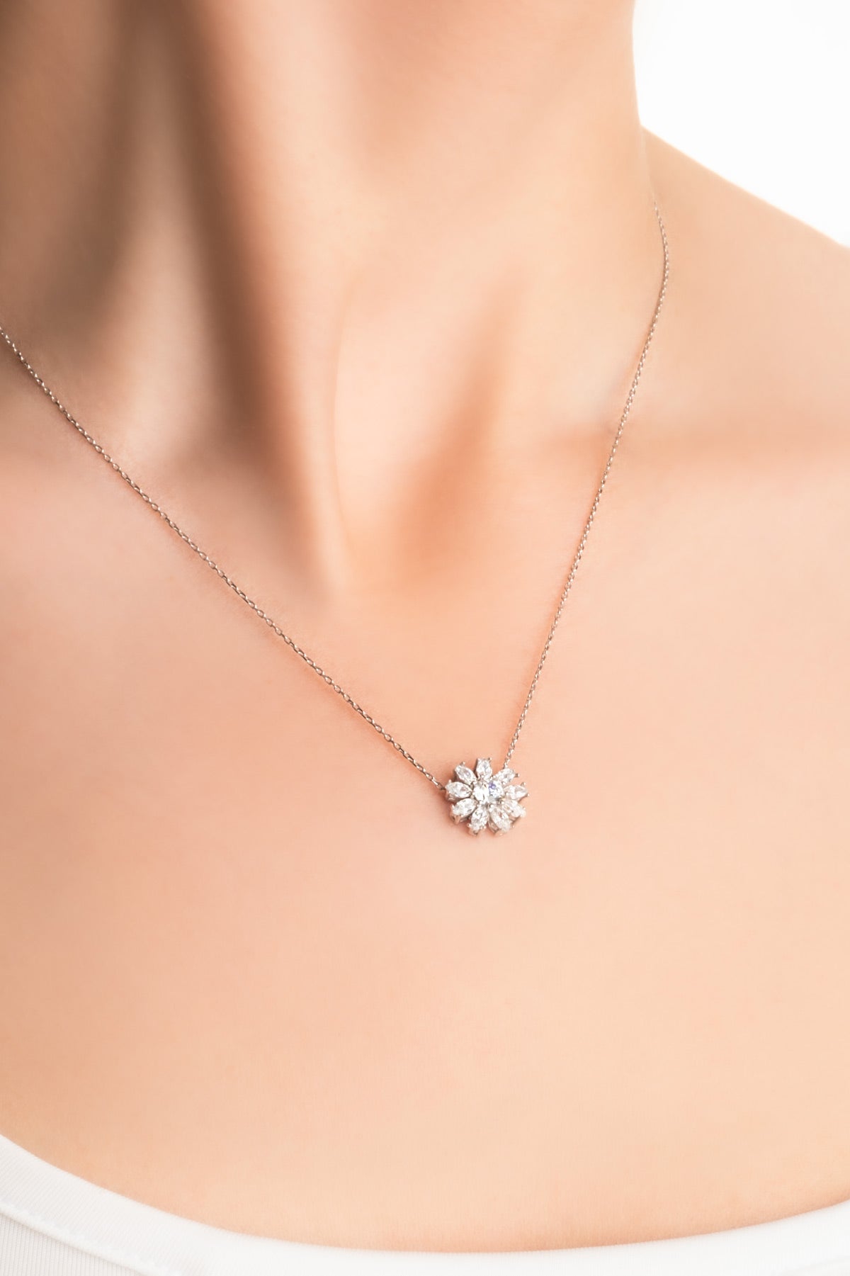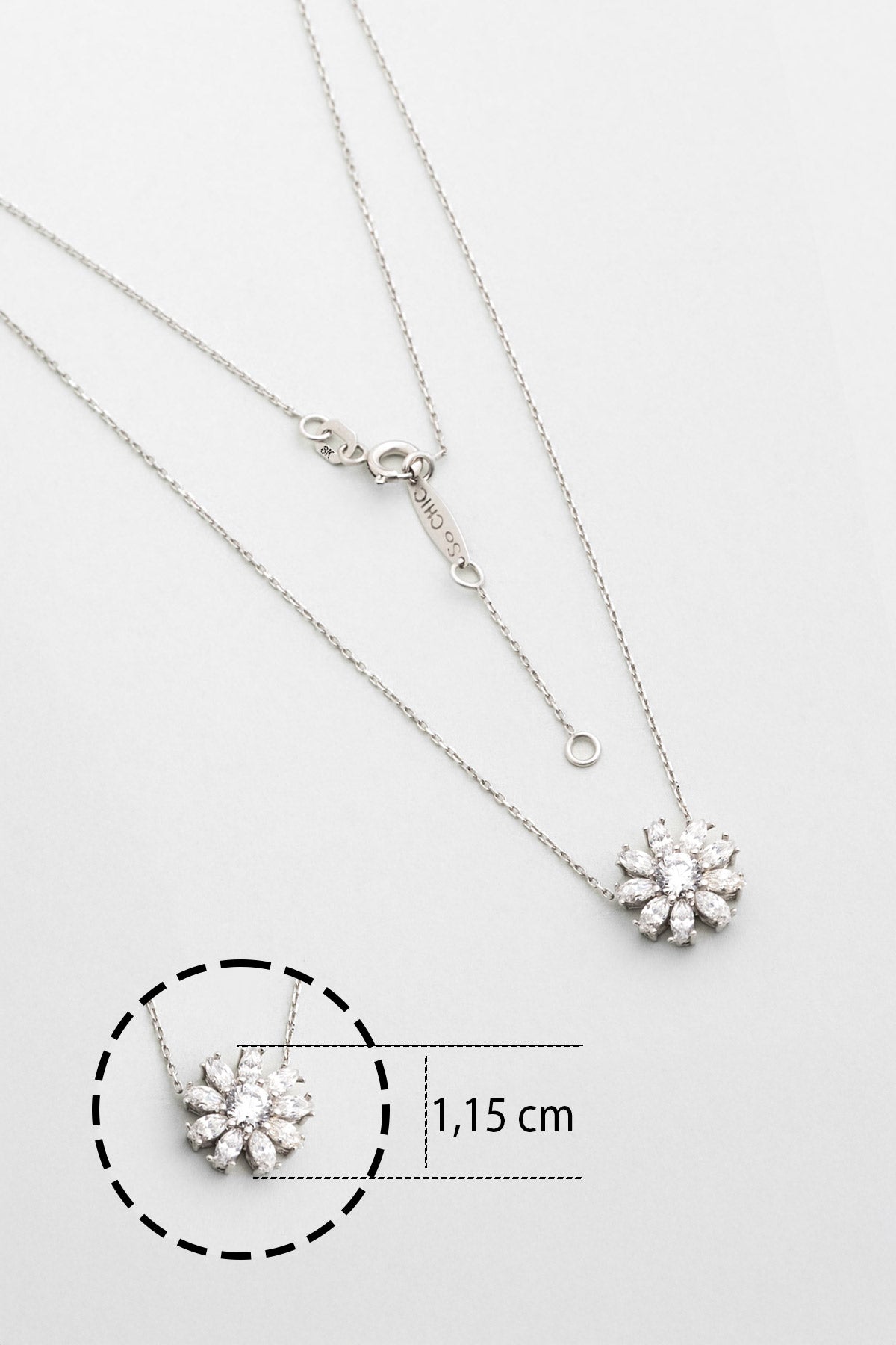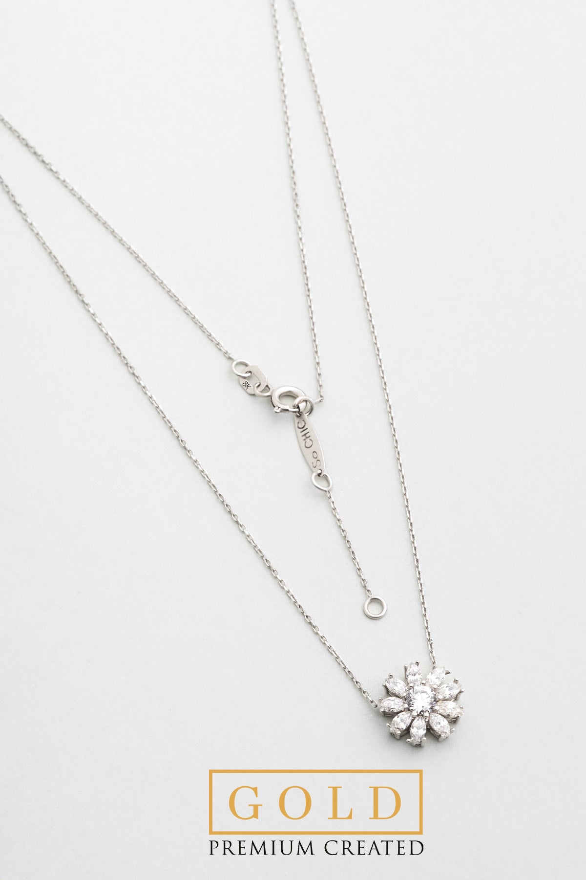 Beyaz Altın Sertifikalı Premium Created Taşlı 42 Cm Çiçek Kolye Ww06580200199