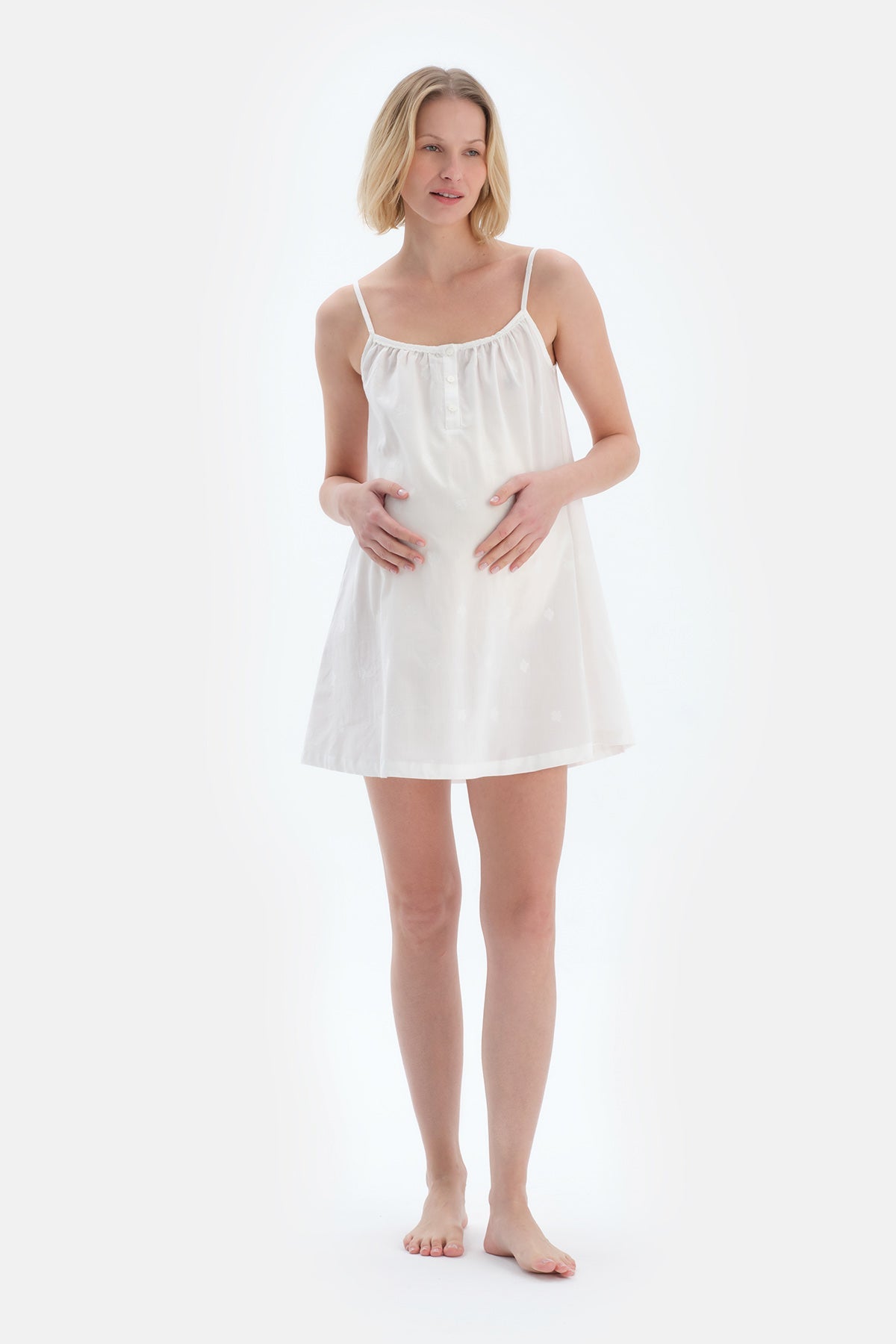 Beyaz Askılı Poplin Dokuma Hamile Gecelik