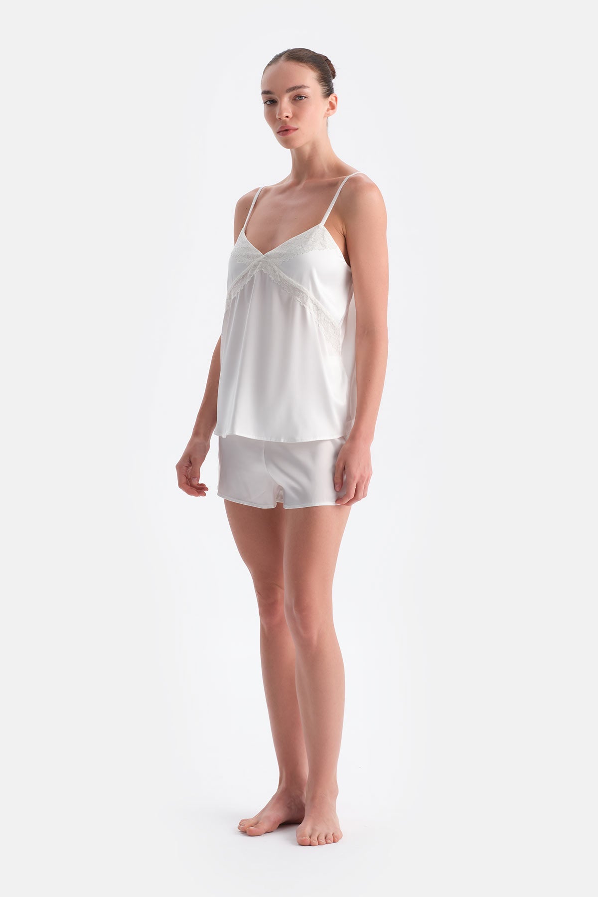 Beyaz Dantel Detaylı Saten Brıde Camısole Takım 24AW17734EB_307 şimdi Dagi'de. Kaliteli, konforlu ve özel fiyatlarla sizleri bekliyor.