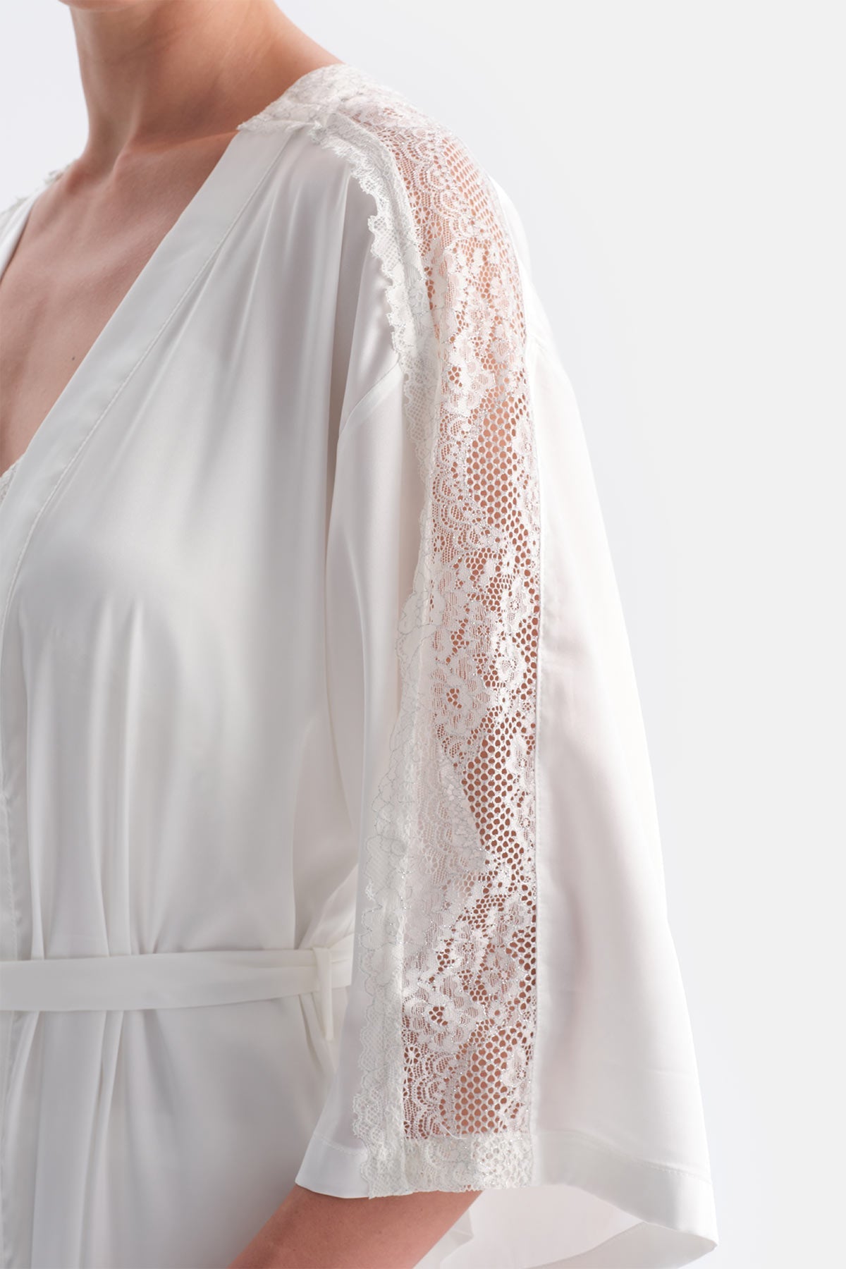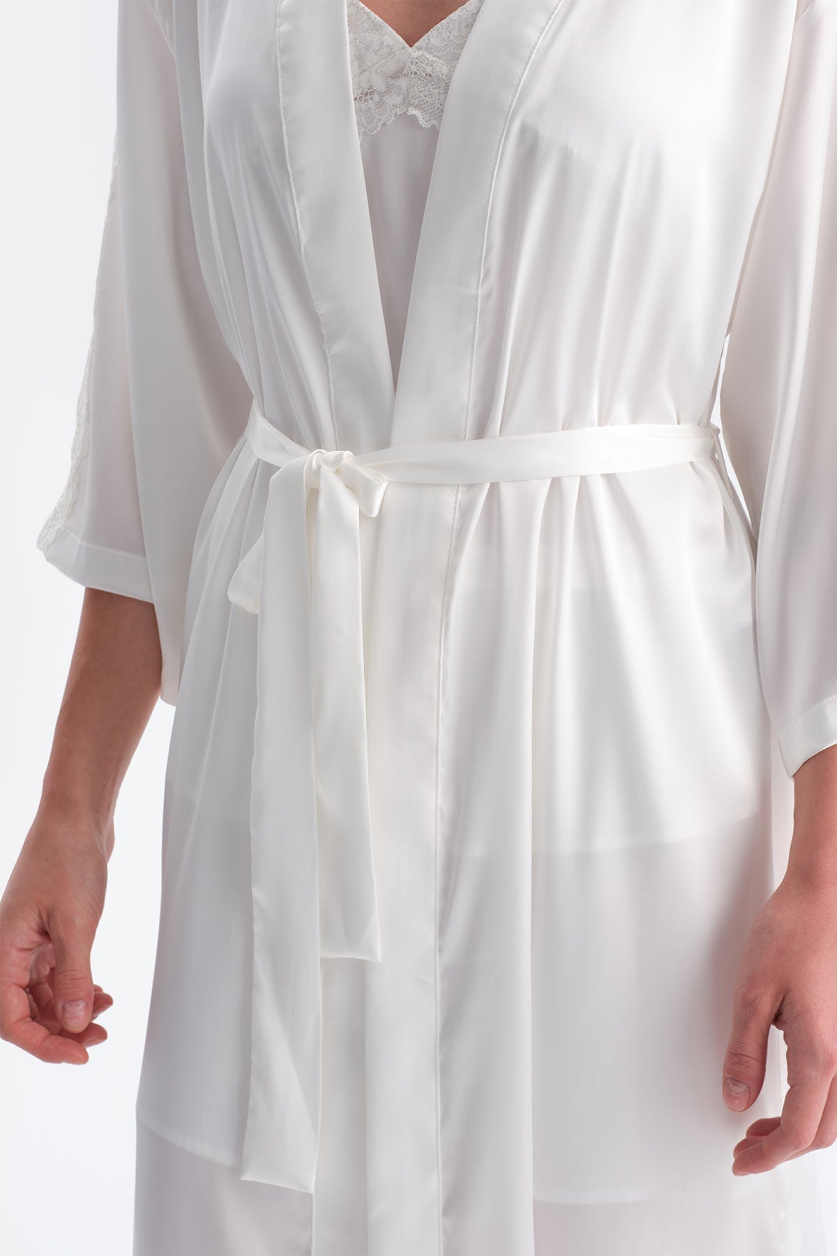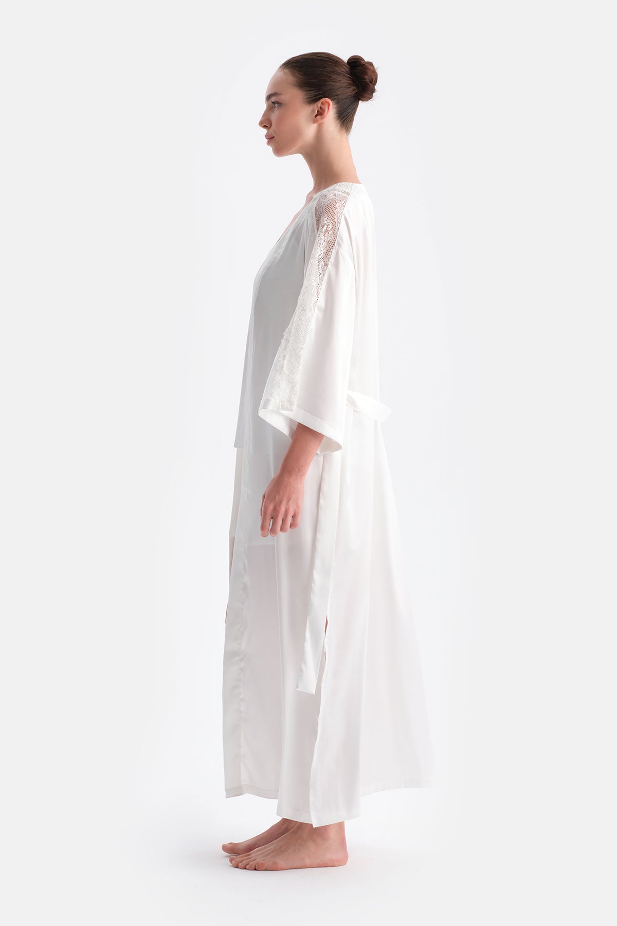 Beyaz Dantel Detaylı Saten Brıde Sabahlık