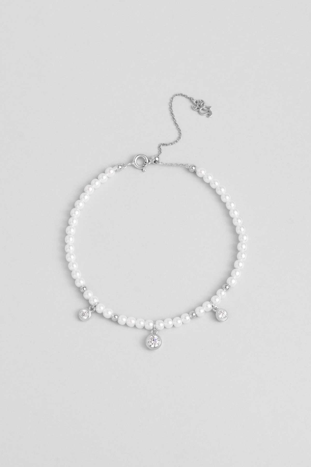 Beyaz Gece 18 Ayar Beyaz Altın Kaplama 20 Cm Gümüş Inci Bileklik 5152966299