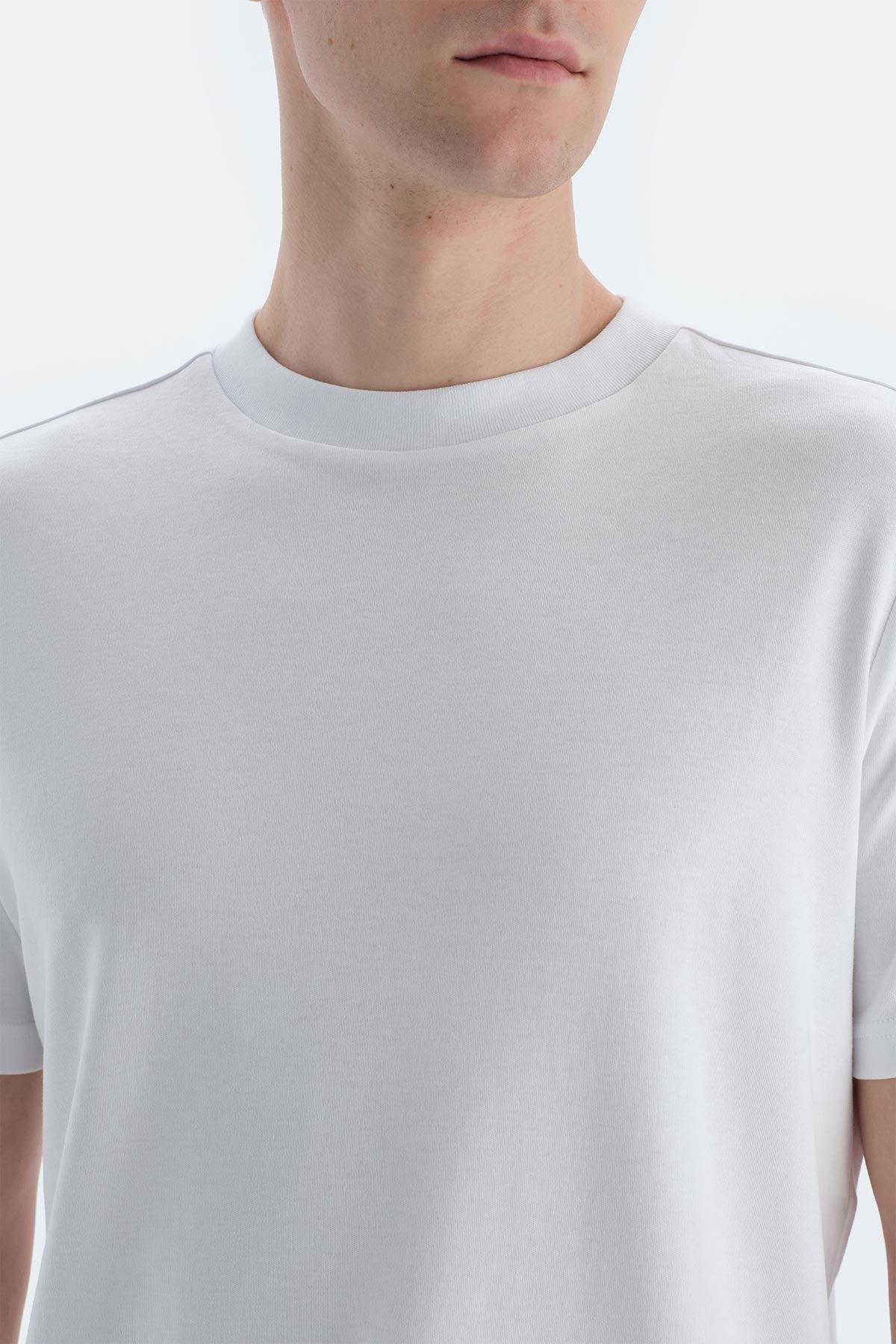 Beyaz Ipek Apre Interlok Bisiklet Yaka Tişört