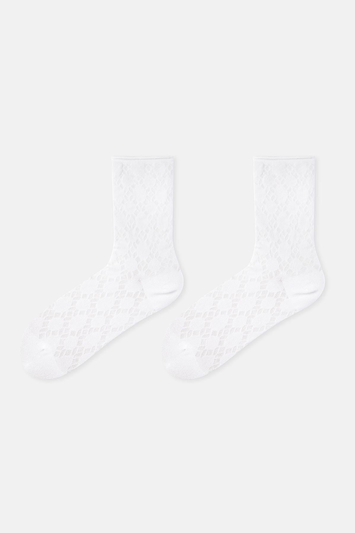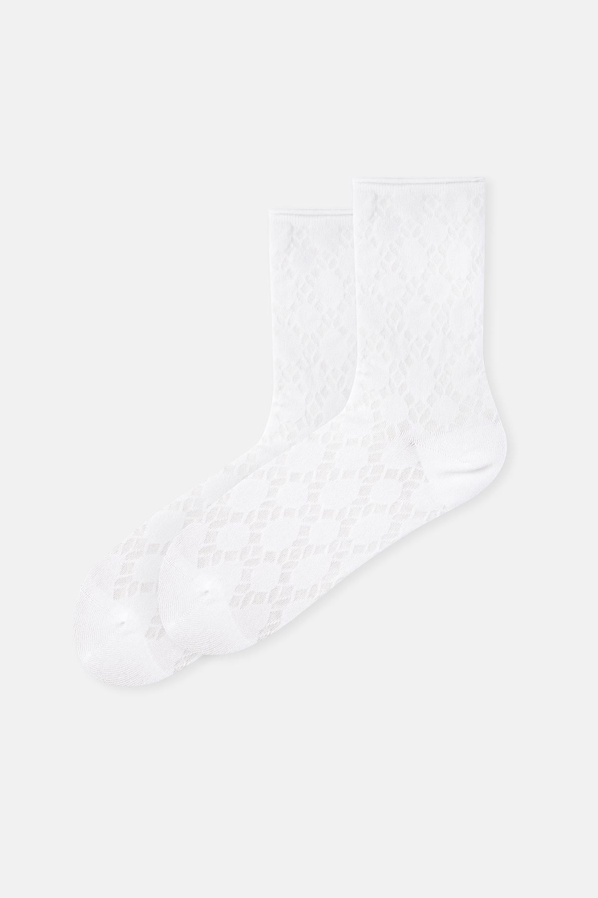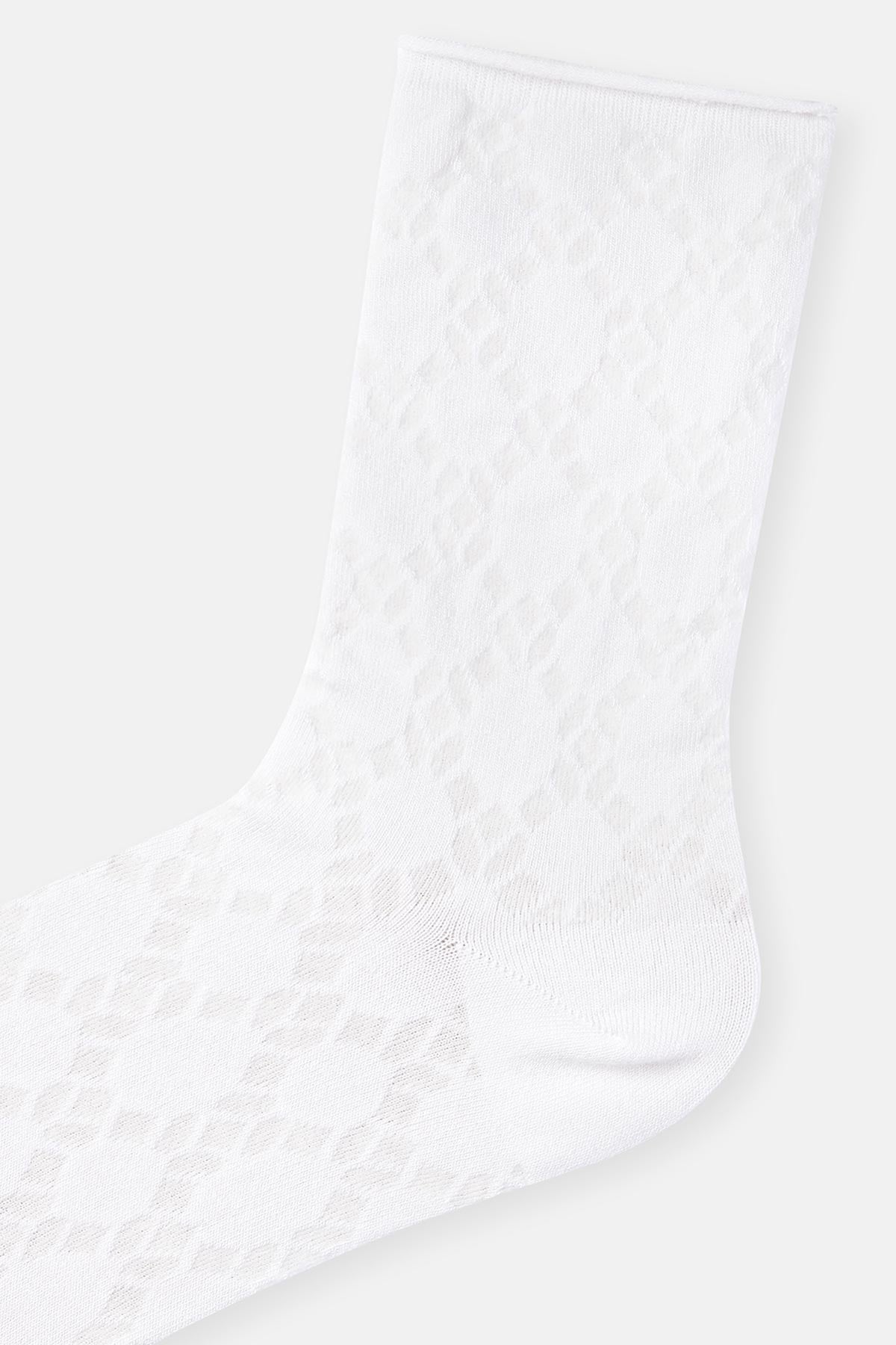 Beyaz Kadın Modal Jakar Desenli Soket Çorap