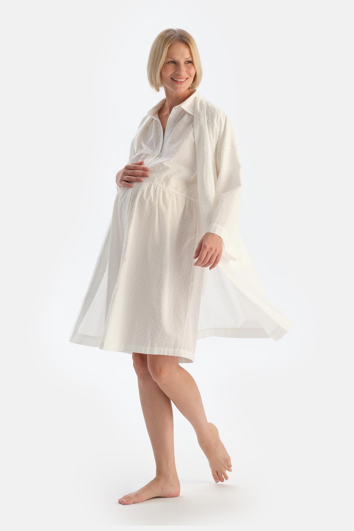 Beyaz Müslin Hamile Sabahlık 24AW19108EB_307 şimdi Dagi'de. Kaliteli, konforlu ve özel fiyatlarla sizleri bekliyor.