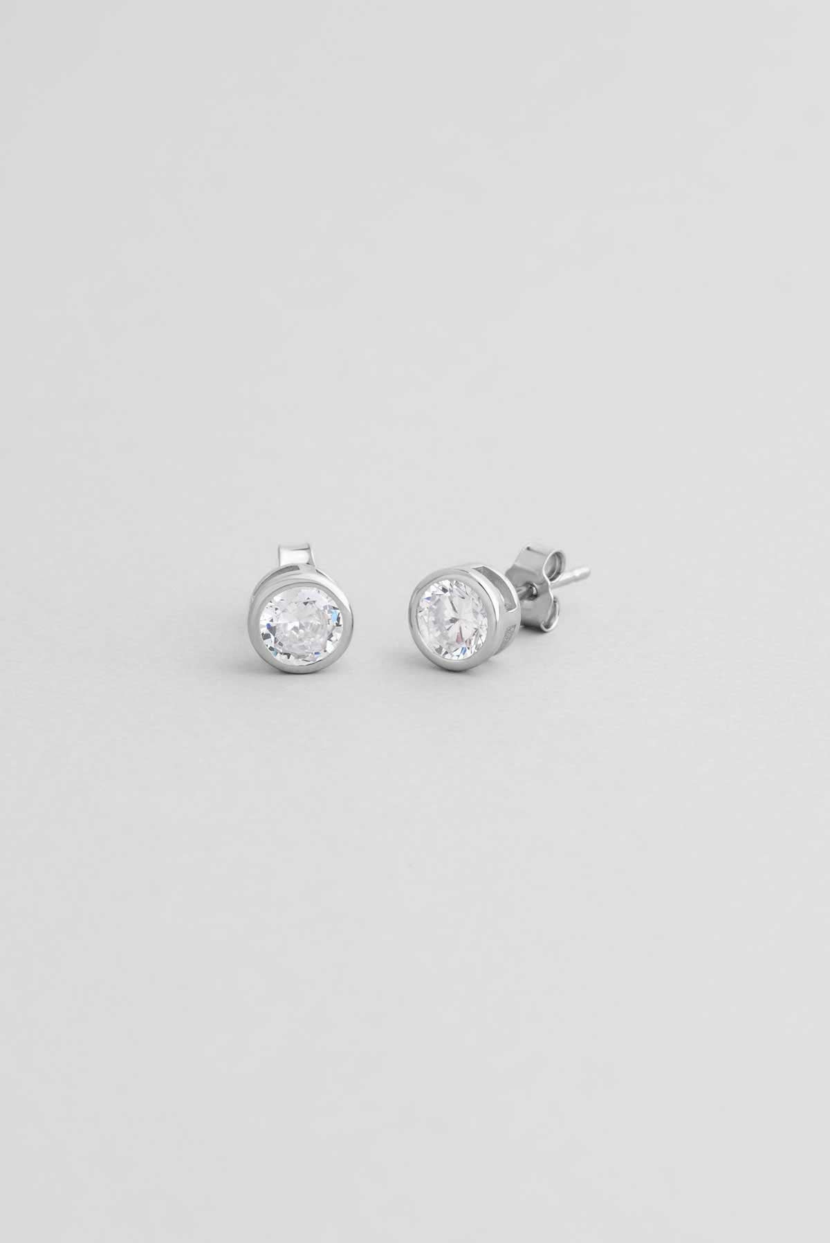 Beyaz Taşlı 18 Ayar Beyaz Altın Kaplama Unisex Gümüş Tek Taş Küpe 5134300199