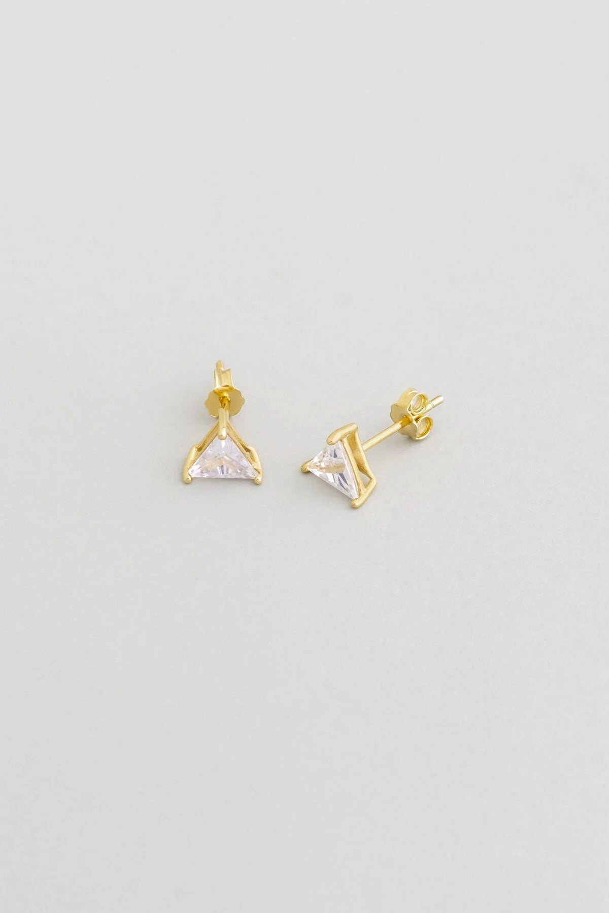 Beyaz Taşlı 18 Ayar Sarı Altın Kaplama 4 Mm Gümüş Tek Taş Küpe 5016230144