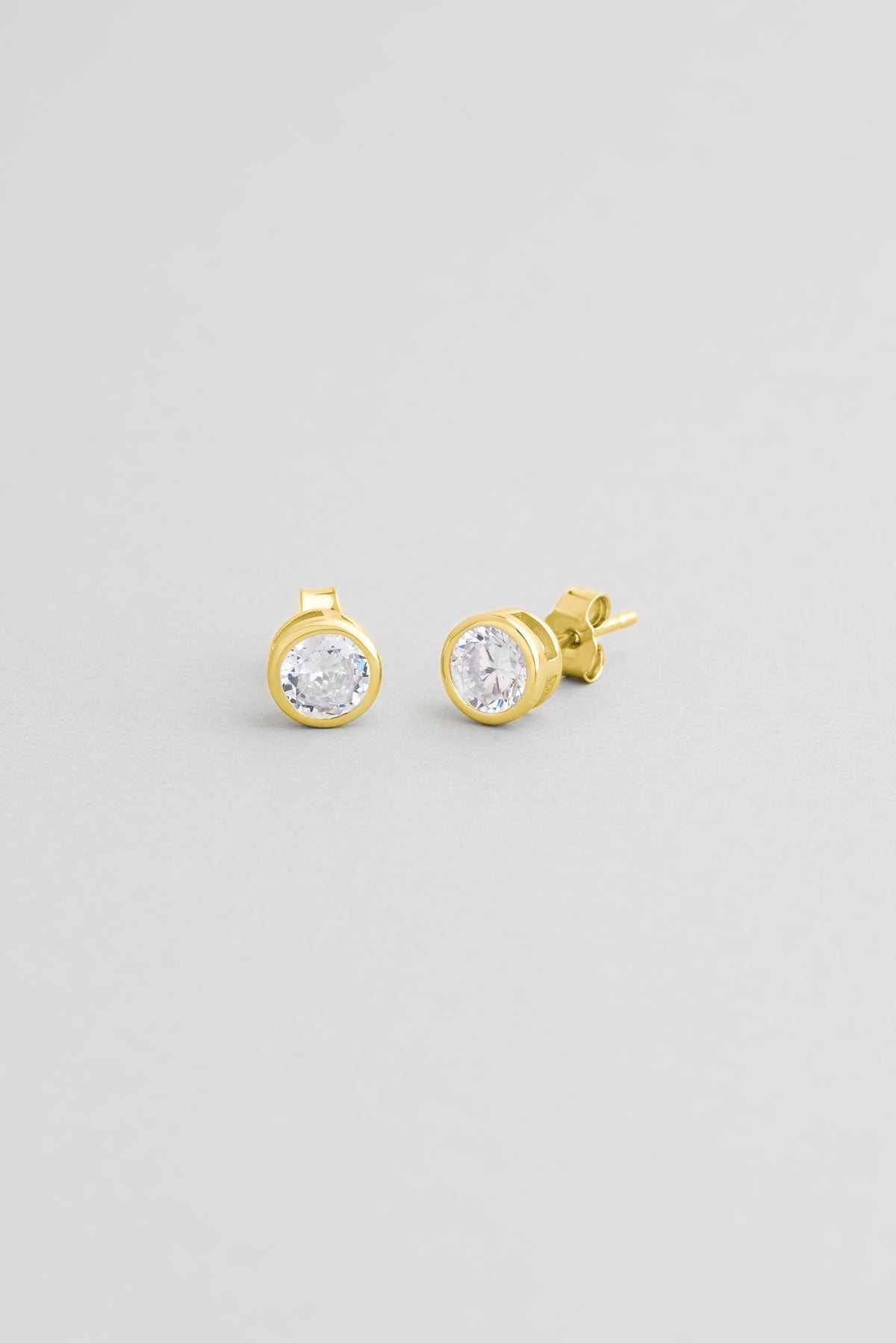 Beyaz Taşlı 18 Ayar Sarı Altın Kaplama Unisex Gümüş Tek Taş Küpe 5134300144