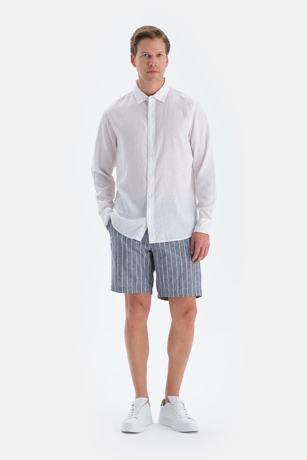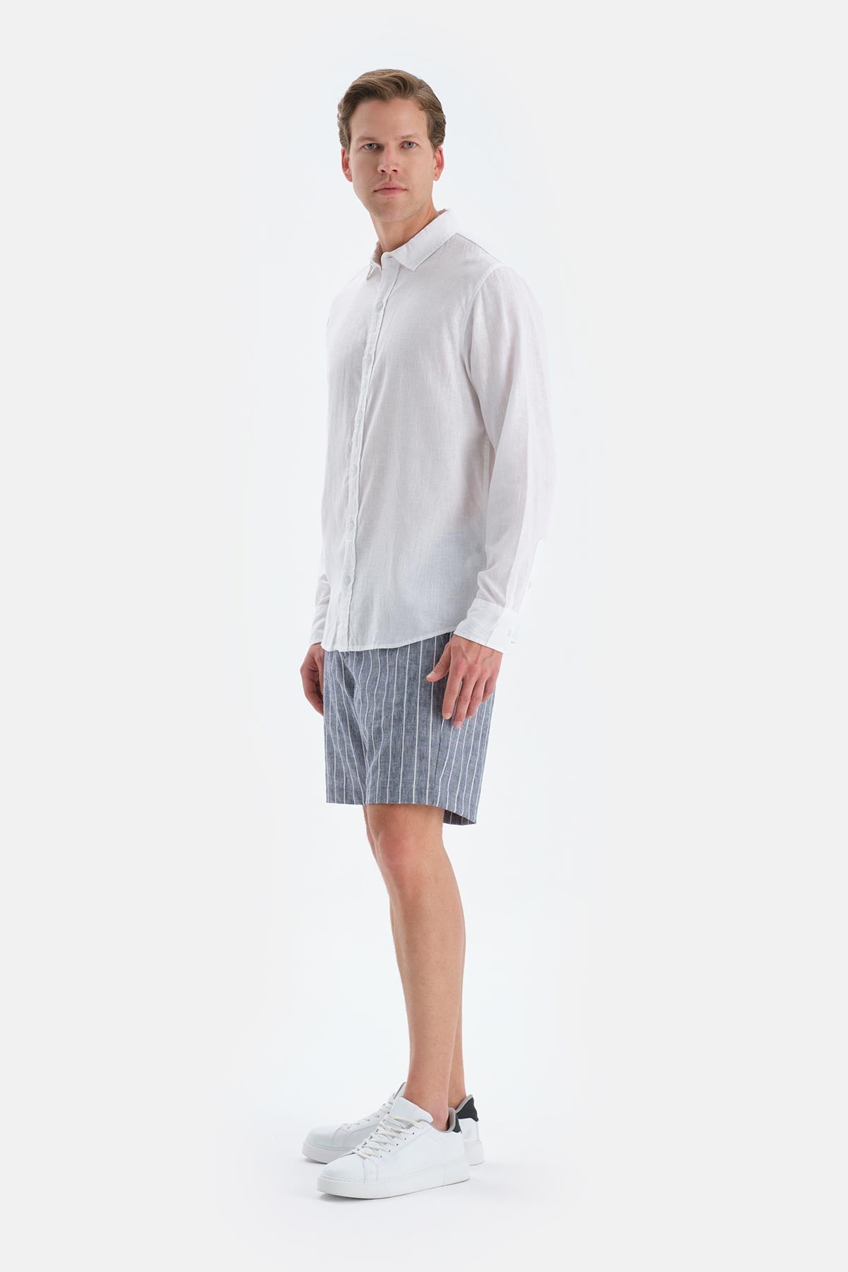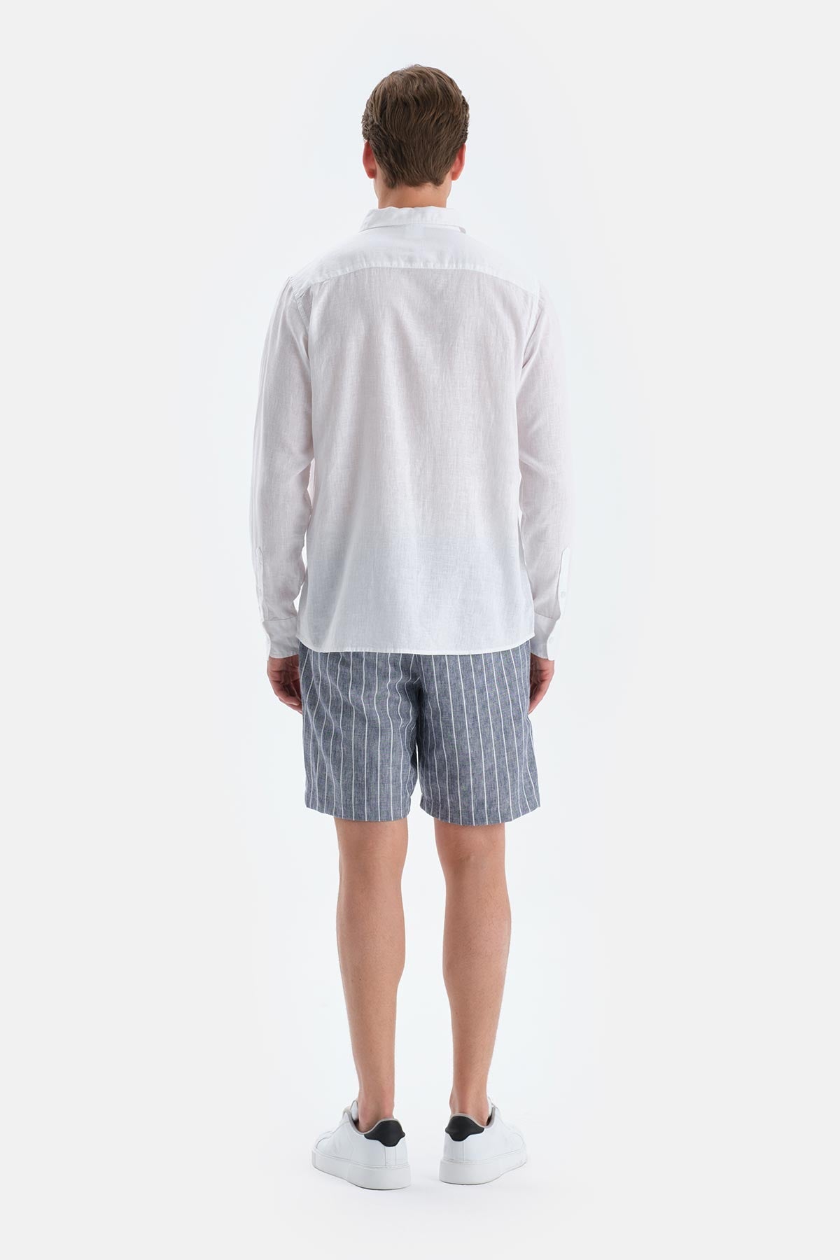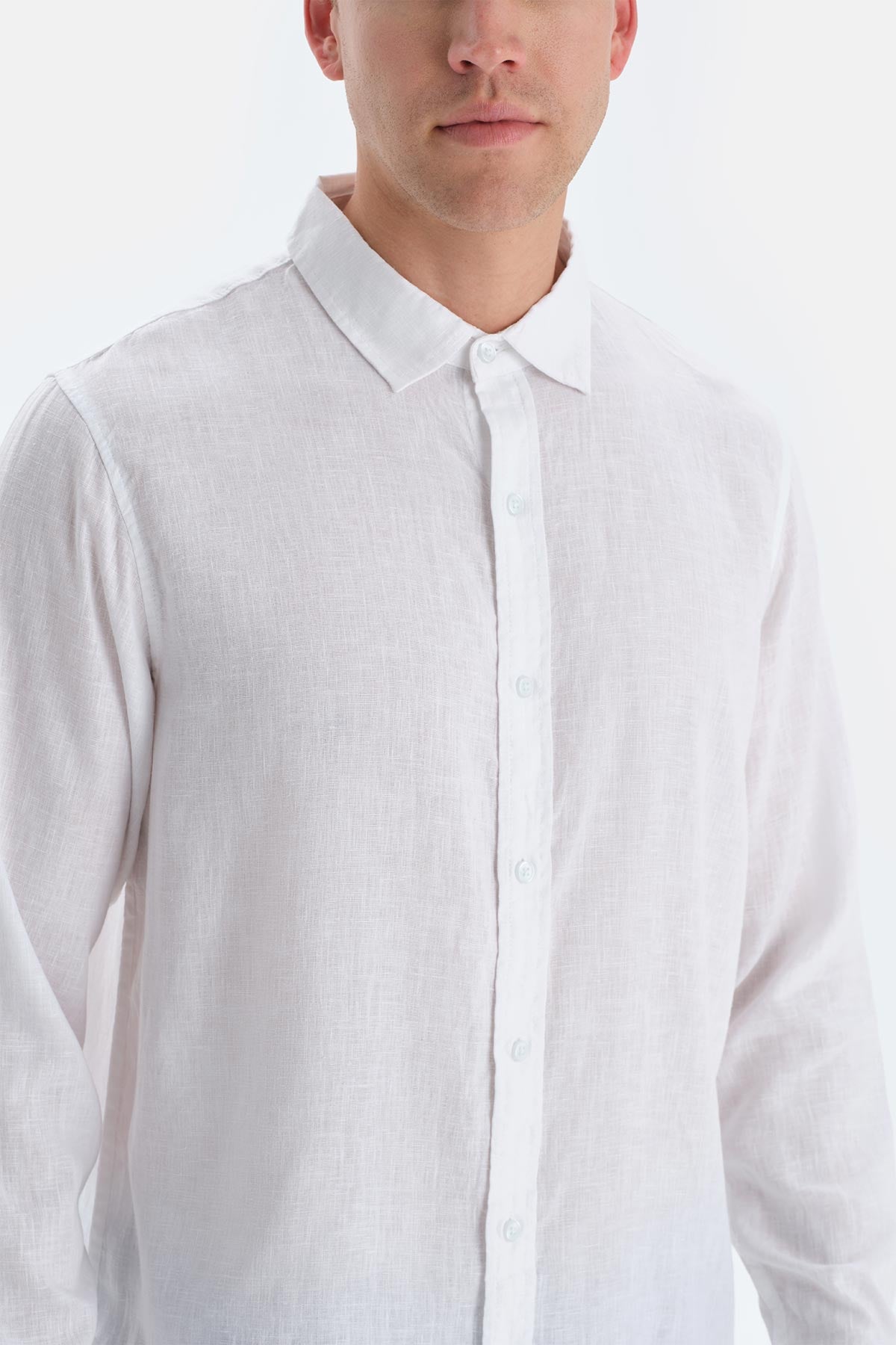 Beyaz Uzun Kollu Keten Gömlek