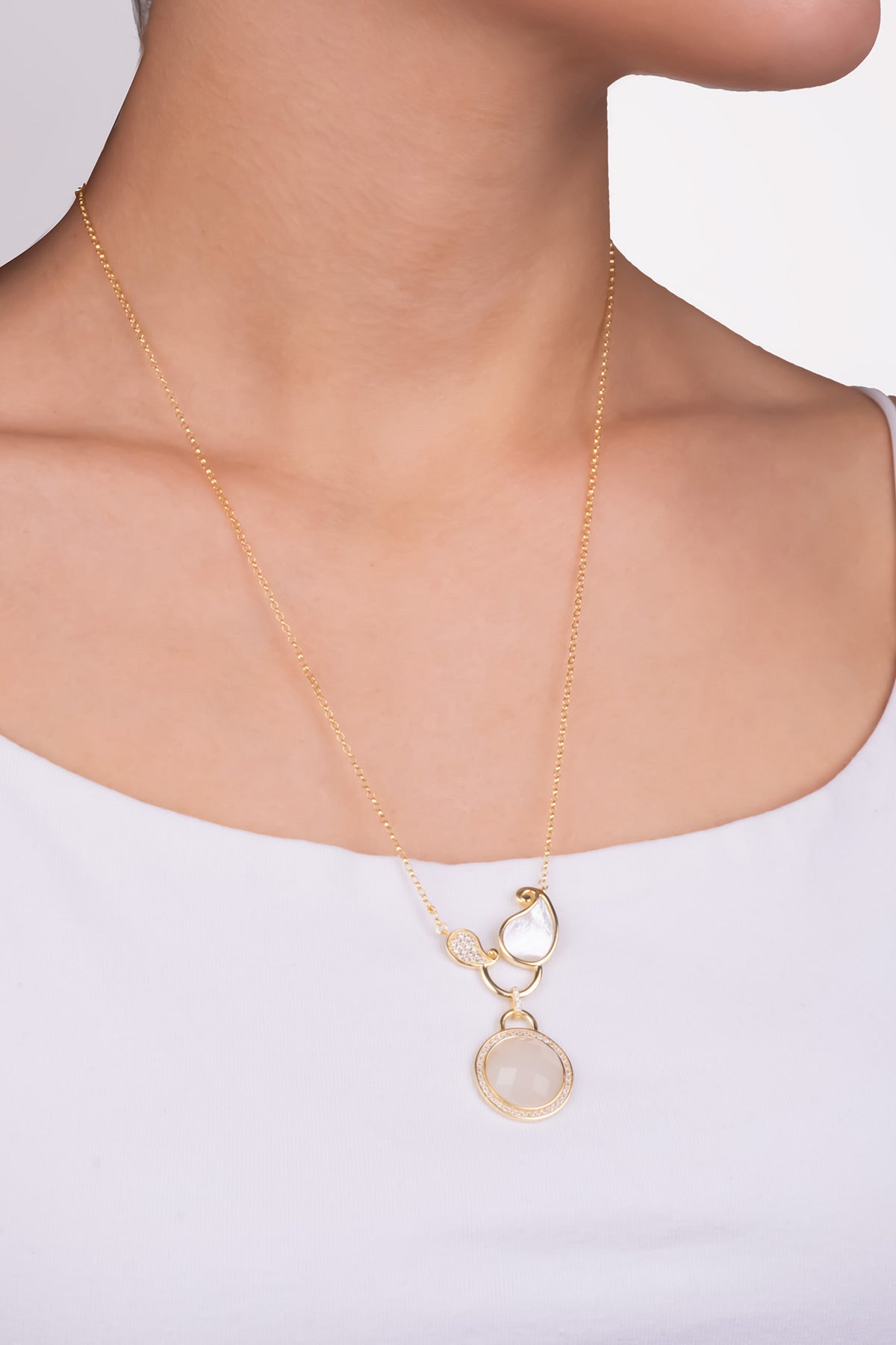 Binbir Gece 18 Ayar Sarı Altın Kaplama 55 Cm Gümüş Sedef Kolye 07310634644