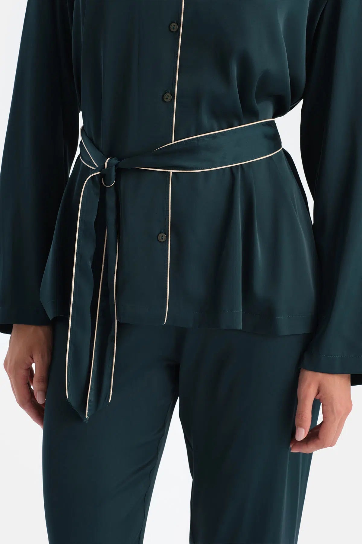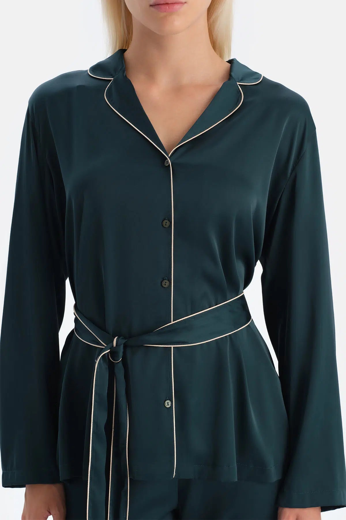 Biye Detayli Saten Bağlamali Gömlek