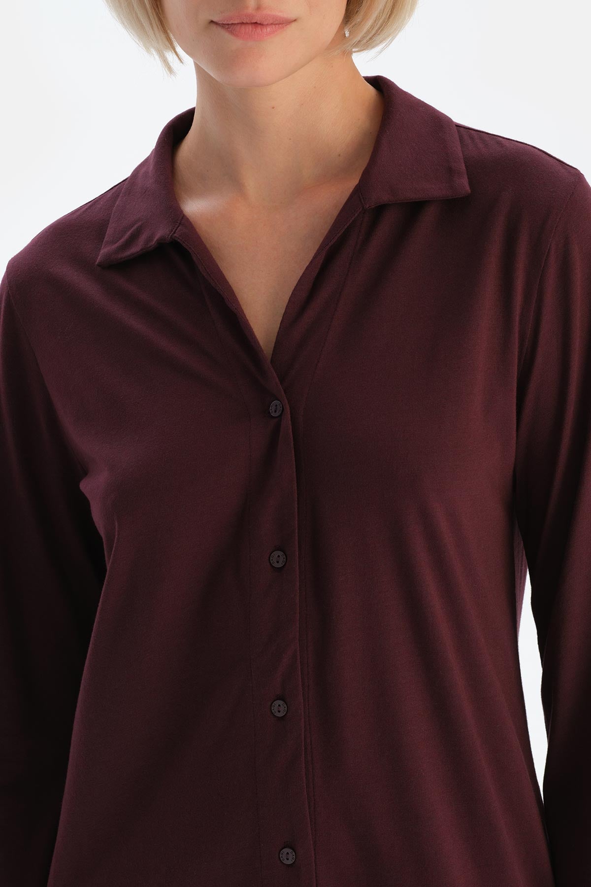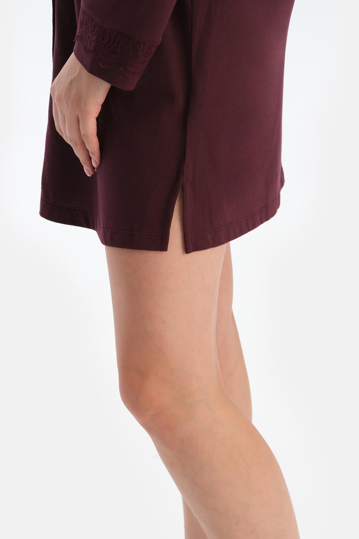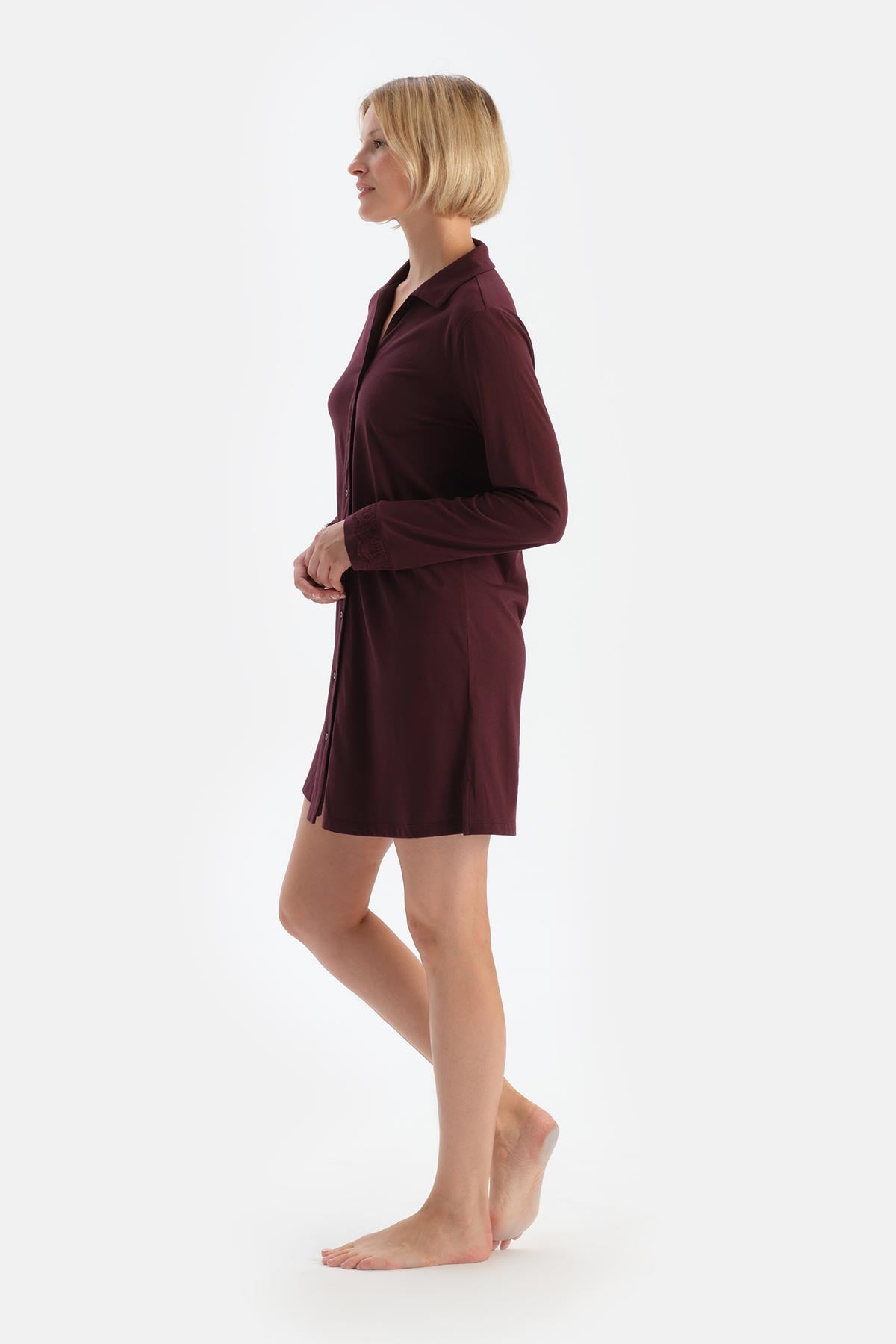 Bordo Dantel Detaylı Gömlek Yaka Modal Gecelik
