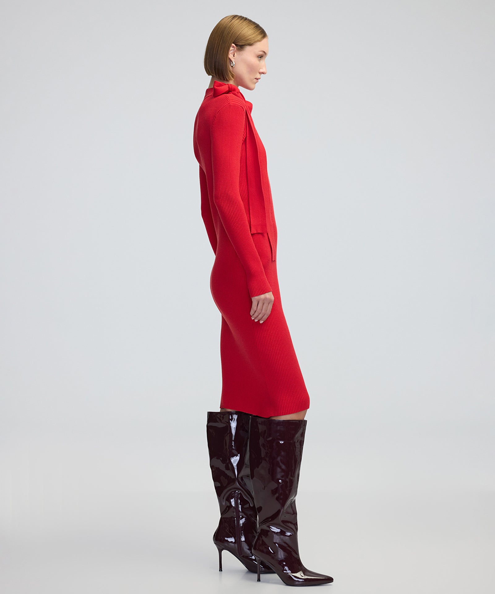 Kırmızı Boyundan bağlamalı triko elbise IW6240002300034 ile tarzınızı tamamlayacaksınız. IPEKYOL tarzına sahip olmak için hemen tıklayın!