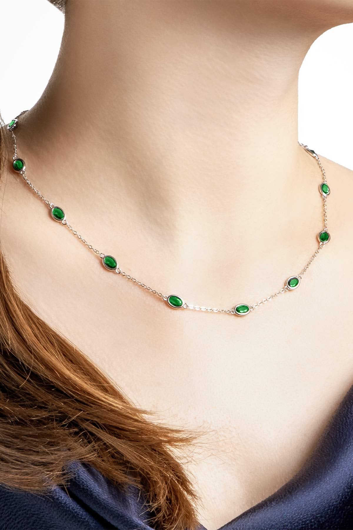 Büyülü Renkler 18 Ayar Beyaz Altın Kaplama 45 Cm Gümüş Kolye 5172790499