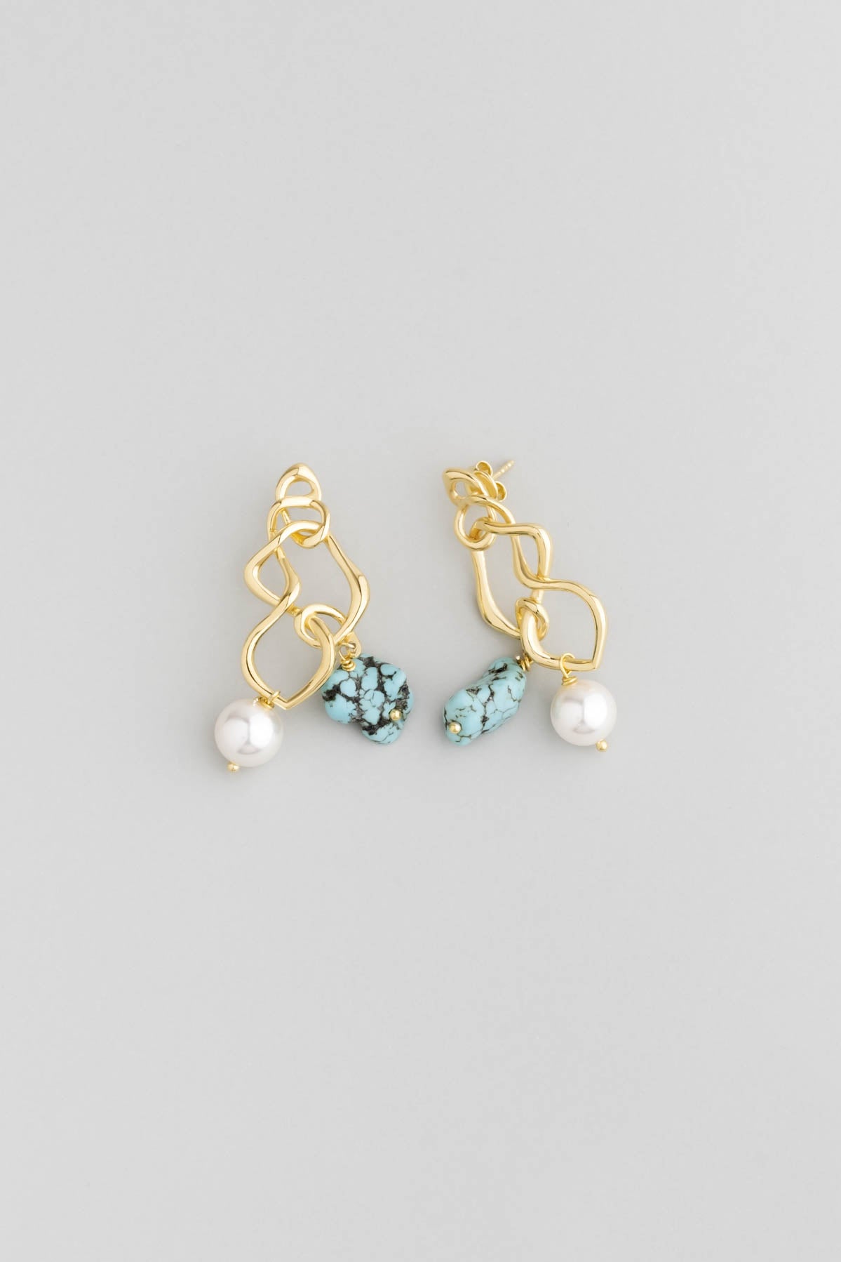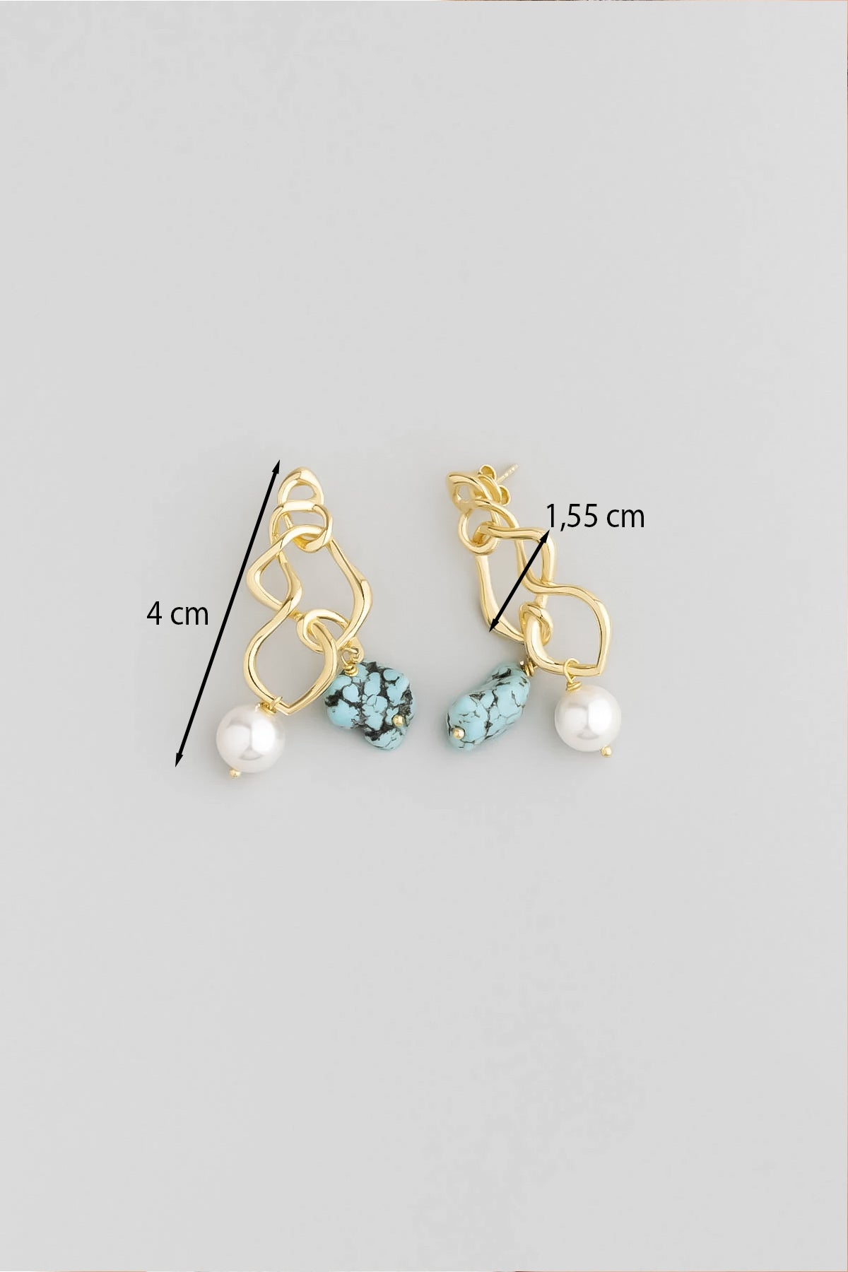Büyülü Turkuaz 18 Ayar Sarı Altın Kaplama Doğal Taşlı Gümüş Küpe 07293371644