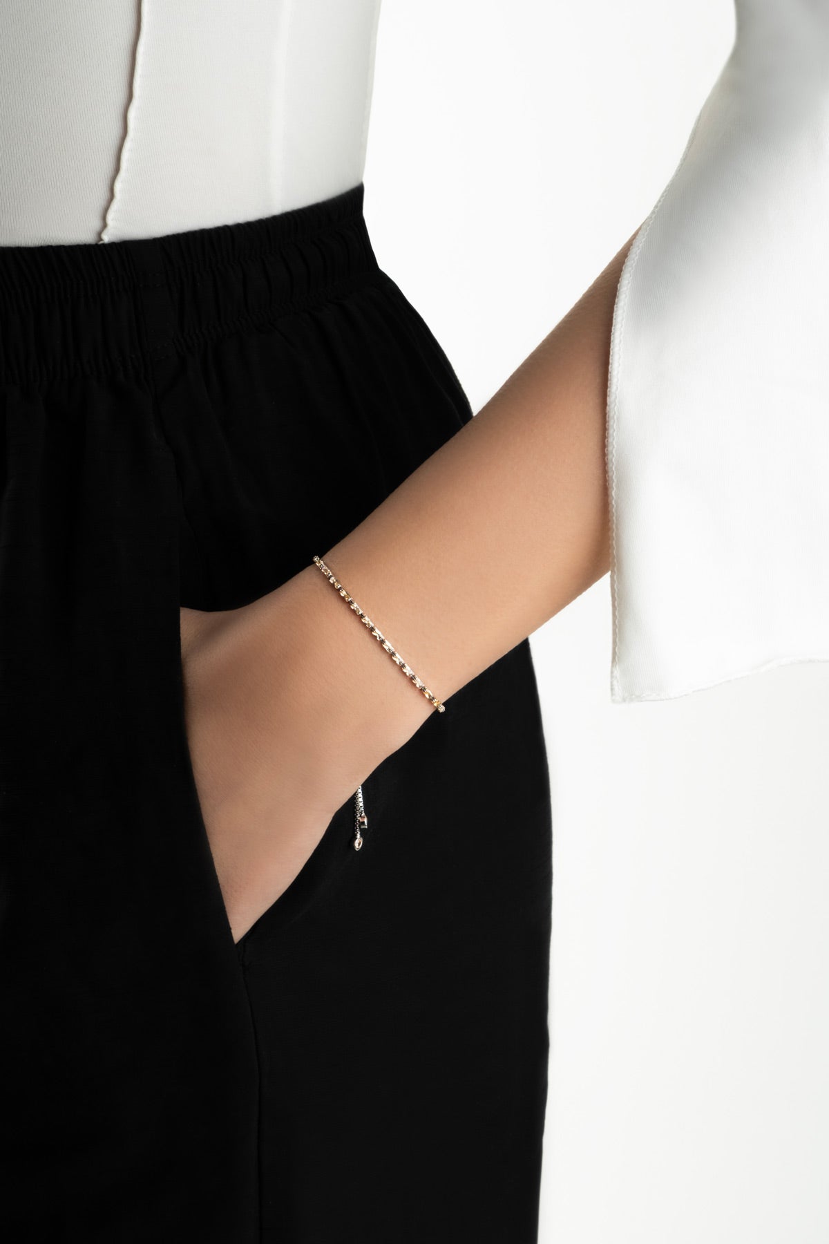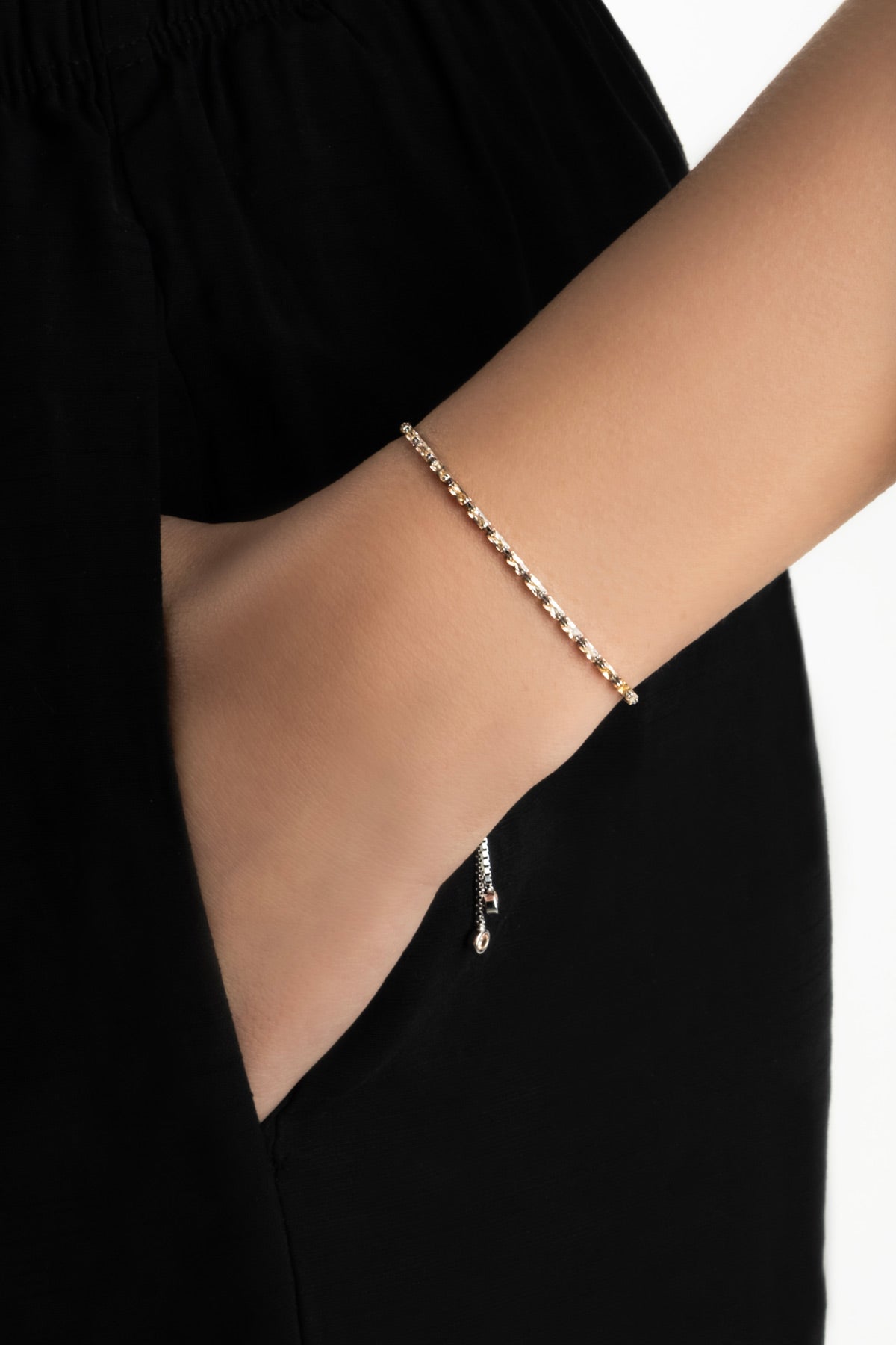 Champel 18 Ayar Beyaz Altın Kaplama Gümüş Ayarlanabilir Bileklik 5178280699