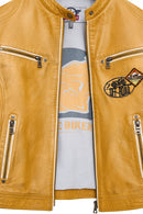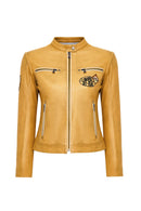 Champs Kadın Sarı Armalı Kısa Deri Ceket