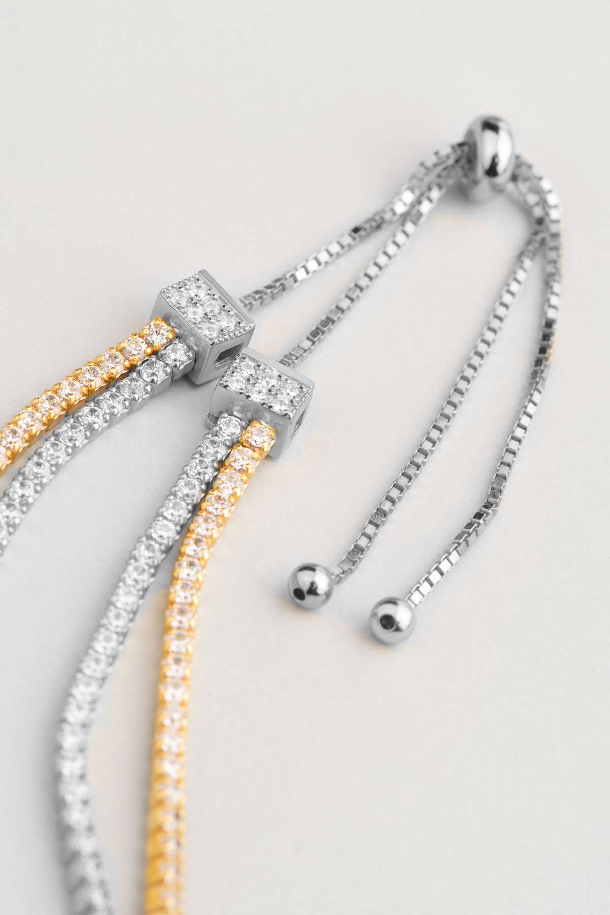 Çift Sıra Su Yolu 18 Ayar Mix Altın Kaplama Gümüş Ayarlanabilir Bileklik 5030150114