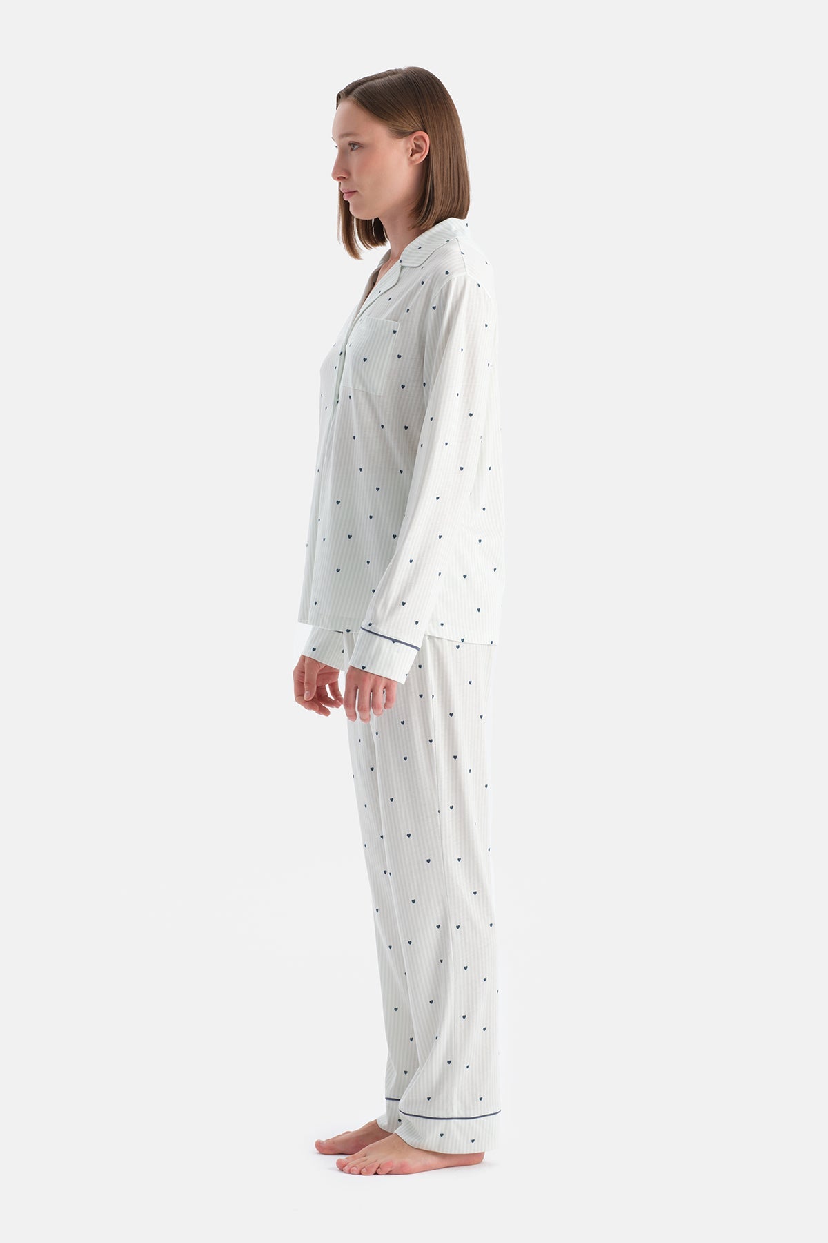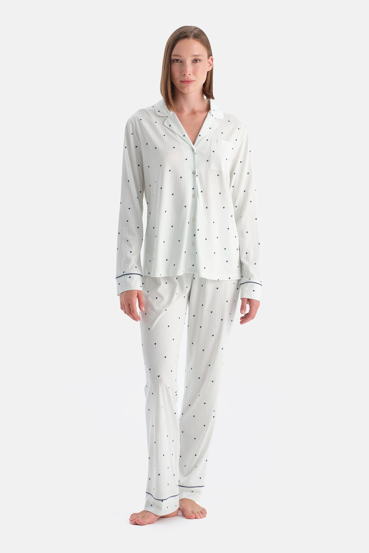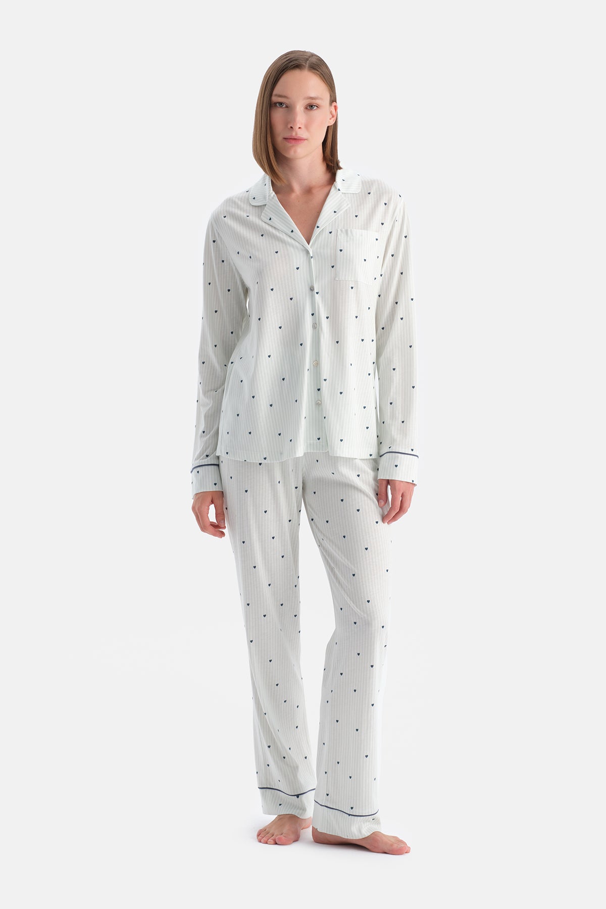 ÇİZGİ VE KALPLİ GÖMLEK PANTOLON TAKIM 25WW17905BB_387 şimdi Dagi'de. Kaliteli, konforlu ve özel fiyatlarla sizleri bekliyor.