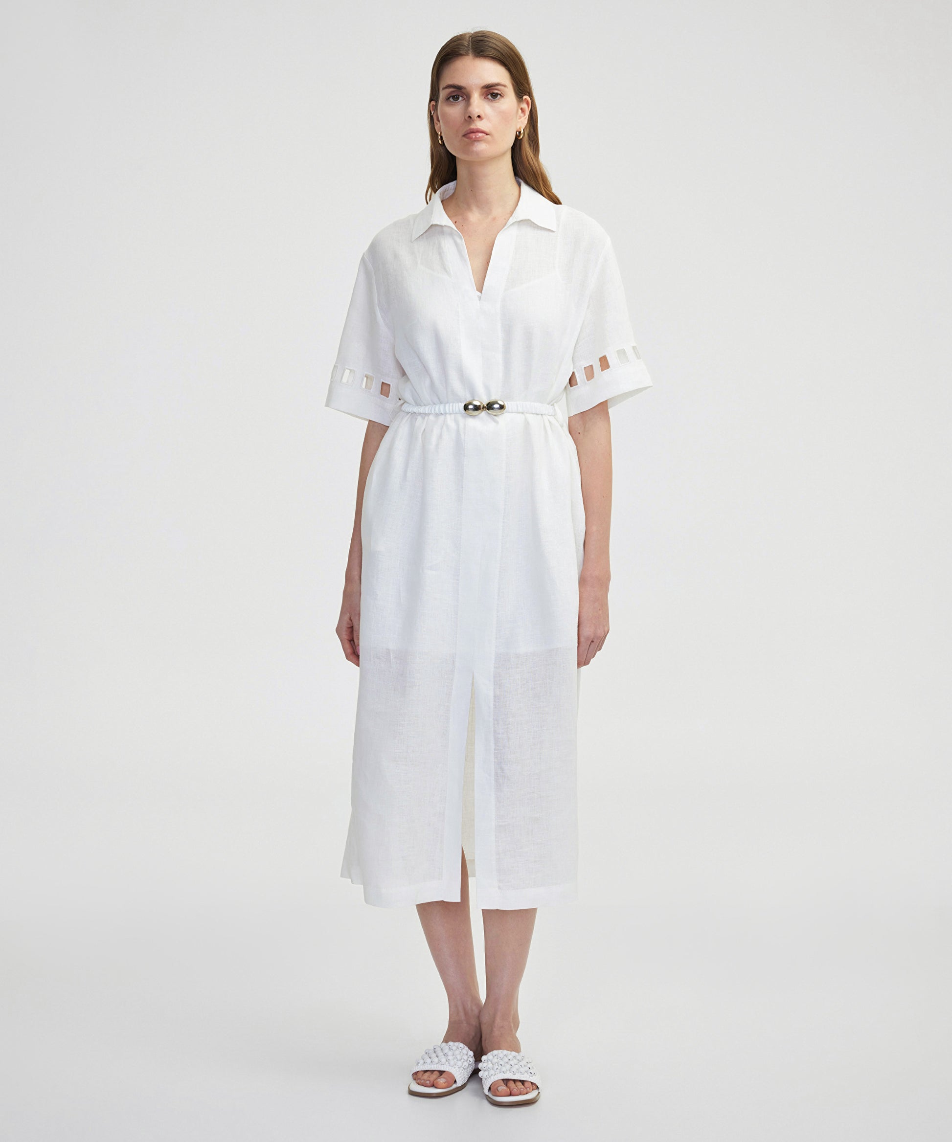 Beyaz Cutout detaylı keten elbise IS1250002333002 ile tarzınızı tamamlayacaksınız. IPEKYOL tarzına sahip olmak için hemen tıklayın!