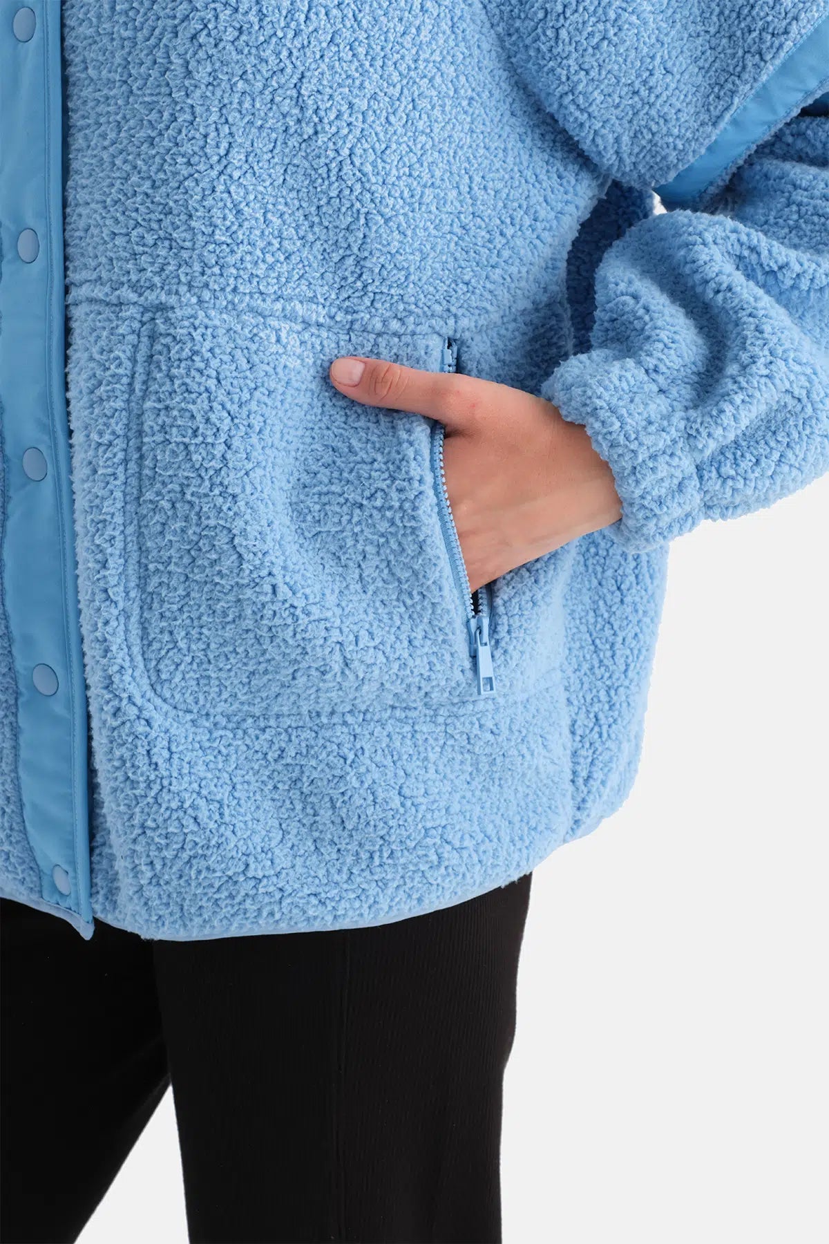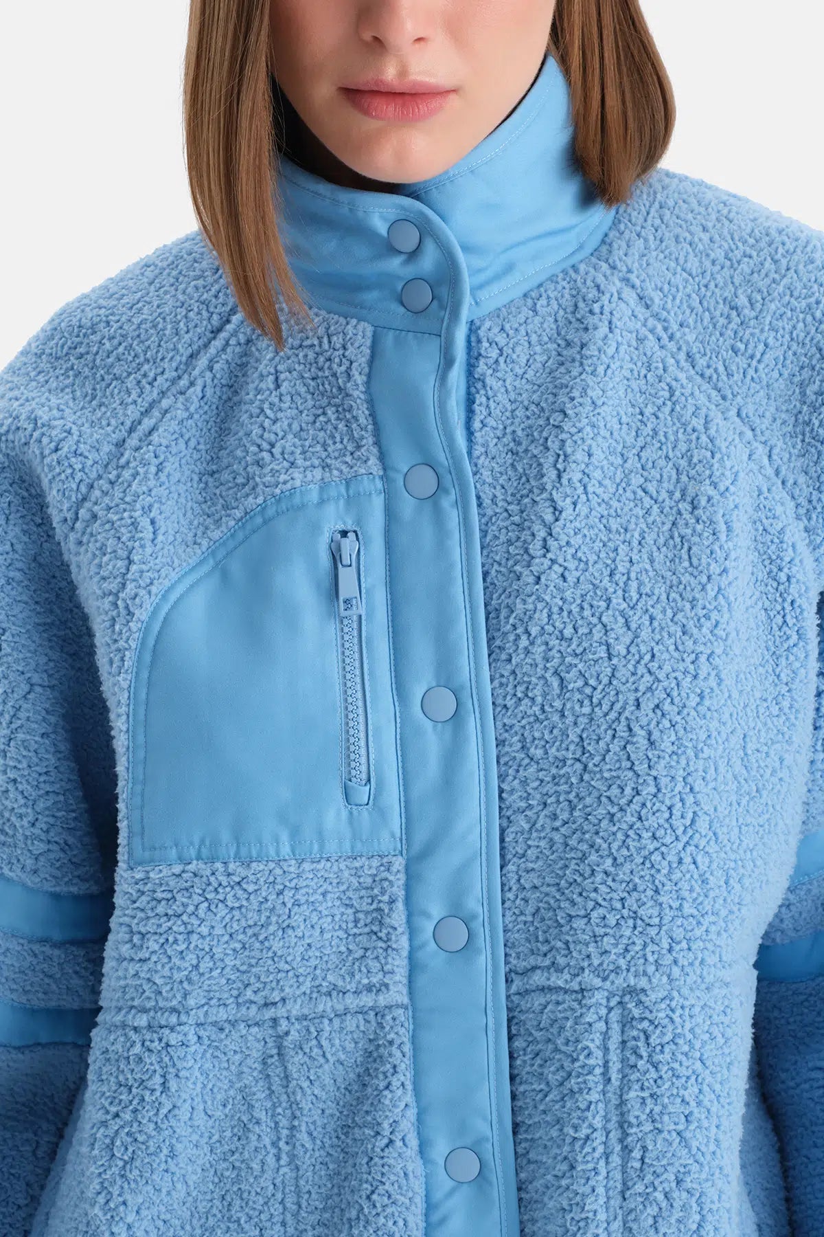 Açık Mavi Kadın Ön Cepli Çıtçıtlı Mont