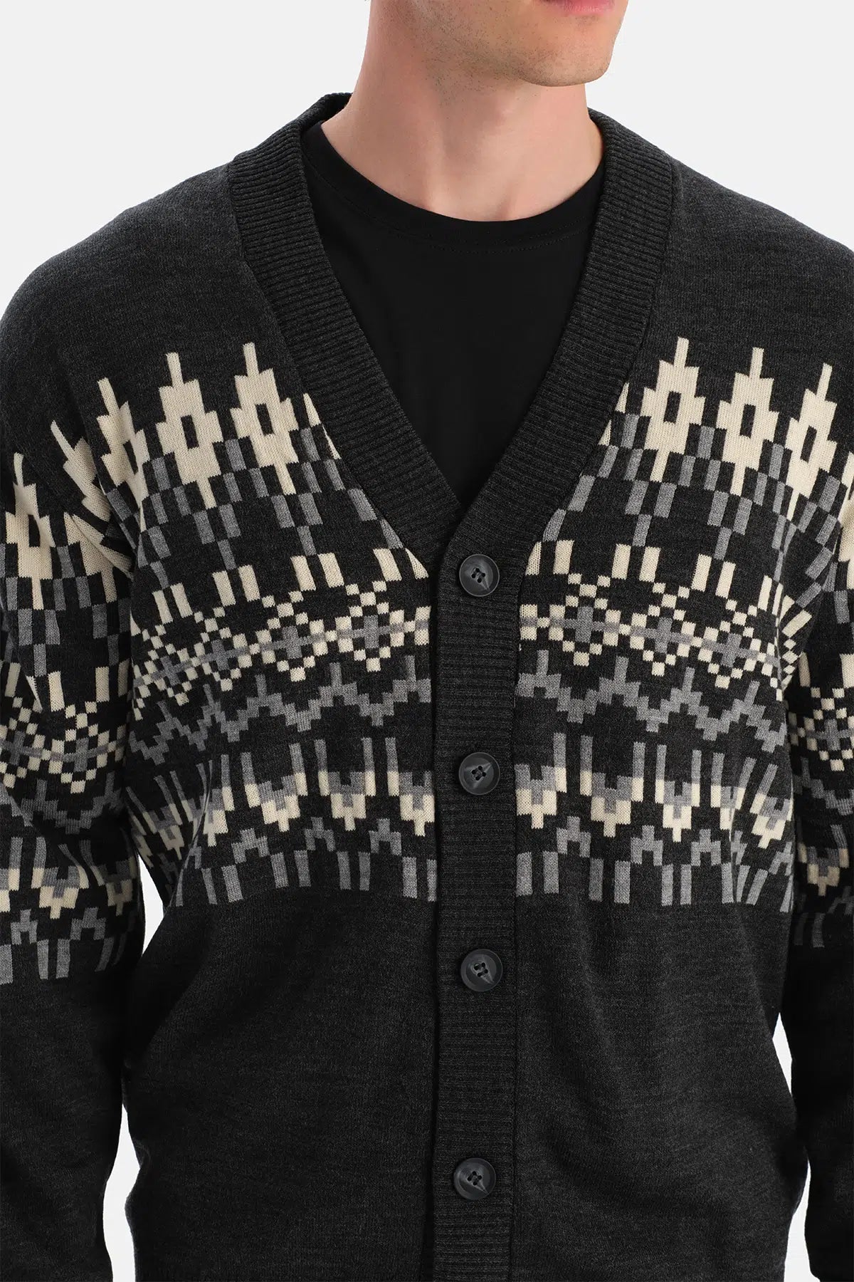 Antrasıt Erkek Yılbaşı Desenli Triko Hırka 24WM93045ME_302 şimdi Dagi'de. Kaliteli, konforlu ve özel fiyatlarla sizleri bekliyor.