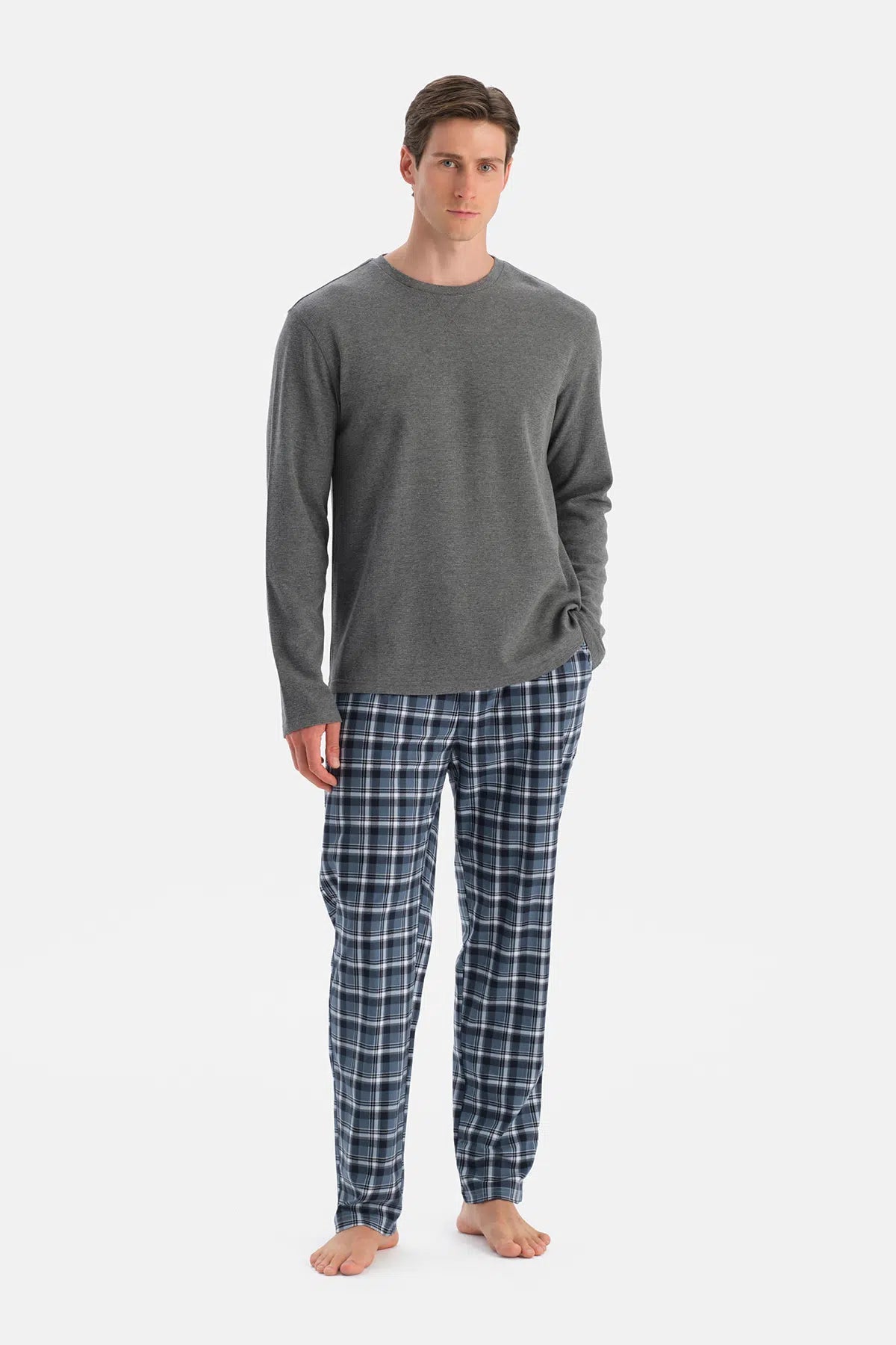 Antrasit Melanj Dikiş Detaylı Waffle Tişört Pantolon Pijama Takımı