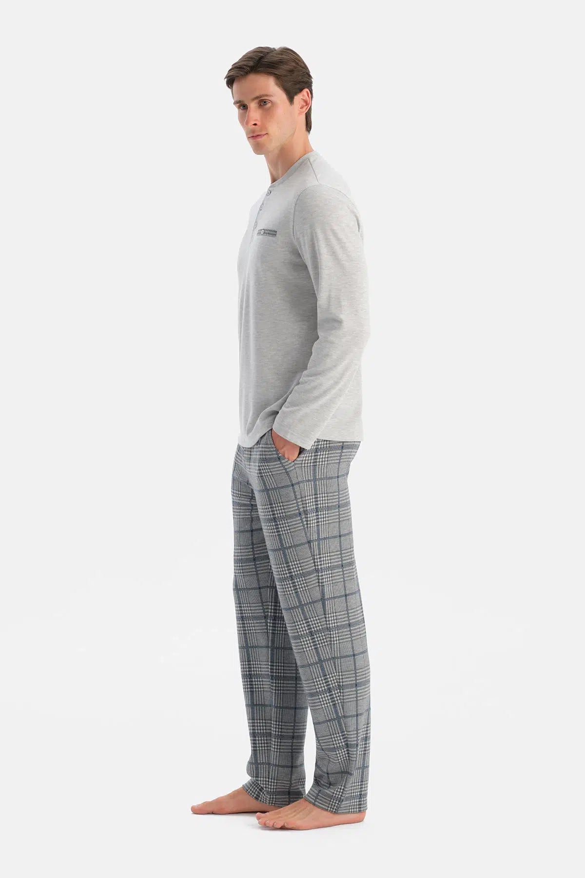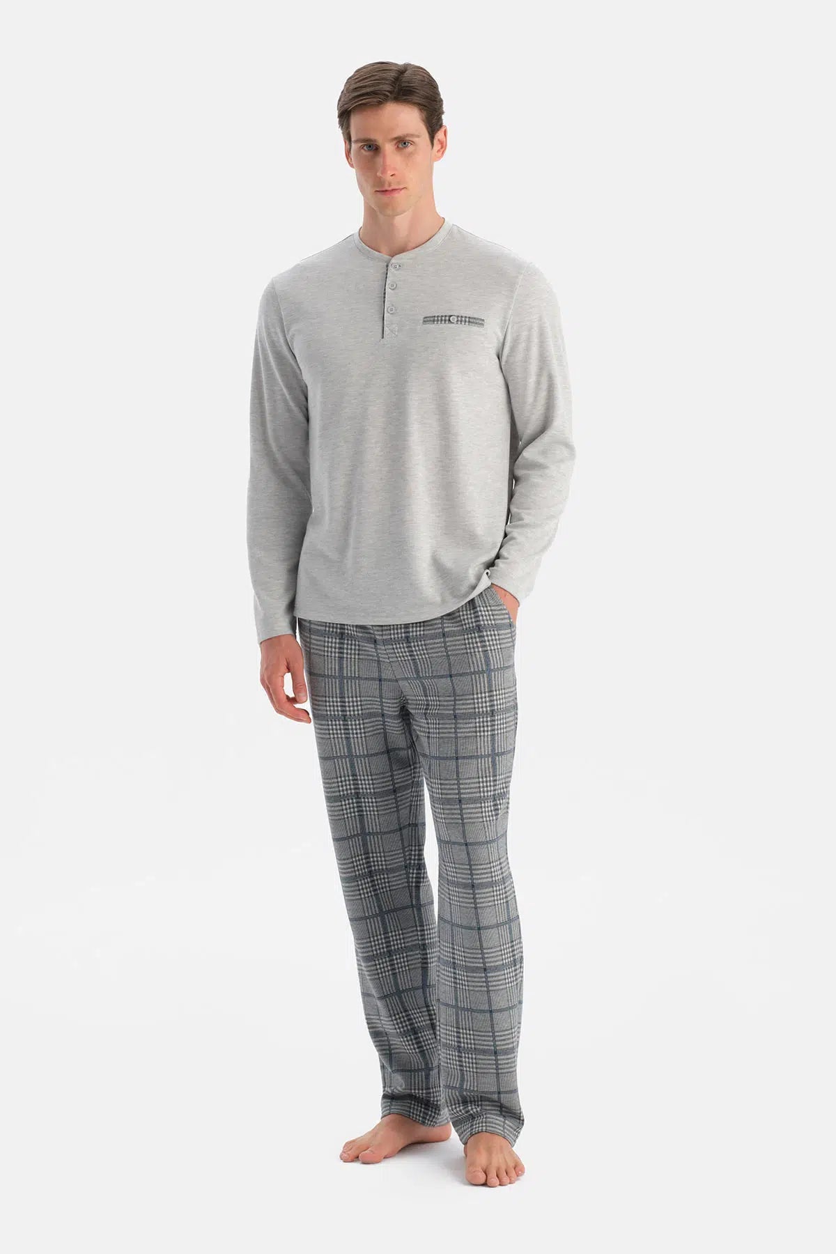 UZUN KOLLU PAT VE CEP DETAYLI TİŞÖRT PANTOLON TAKIM 25WM18733ME_325 şimdi Dagi'de. Kaliteli, konforlu ve özel fiyatlarla sizleri bekliyor.