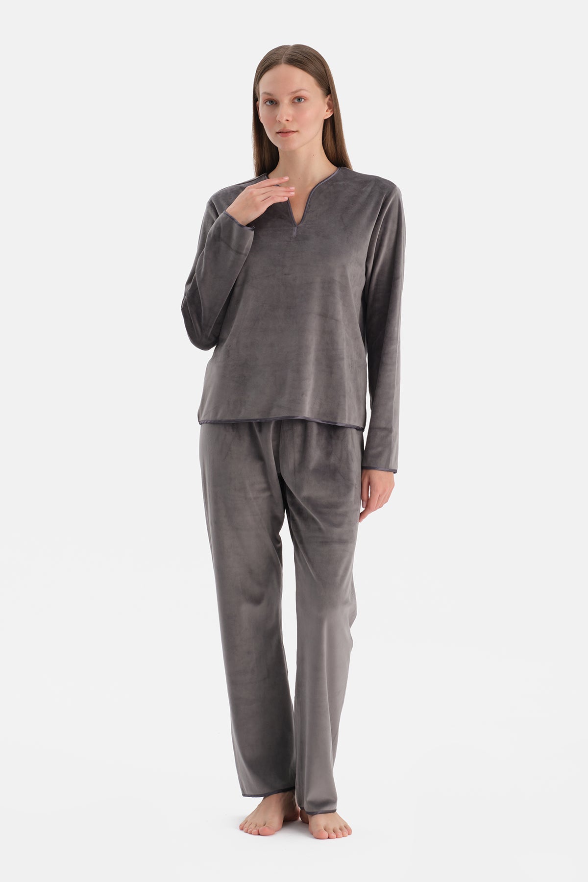 V YAKA UZUN KOLLU KADİFE TİŞÖRT PANTOLON TAKIM 25WW17989EB_302 şimdi Dagi'de. Kaliteli, konforlu ve özel fiyatlarla sizleri bekliyor.