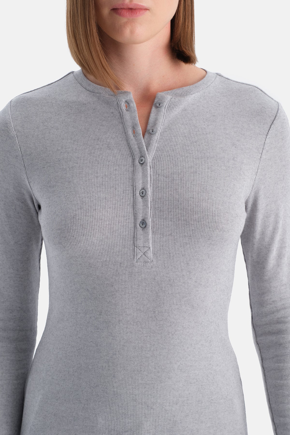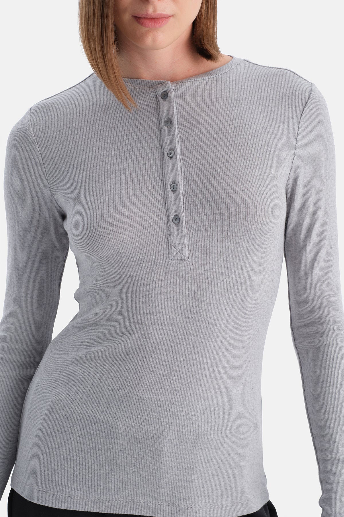 Yarim Düğmeli Kaşmir Modal Uzun Kollu Tişört