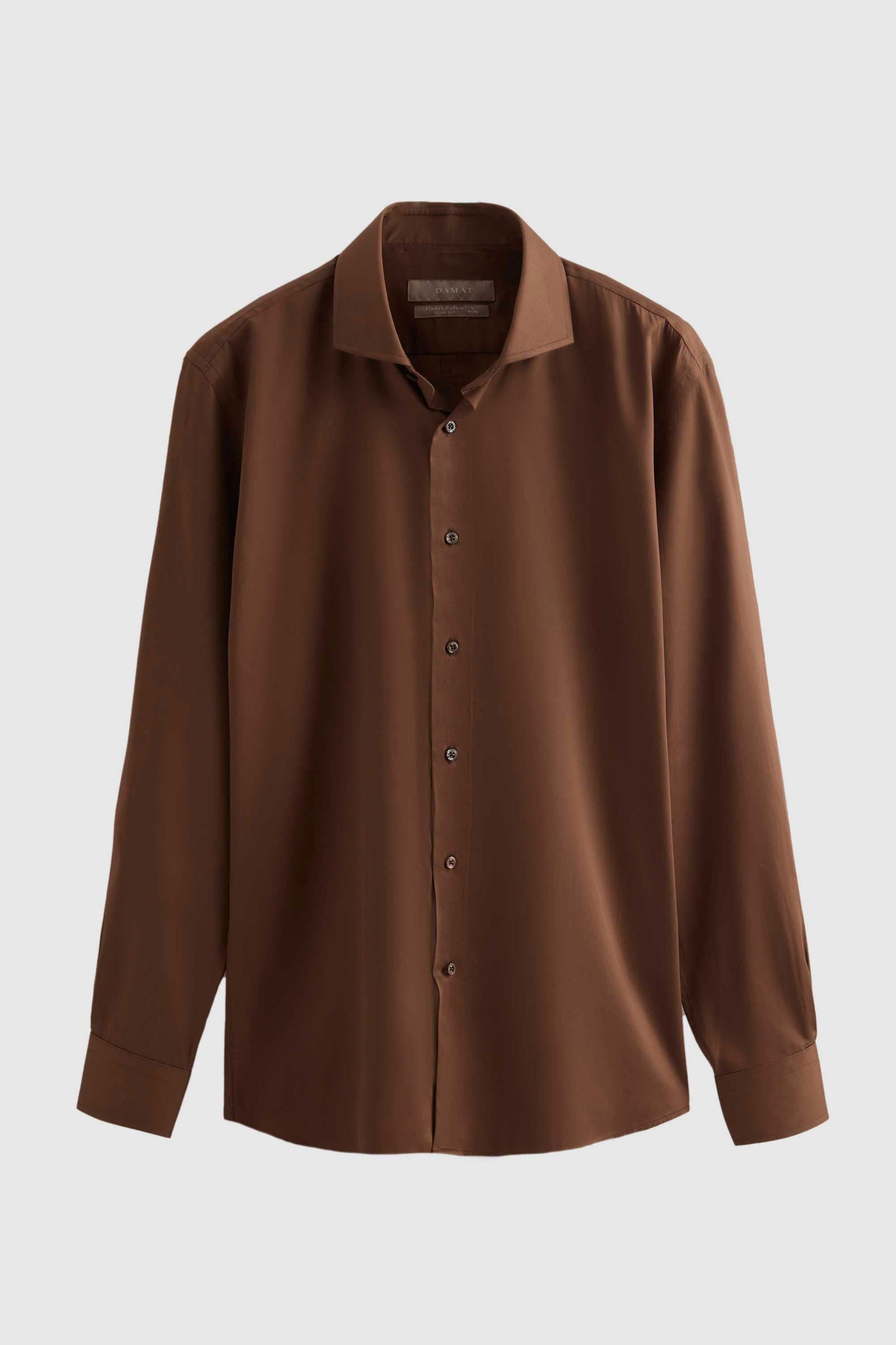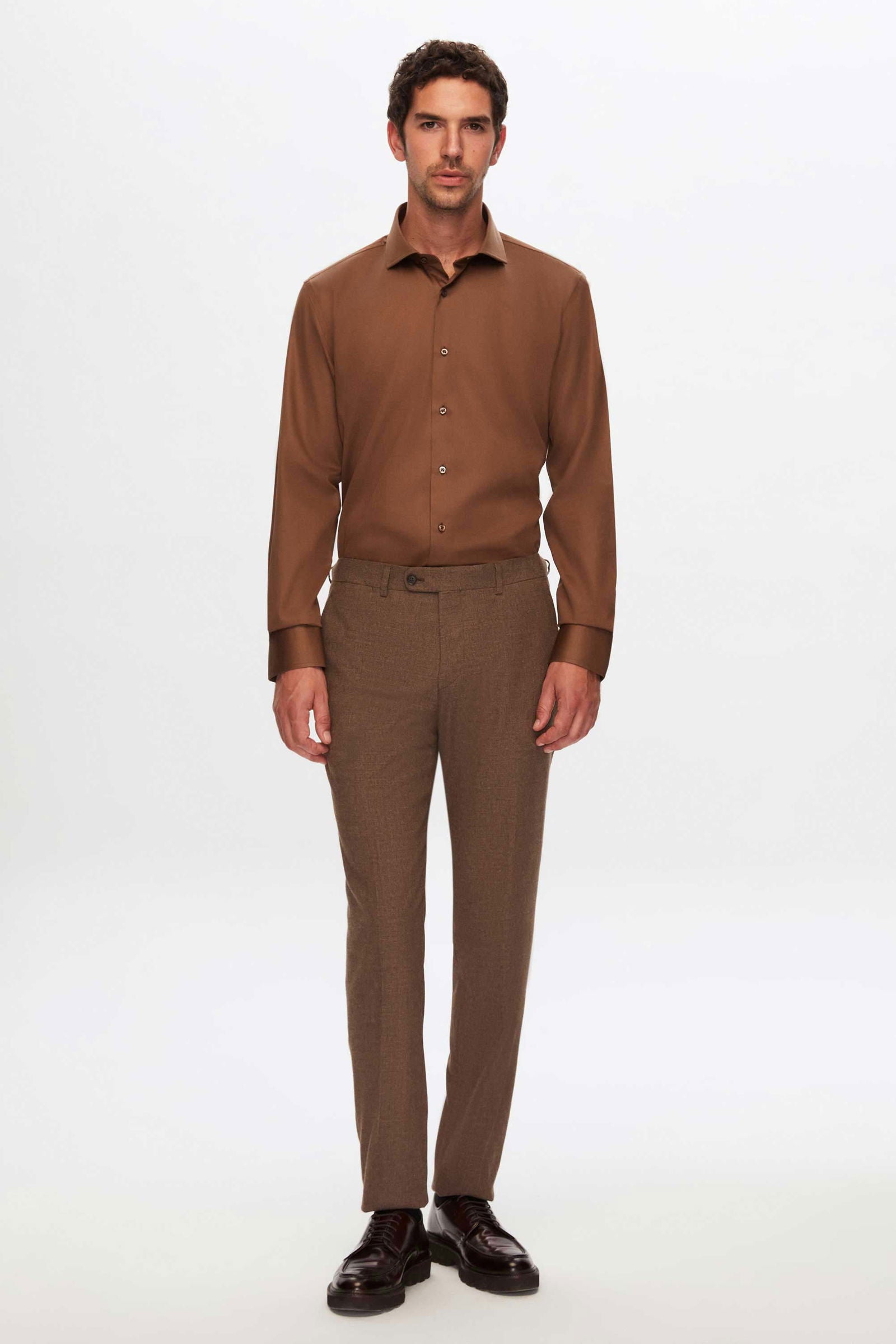Damat Slim Fit Kahverengi Düz Nano Care Gömlek