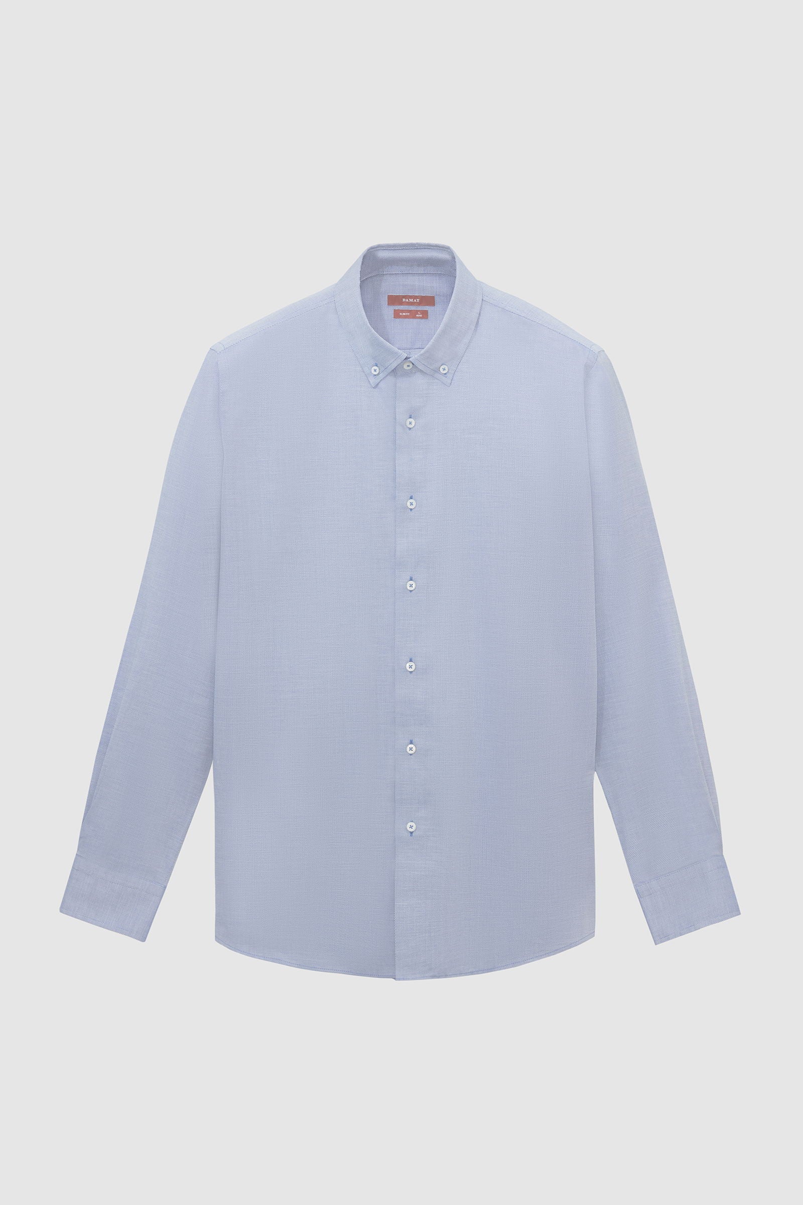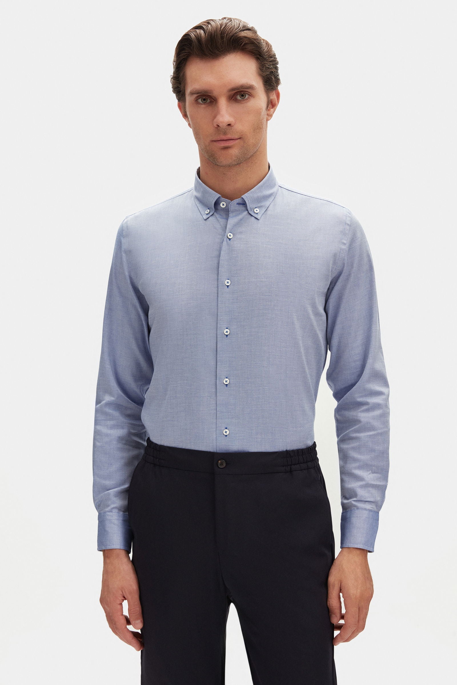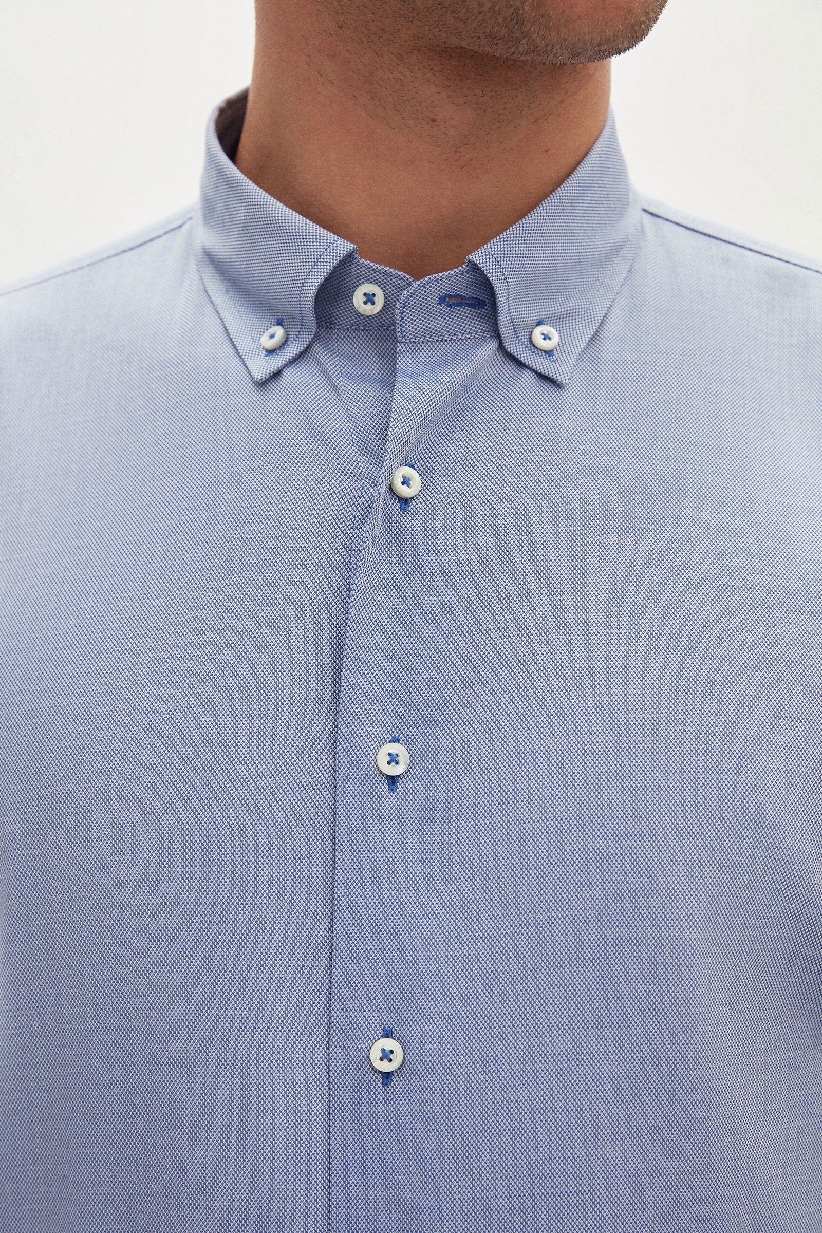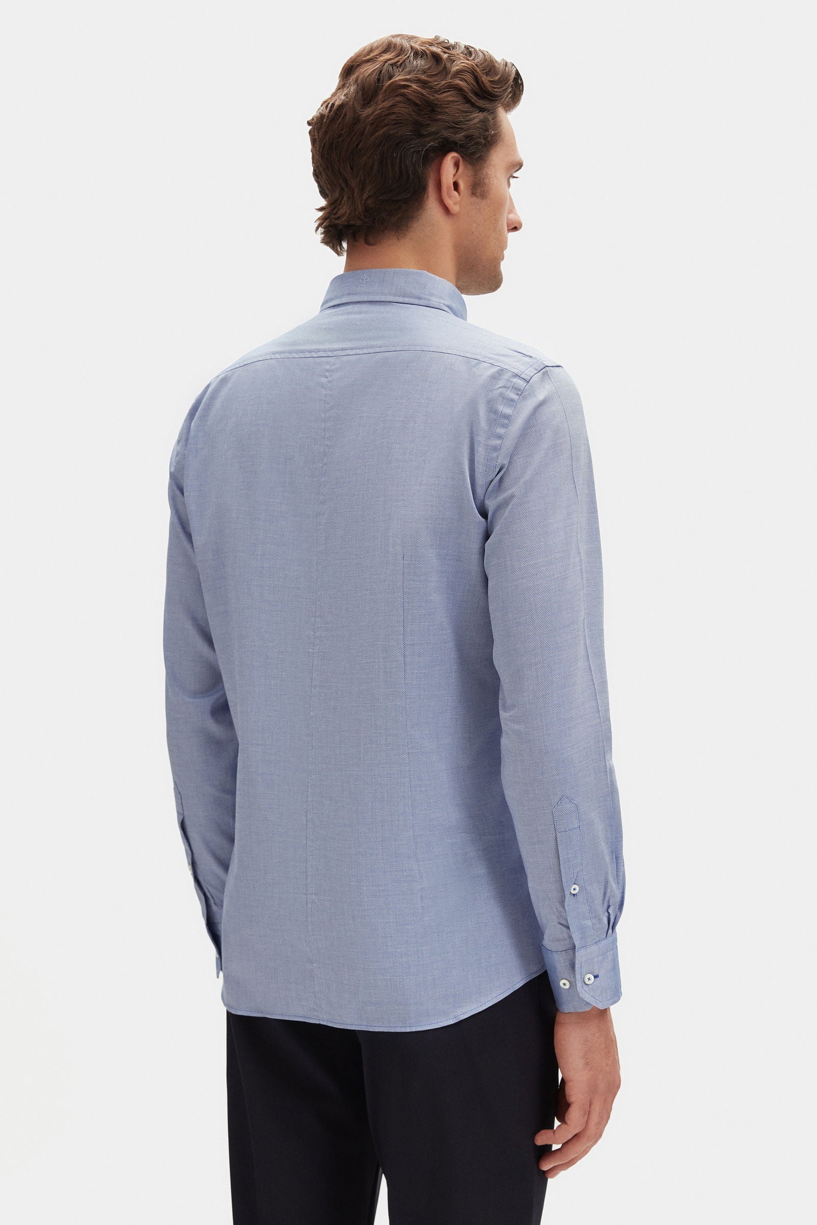 Damat Slim Fit Lacivert Armürlü %100 Pamuklu Gömlek