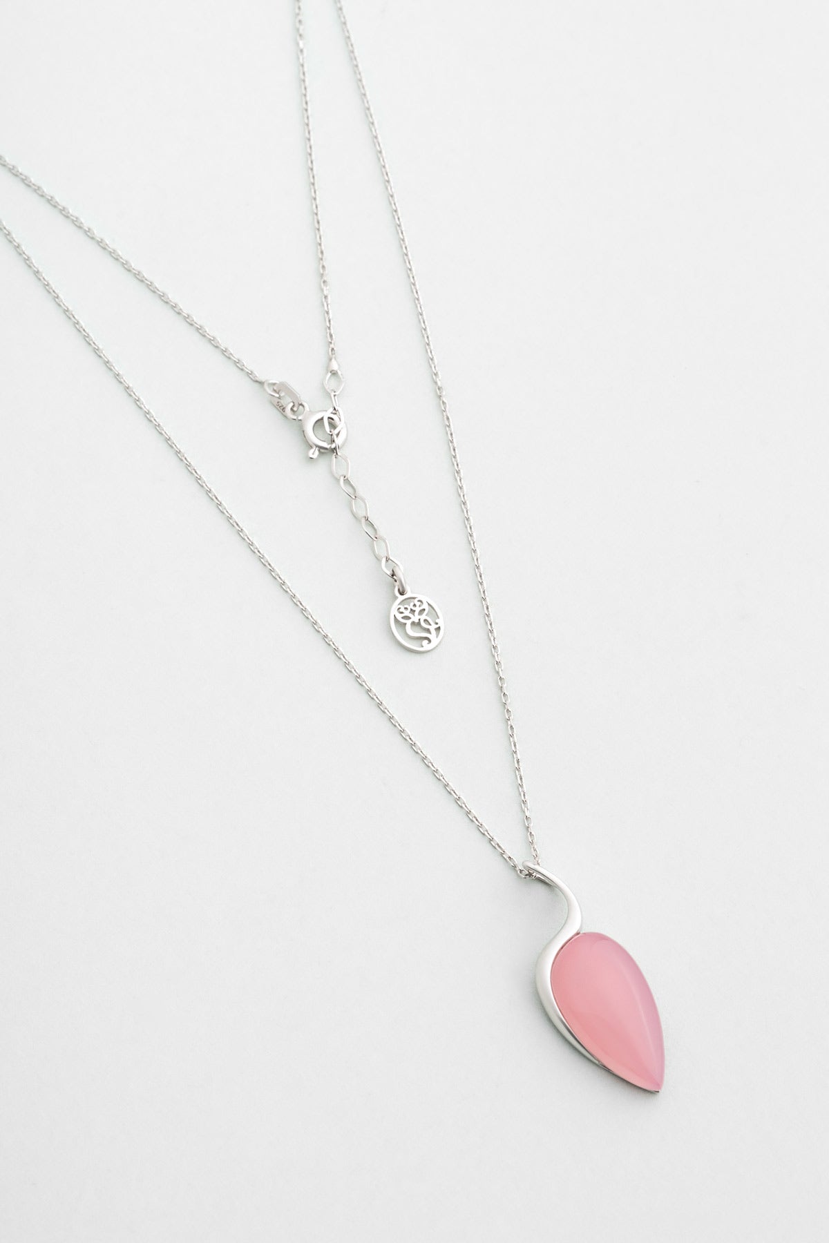 Damla Kalsedon 18 Ayar Beyaz Altın Kaplama 42 Cm Gümüş Kolye 07314290399