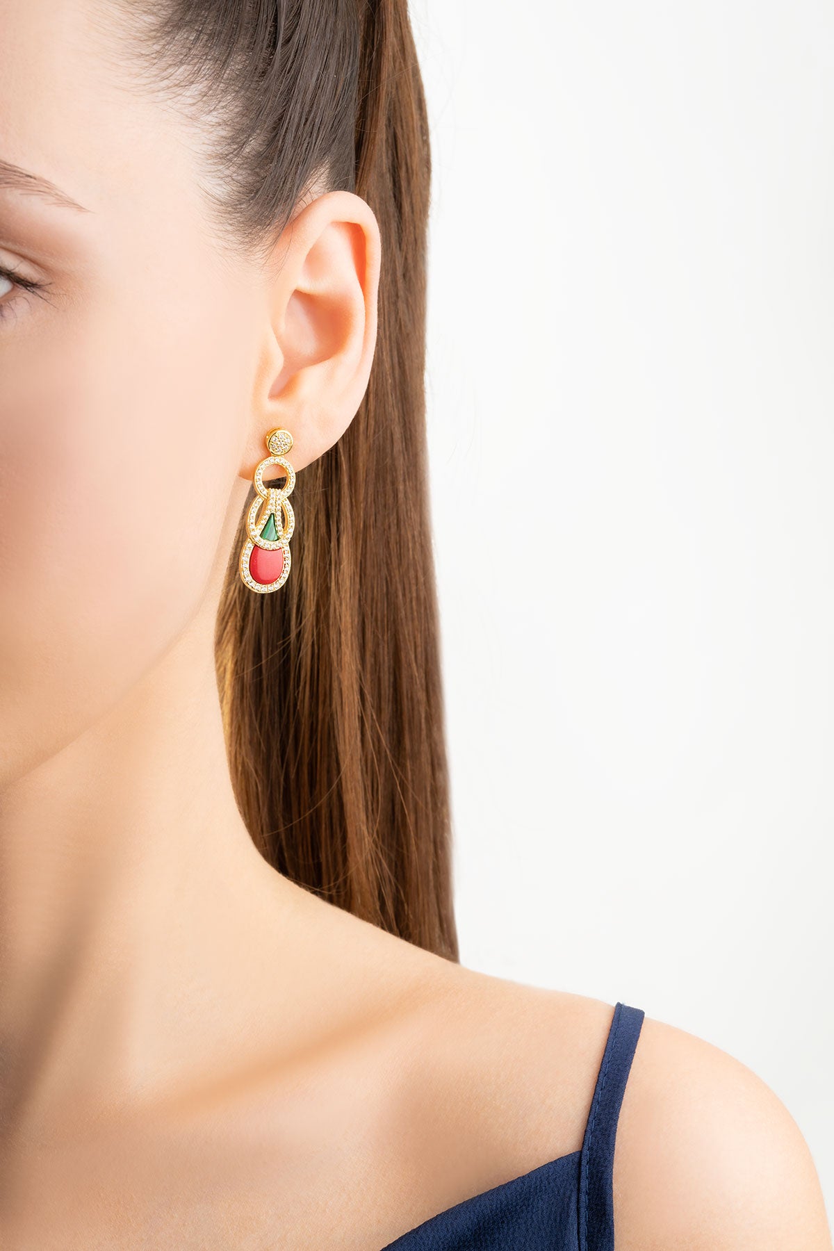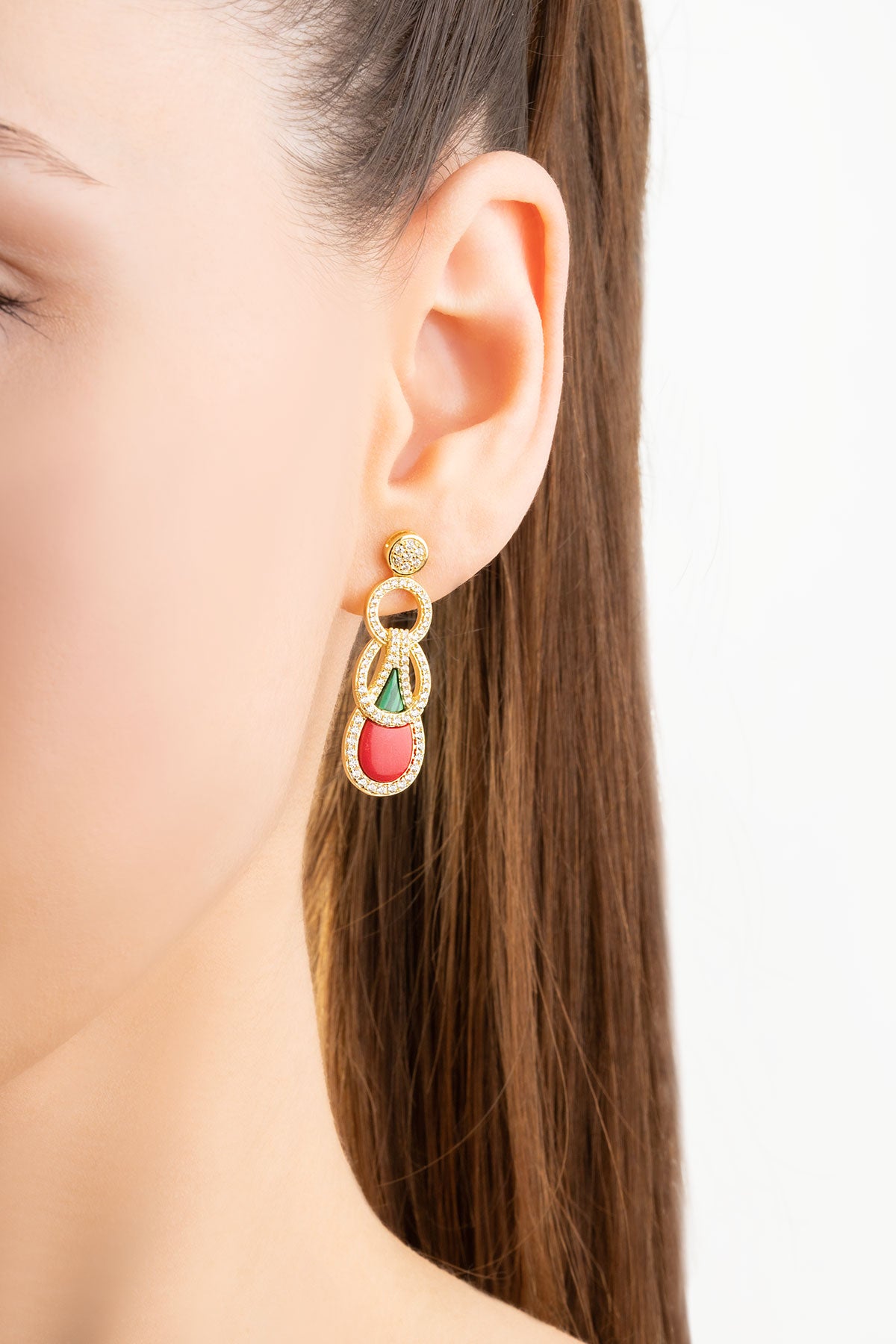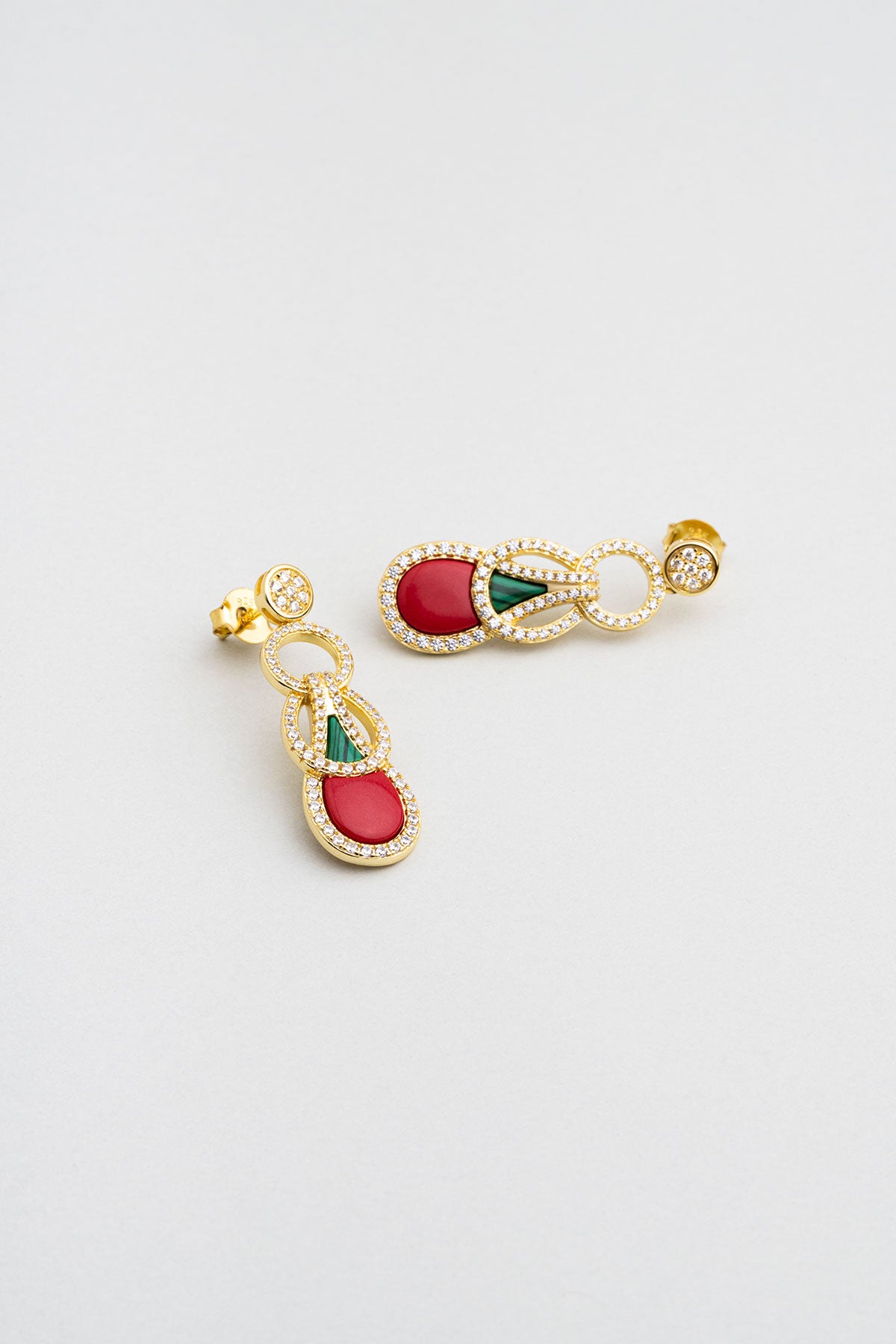 Dejavu 18 Ayar Sarı Altın Kaplama Gümüş Mercan Küpe 07301350844