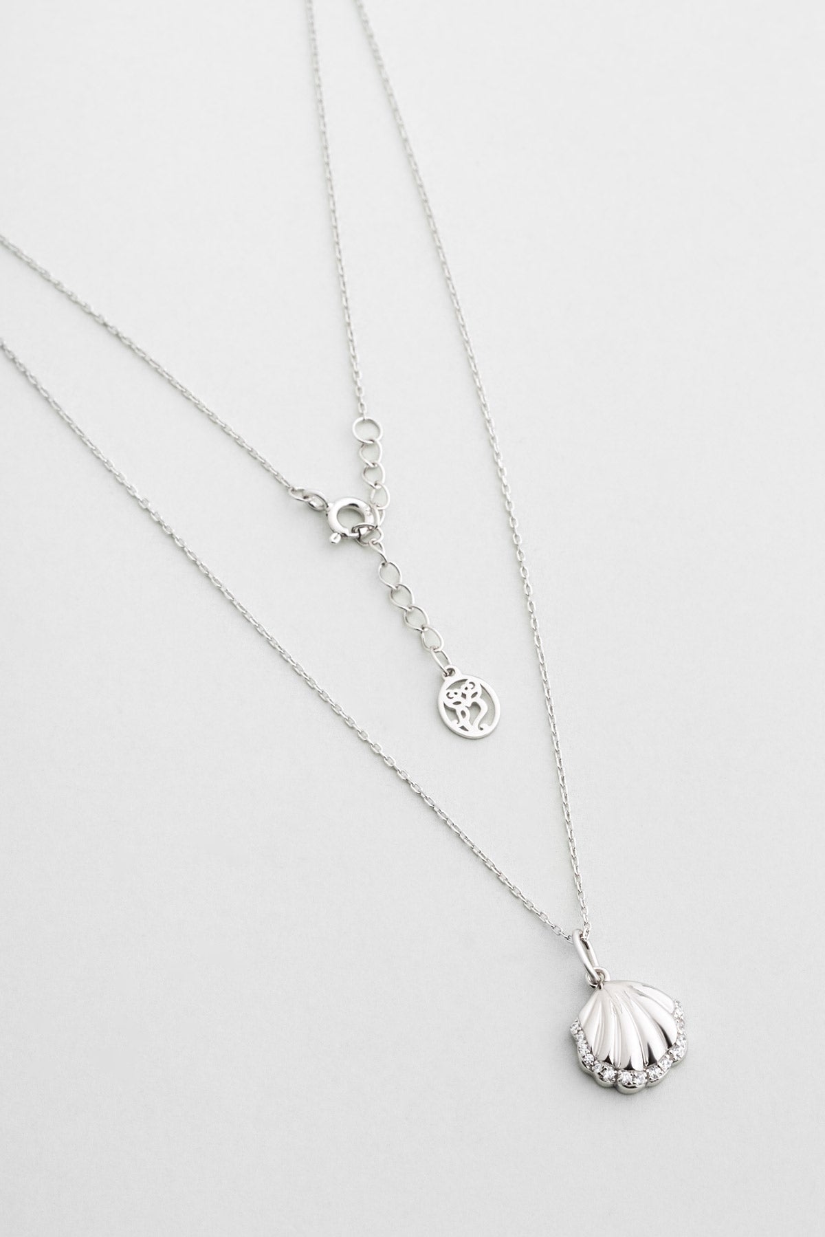 Deniz Kabuğu 18 Ayar Beyaz Altın Kaplama 45 Cm Gümüş Kolye 5175790199